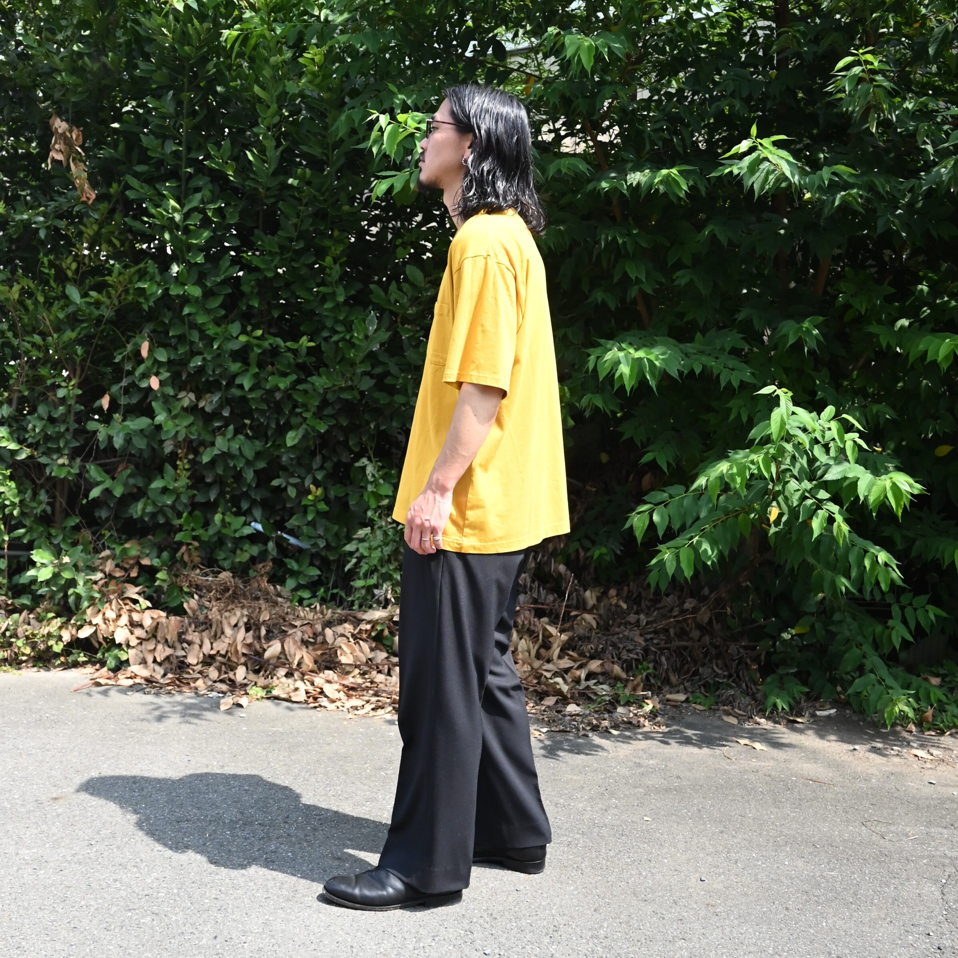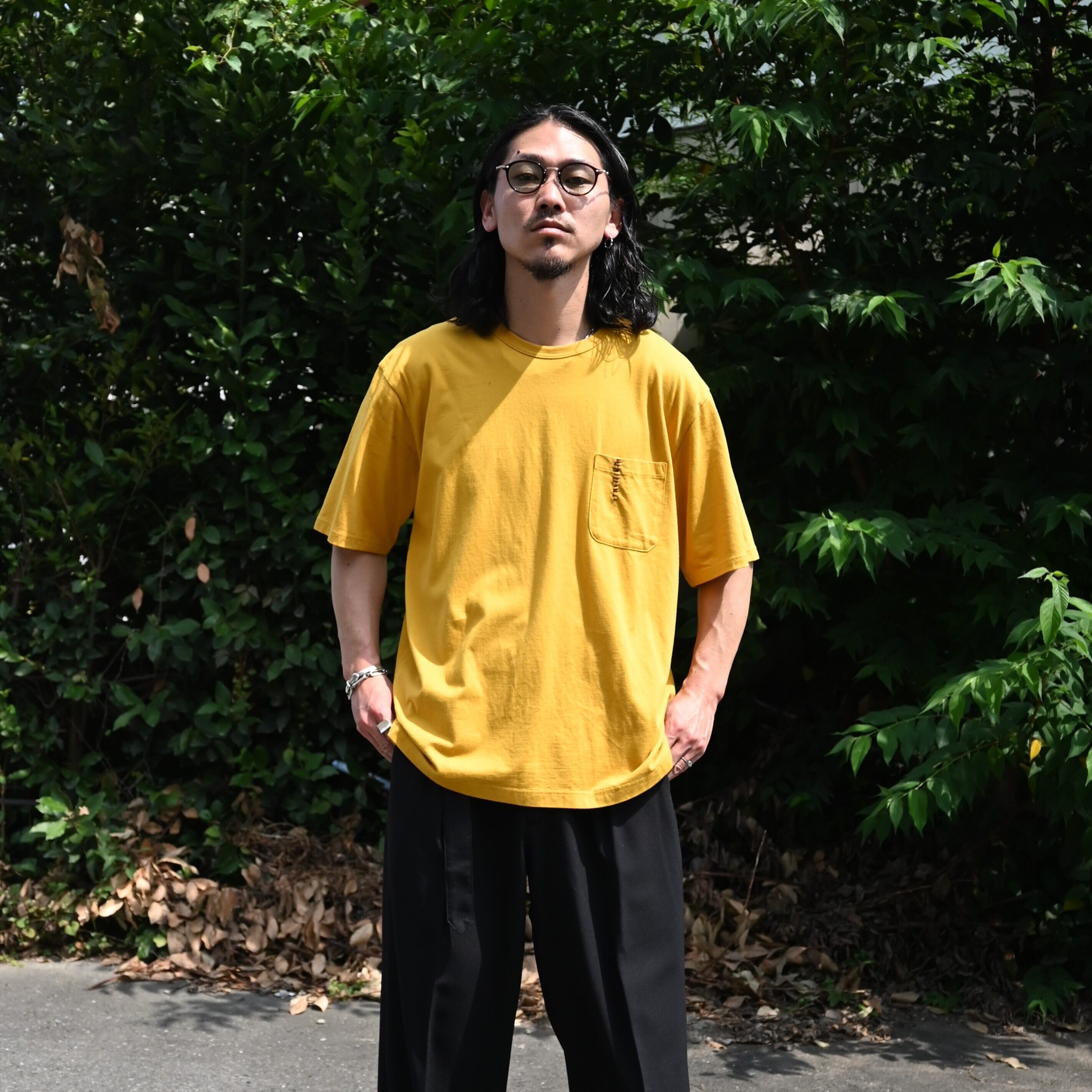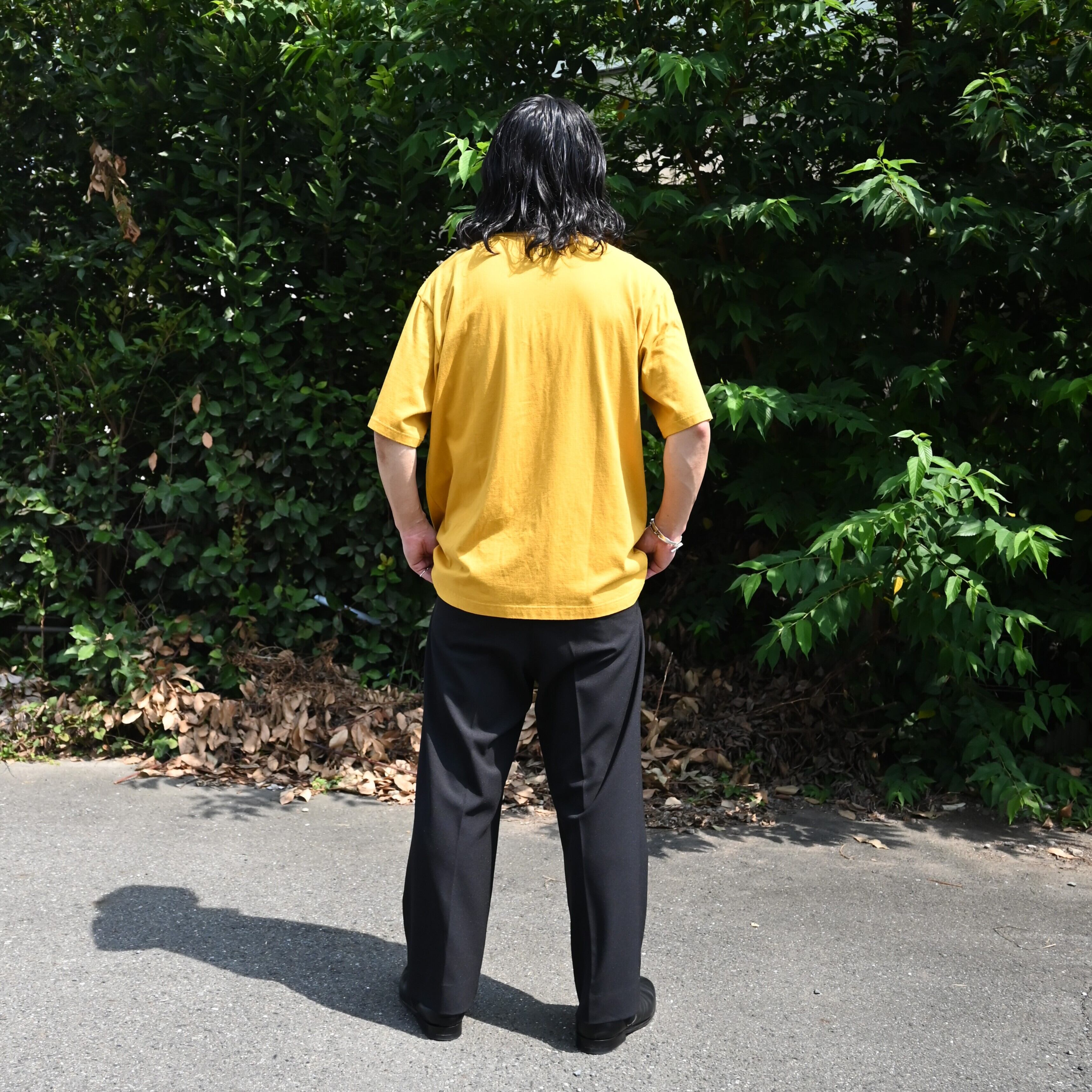 80年~90年代のグーチデッドストックシャツをメインにインナーにYASHIKI(ヤシキ)のニットベストを合わせKUON(クオン)のスラックスを着用。差し色にKUON(クオン)Sashiko Teeを合わせてファッションライクなスタイルに。