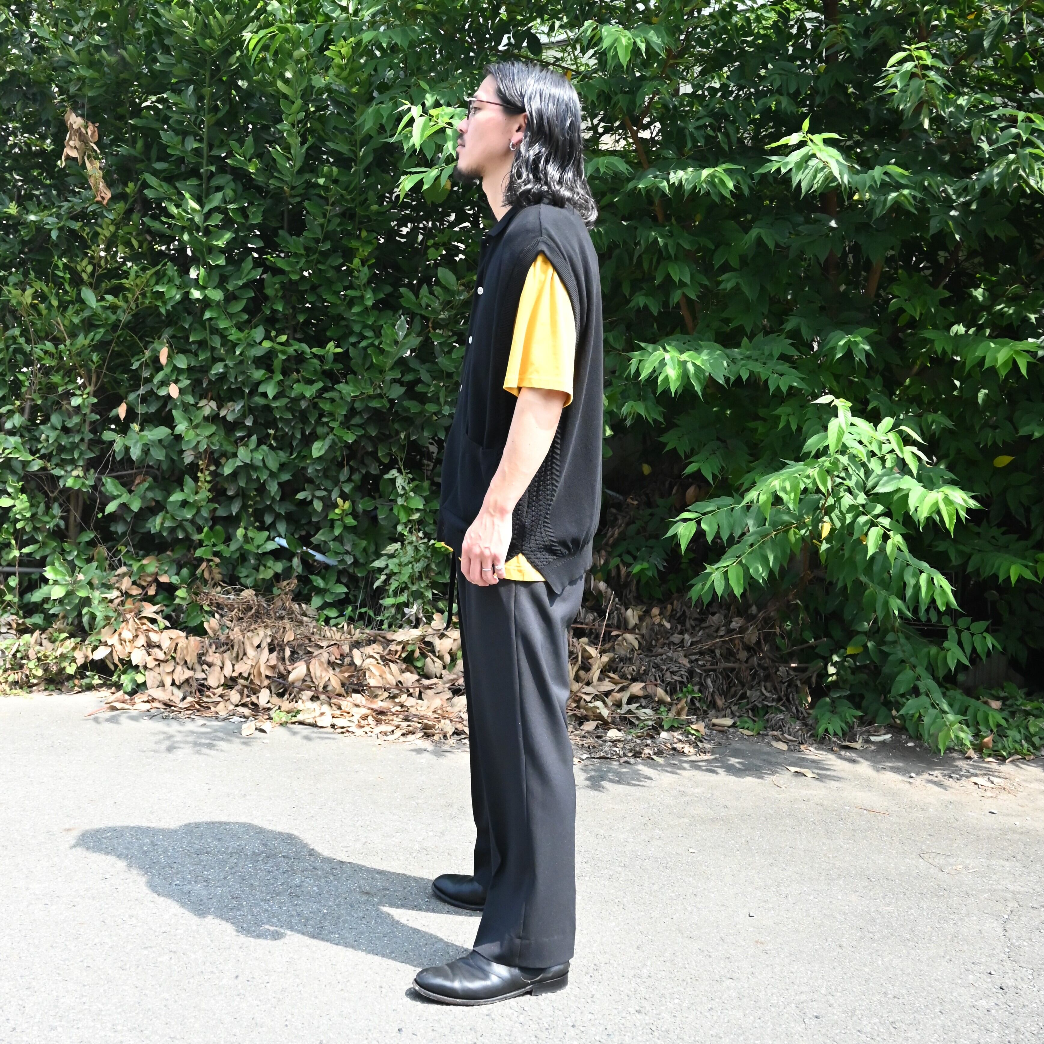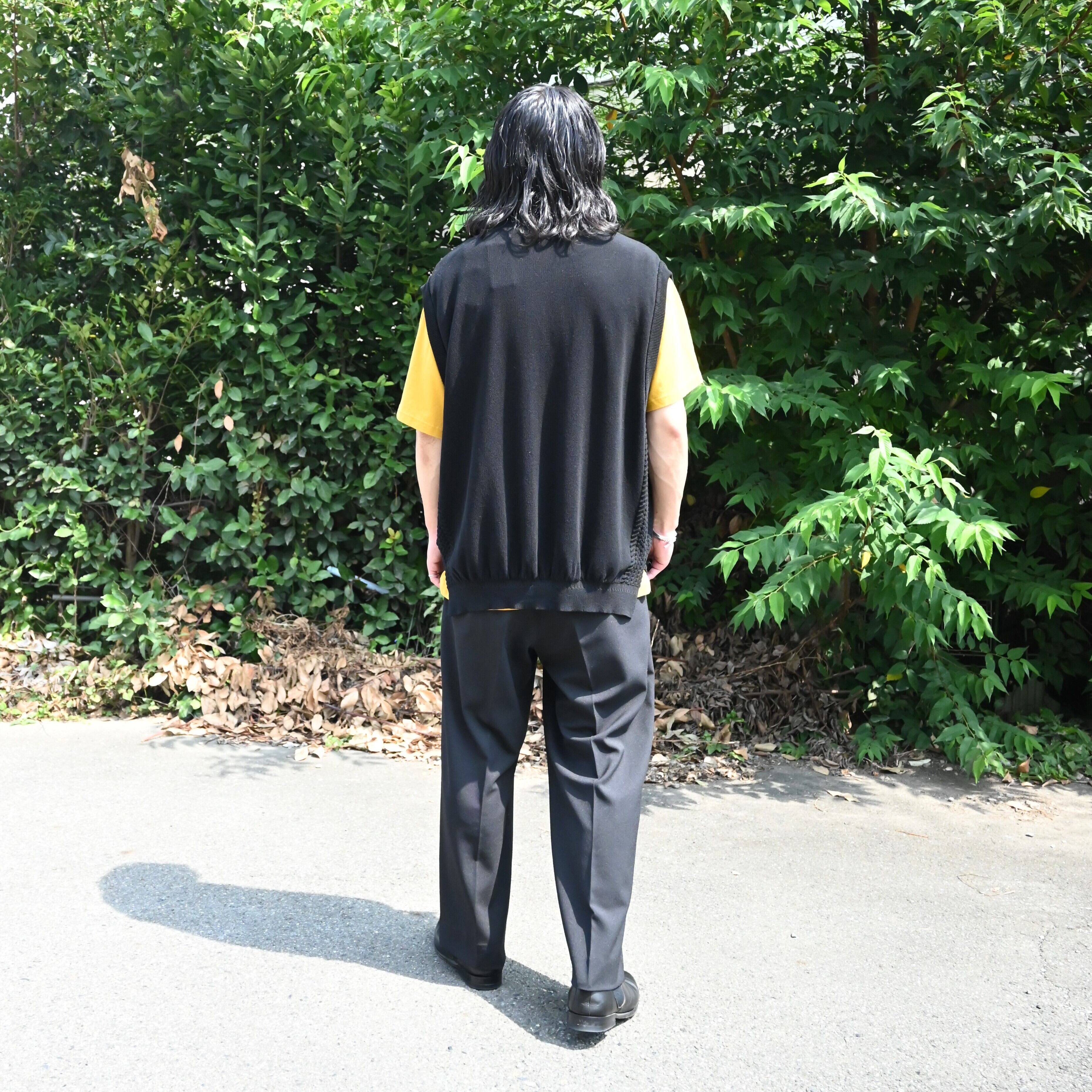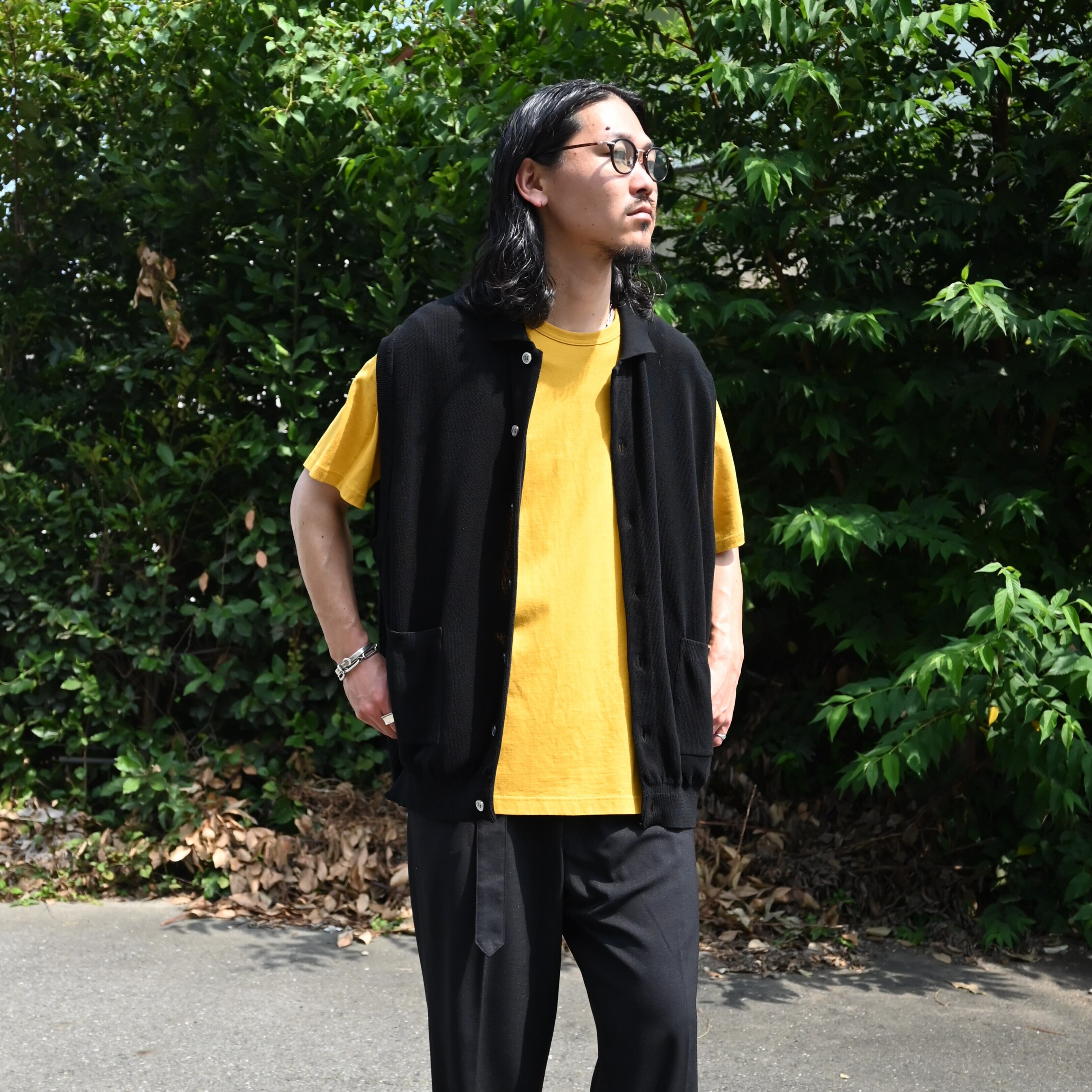 Styling with a vintage Goodhood deadstock shirt from the ’80s–’90s as the main piece, layered with a YASHIKI knit vest and paired with KUON slacks. A KUON Sashiko Tee is added as an accent color for a fashion-forward look.
