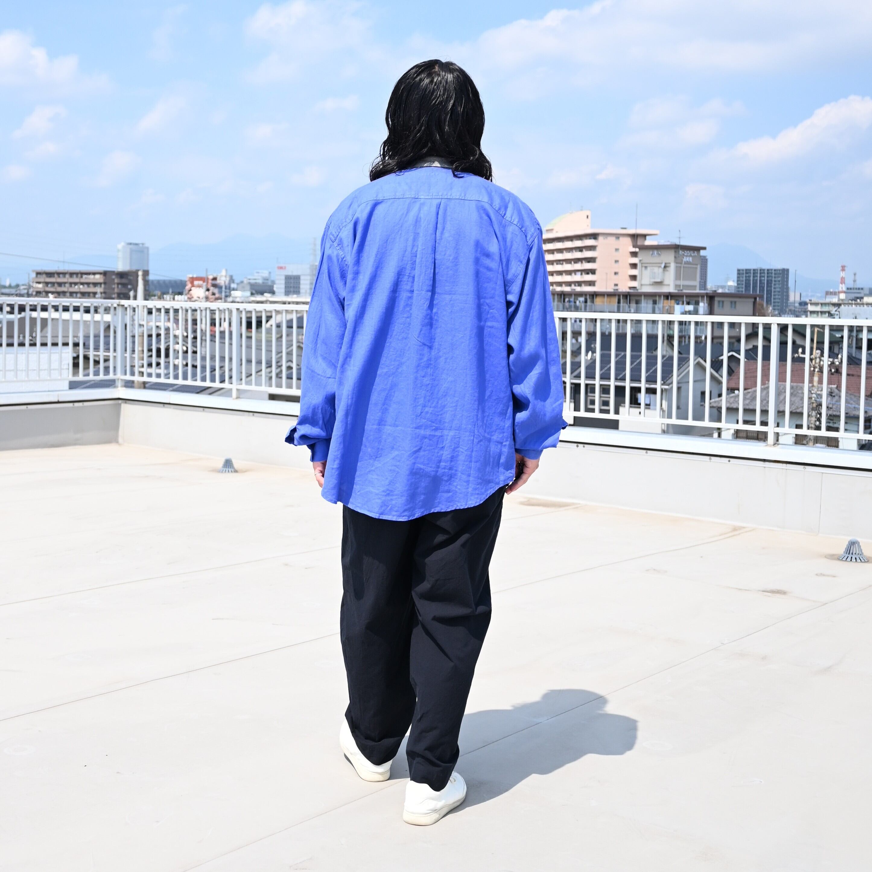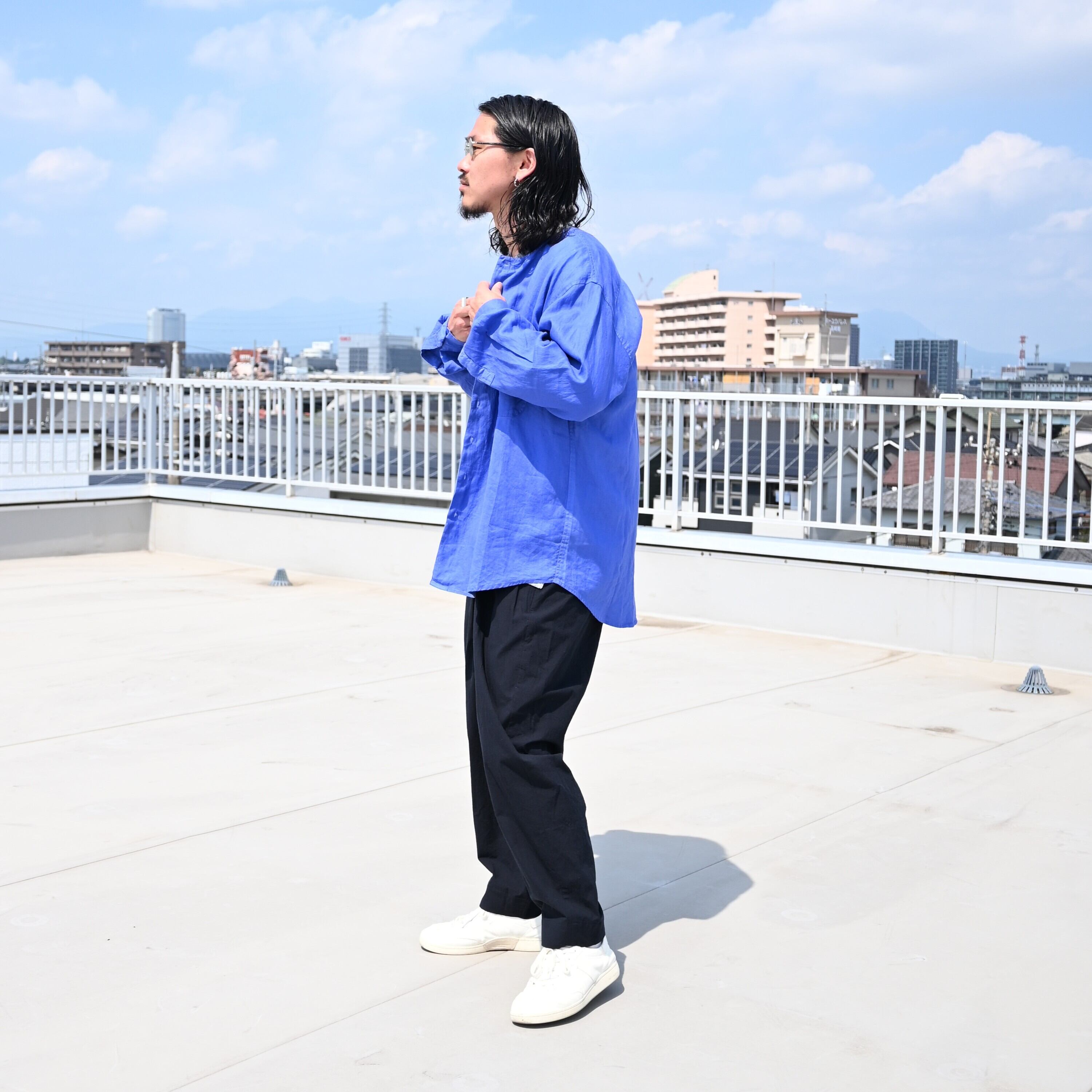 80年~90年代のグーチデッドストックシャツをメインにインナーにYASHIKI(ヤシキ)のニットベストを合わせLEH(レー)のグルカパンツを着用。リネン100%のグーチのシャツとコットンシルク素材のグルカパンツがスタイリングに馴染み、カジュアルながらも洗練されたバランスに。