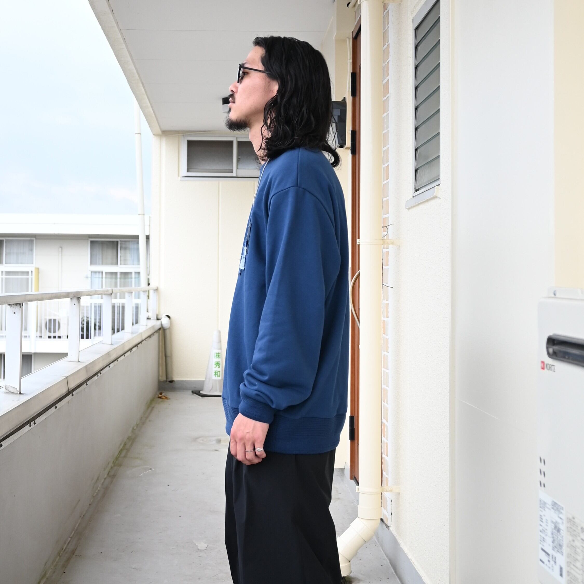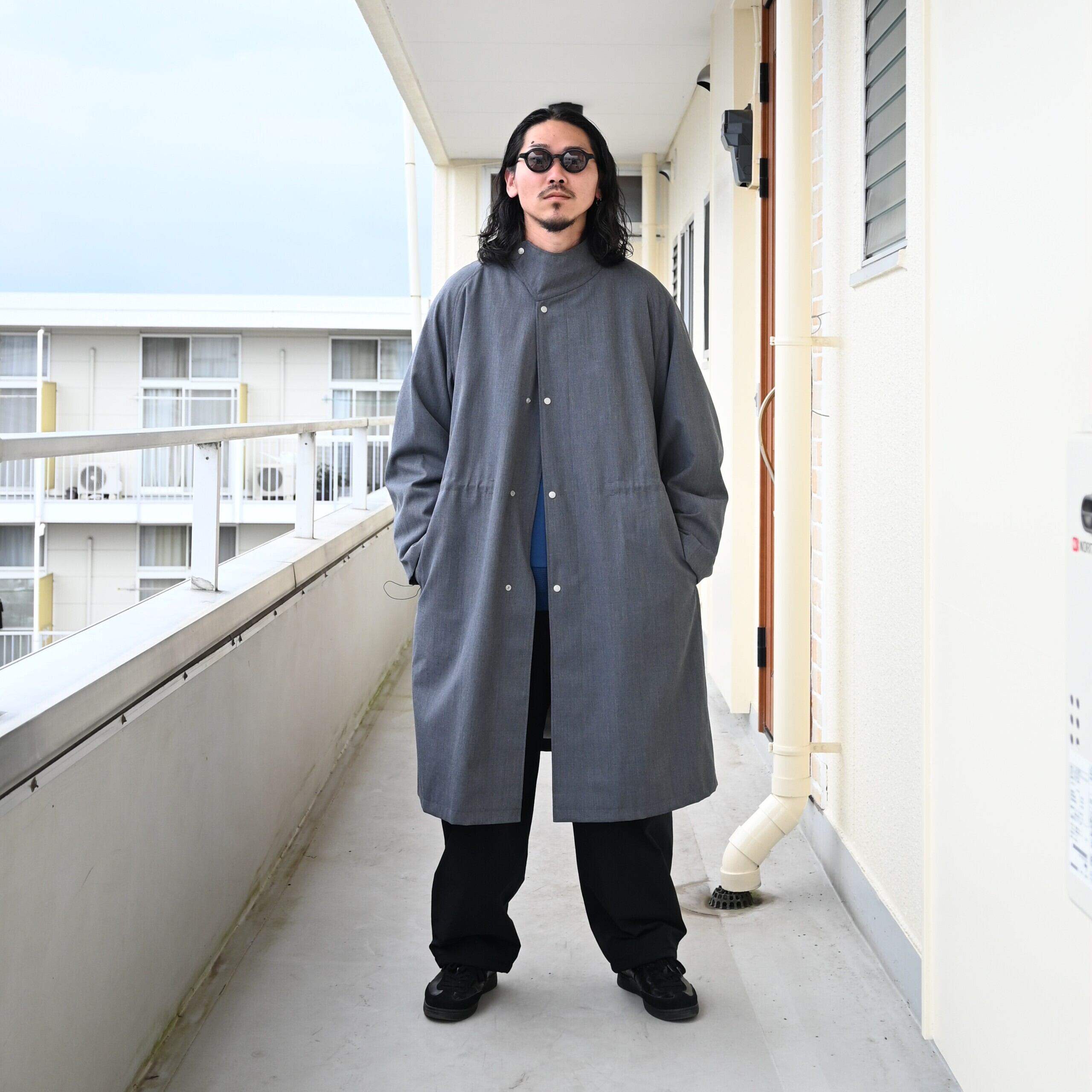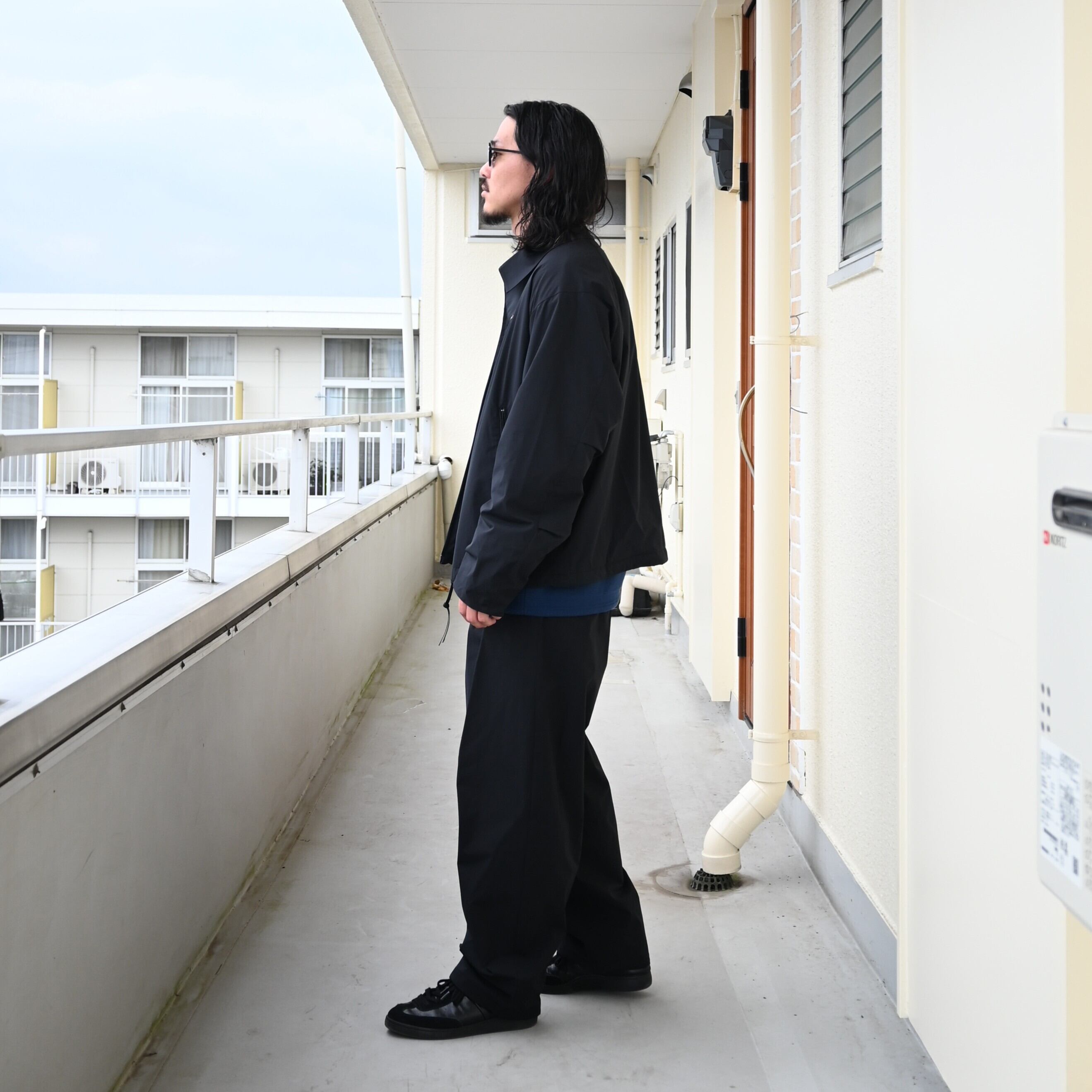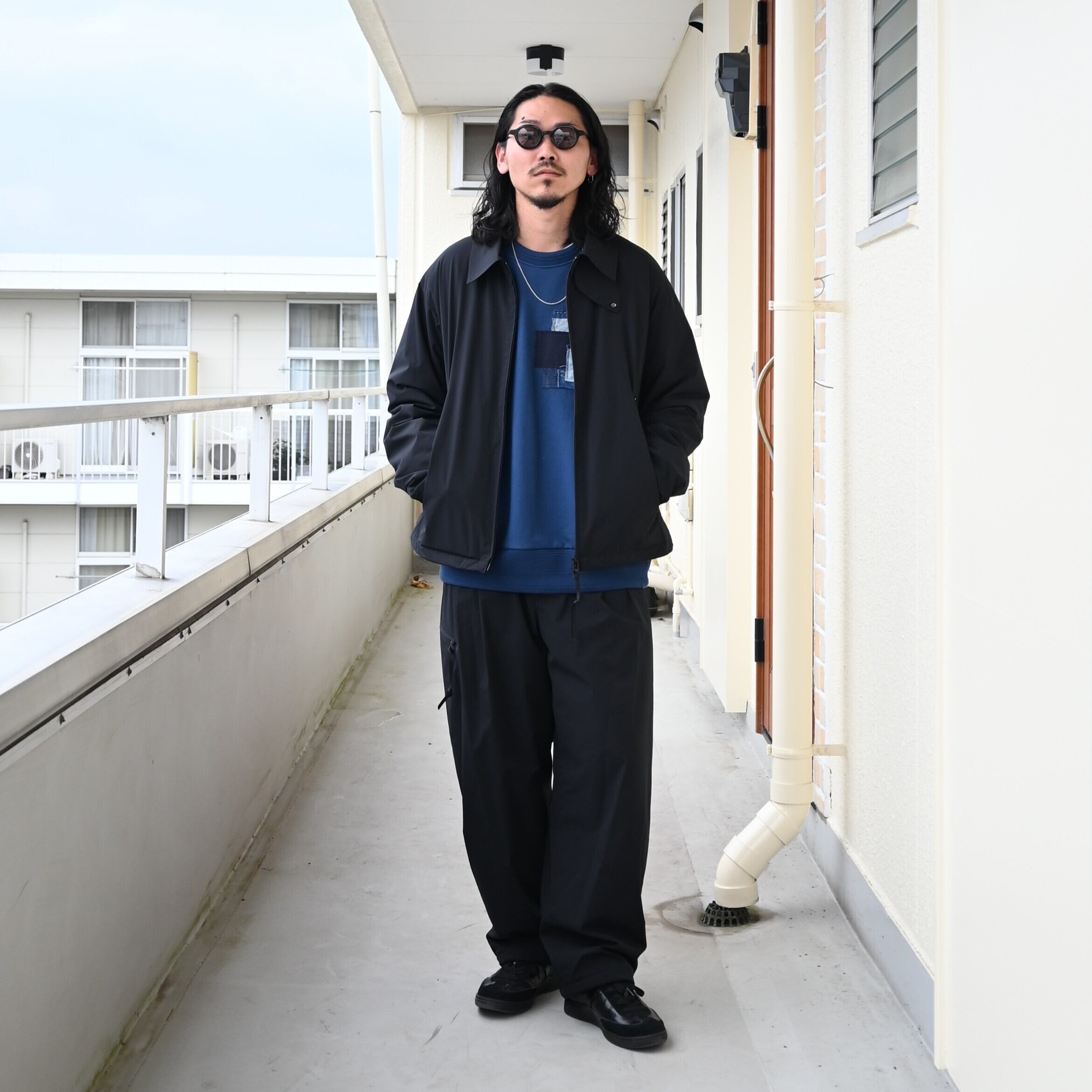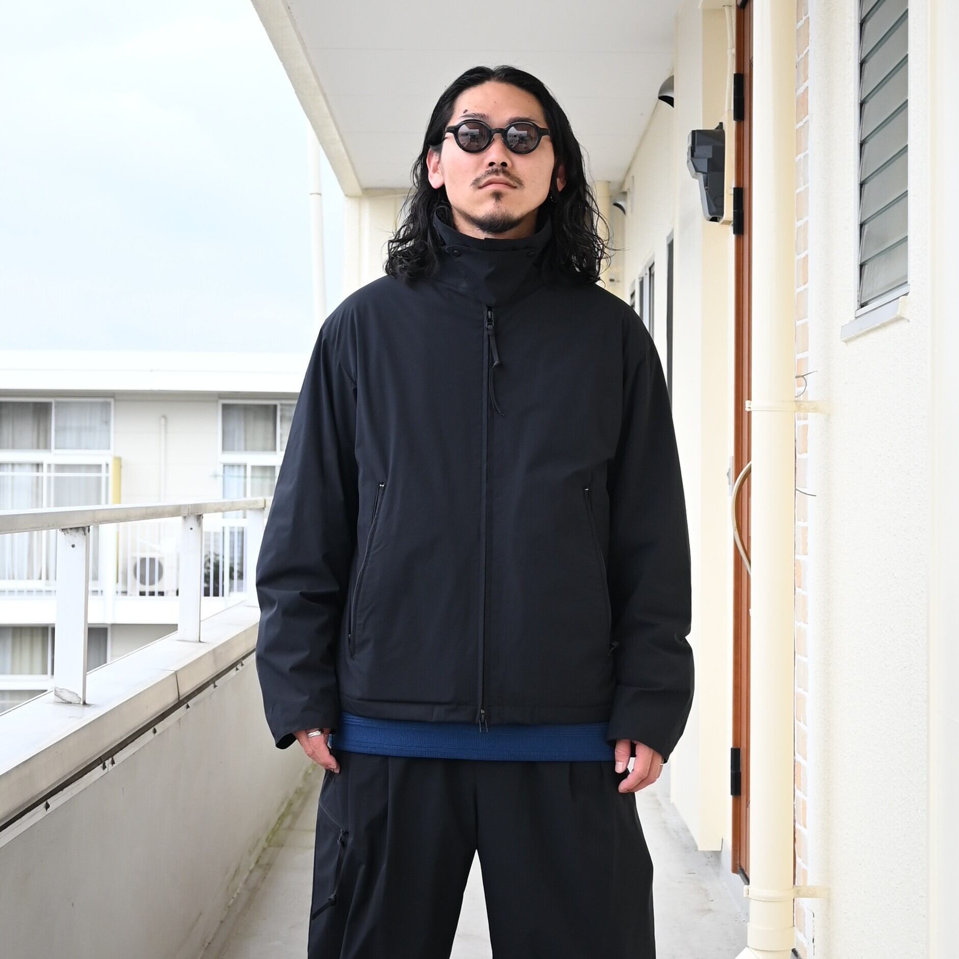 25AW新規取り扱いのploduct twelve(プロダクトトゥウェルブ)、 T/W Rain Coatをアウターにし、City Active Warm JacketとCity Active Warm Pantsをセットアップ着用、インナーにKUON(クオン)Boro Sweatshirtを合わせてスタイリングの差し色に。