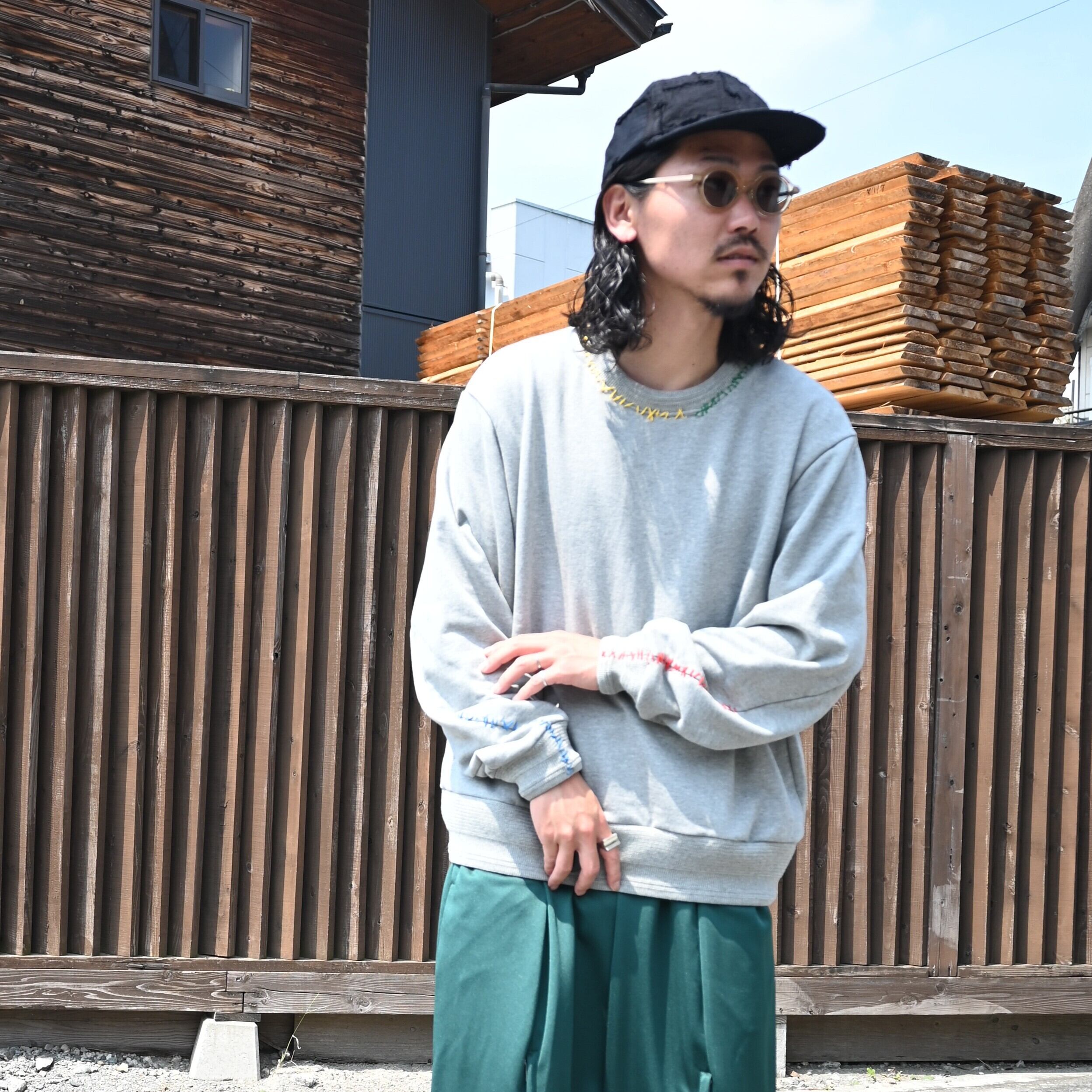 9月20日(土)13:00店頭発売、9月20日(土)20:00オンラインストア発売となる当店別注第二弾のKUON / GANKO別注 Sashiko Sweatshirtをメイン着用。