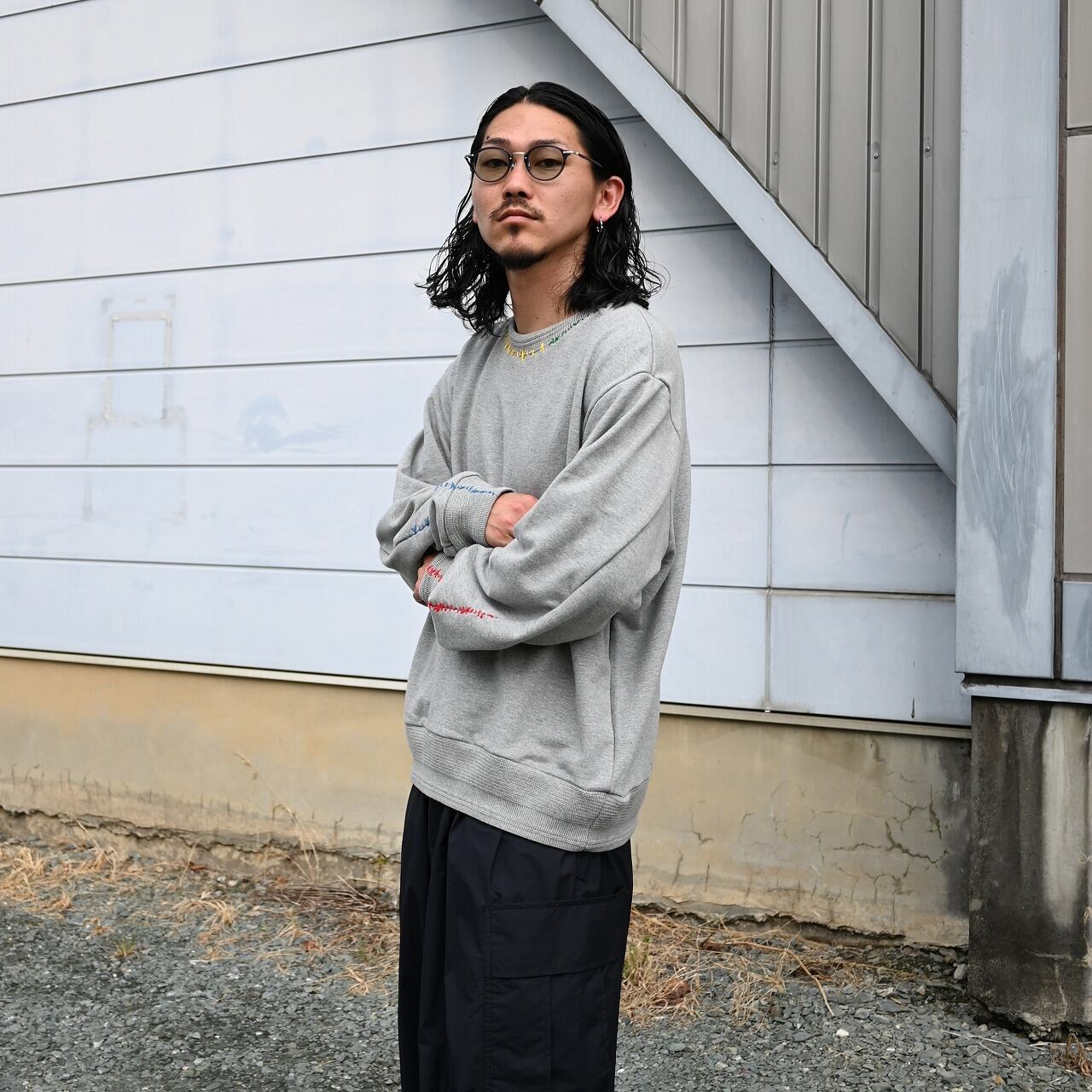 9月20日(土)13:00店頭発売、9月20日(土)20:00オンラインストア発売となる当店別注第二弾のKUON / GANKO別注 Sashiko Sweatshirtをメイン着用。