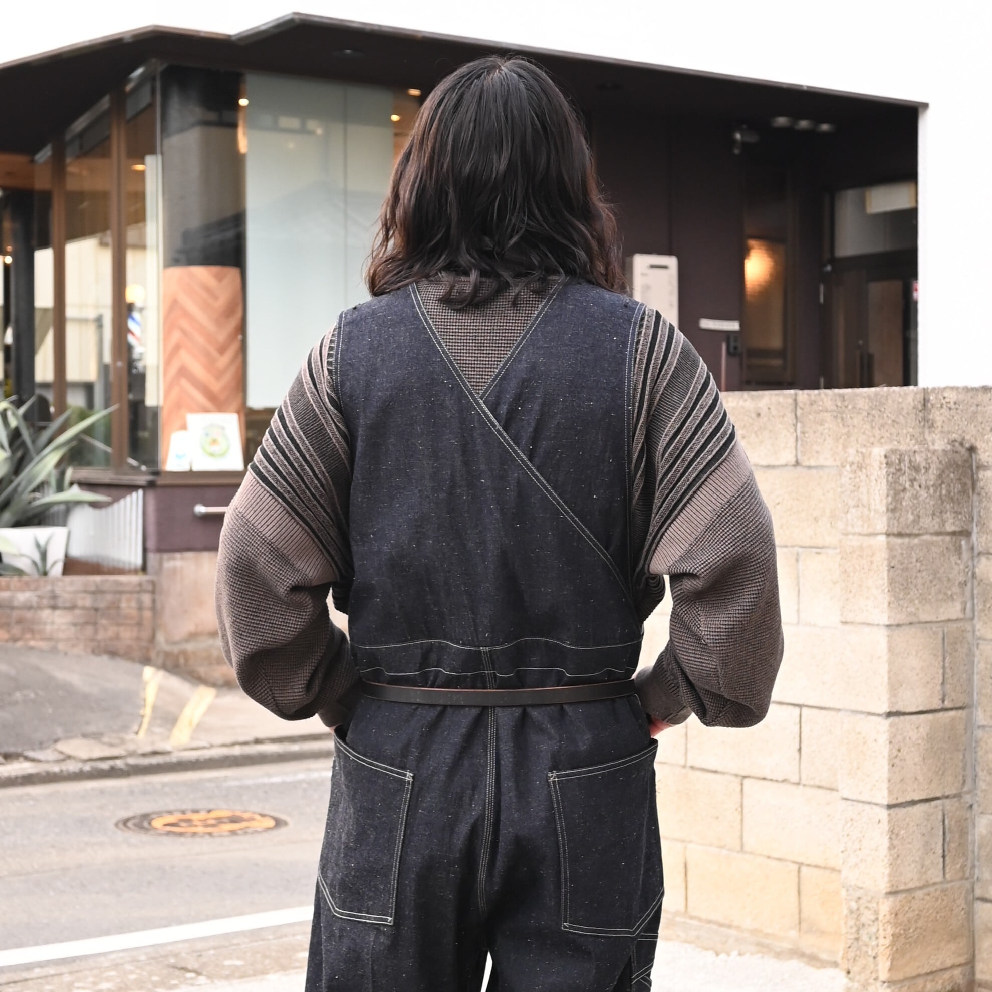 I styled the CCU (Sea Sea You) HUNTING JKT as the main piece, layered with OLD JOE’s CROSS SHOULDER ANVIL OVERALLS and YASHIKI’s Fuyushigure Half Zip Knit underneath.