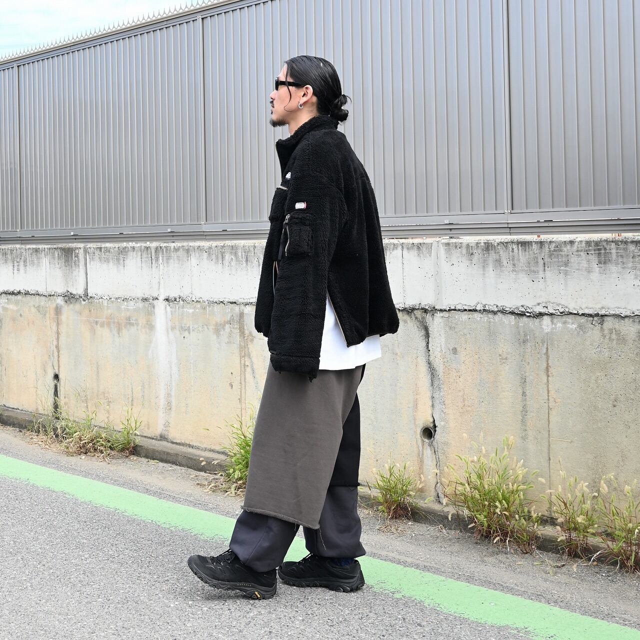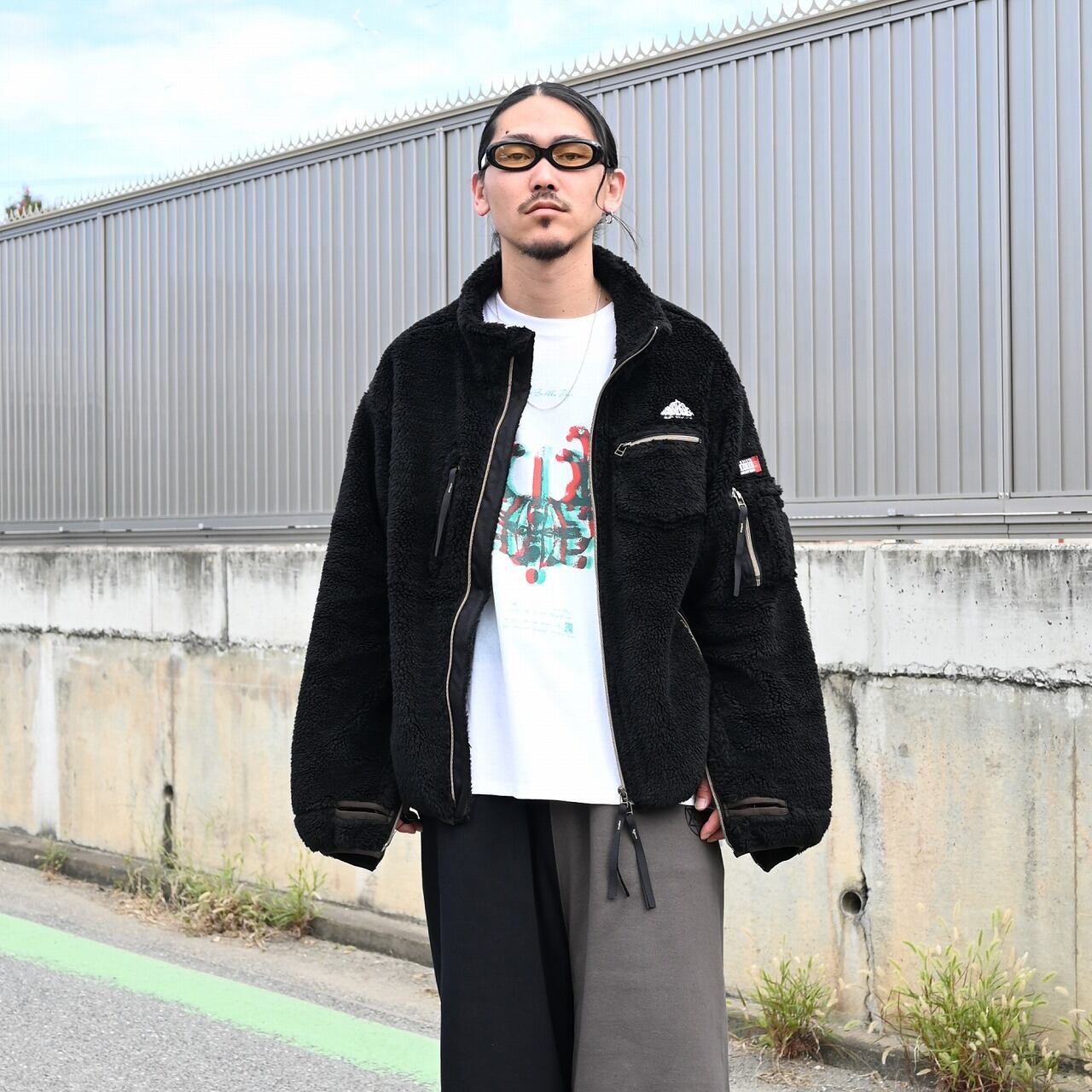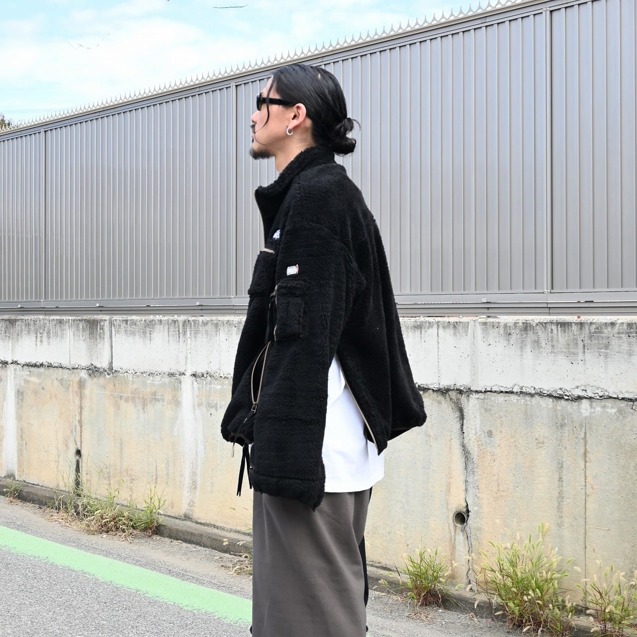 袖から脇にかけて施されたジッパーによりシルエット調整が可能なボアフリース。