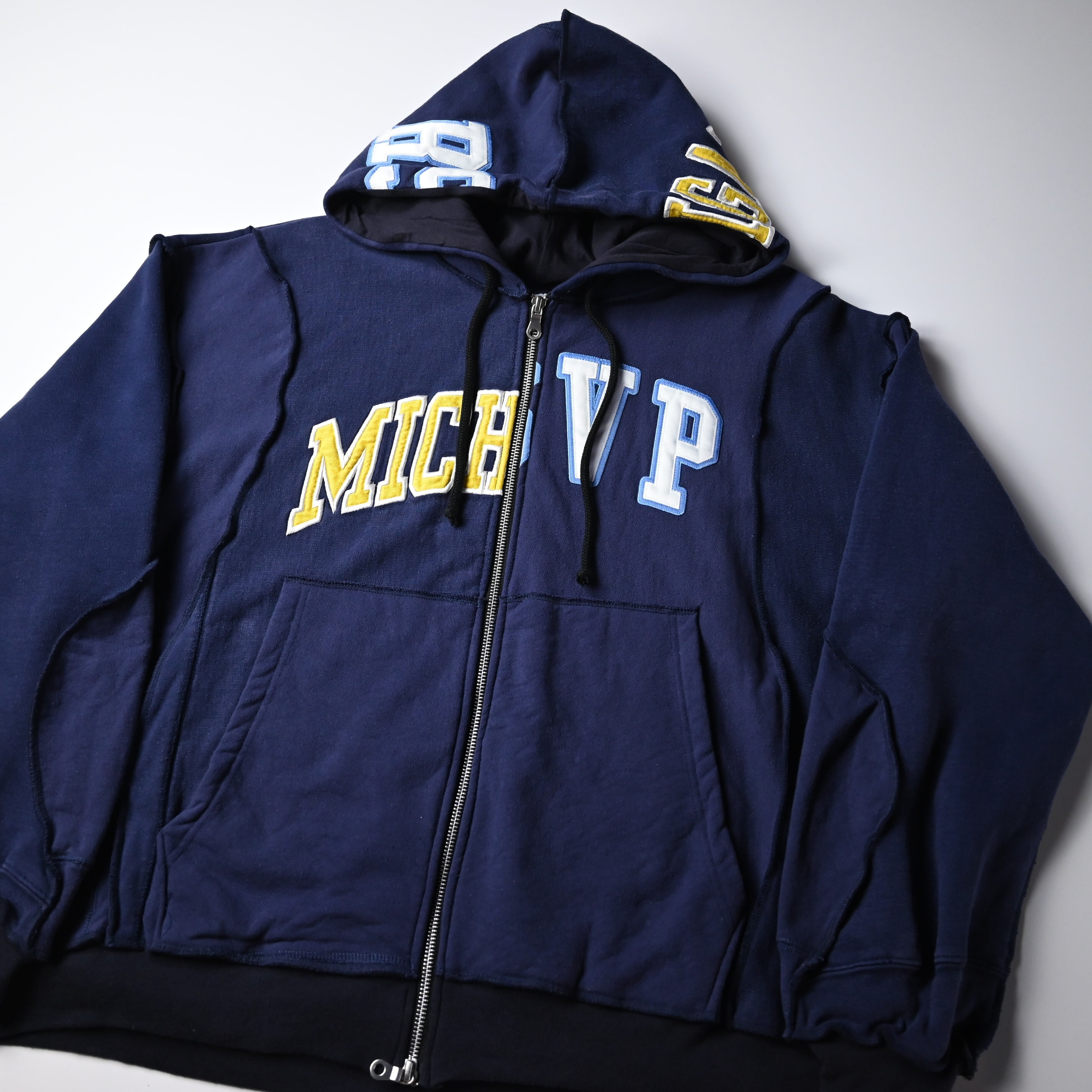 二枚のパーカーを解体、ドッキングして再構築したリメイクジップパーカー