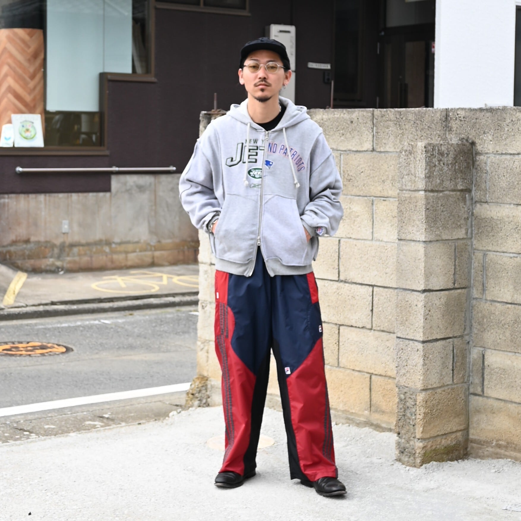 合わせているナイロンパンツもチェンジーズの物で二本のナイロンパンツを解体、ドッキングして再構築したリメイクナイロンパンツになります。
