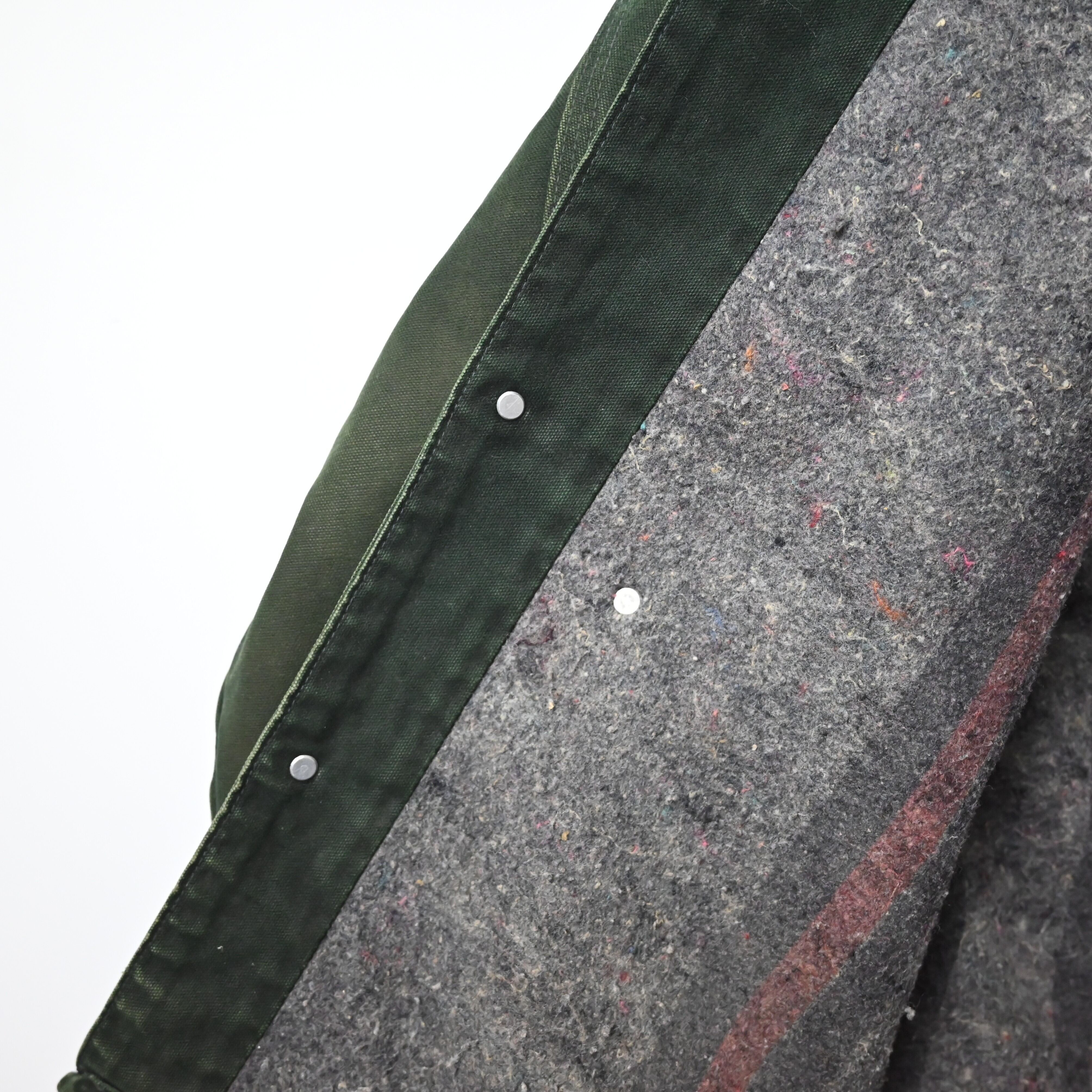 • Relaxed, oversized silhouette typical of vintage workwear.