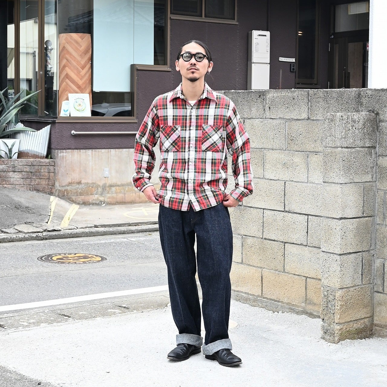 ・70年代らしいクラシックなチェック柄と、ややゆったりとしたシルエットが特徴