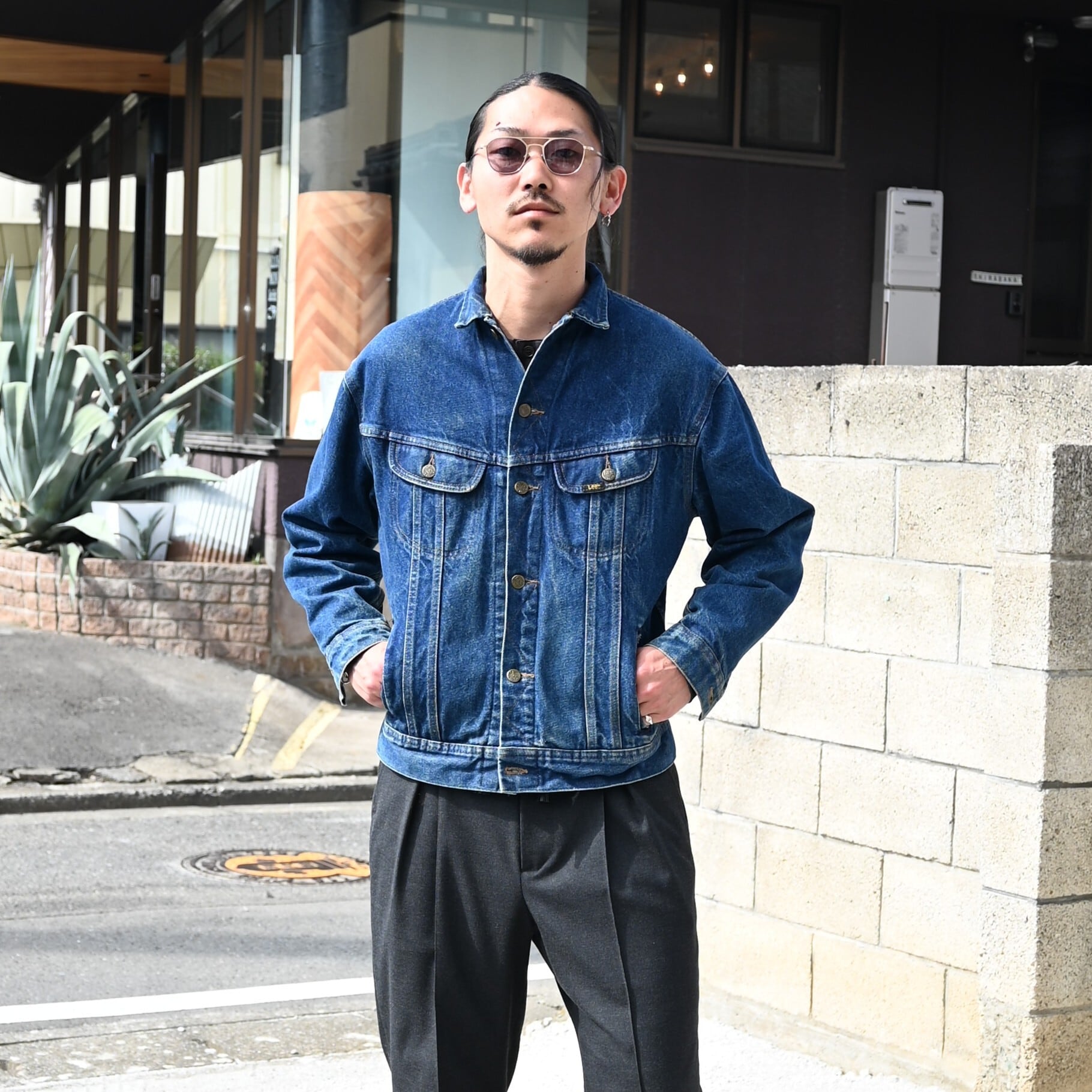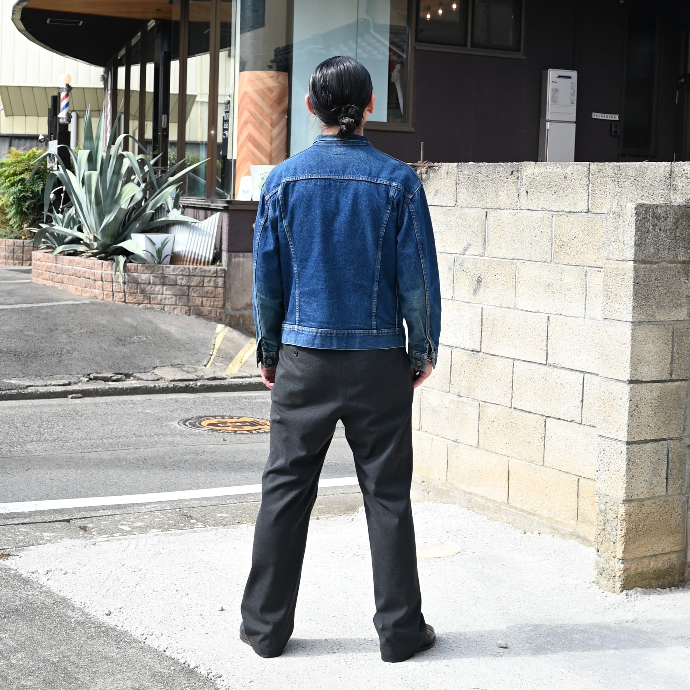 Wearing the new YASHIKI Sekkei Mohair Cardigan as the main piece. For the inner layer, I paired it with a vintage LEE 220-J Denim Jacket and styled it with SAYATOMO 2-Tack Slacks.