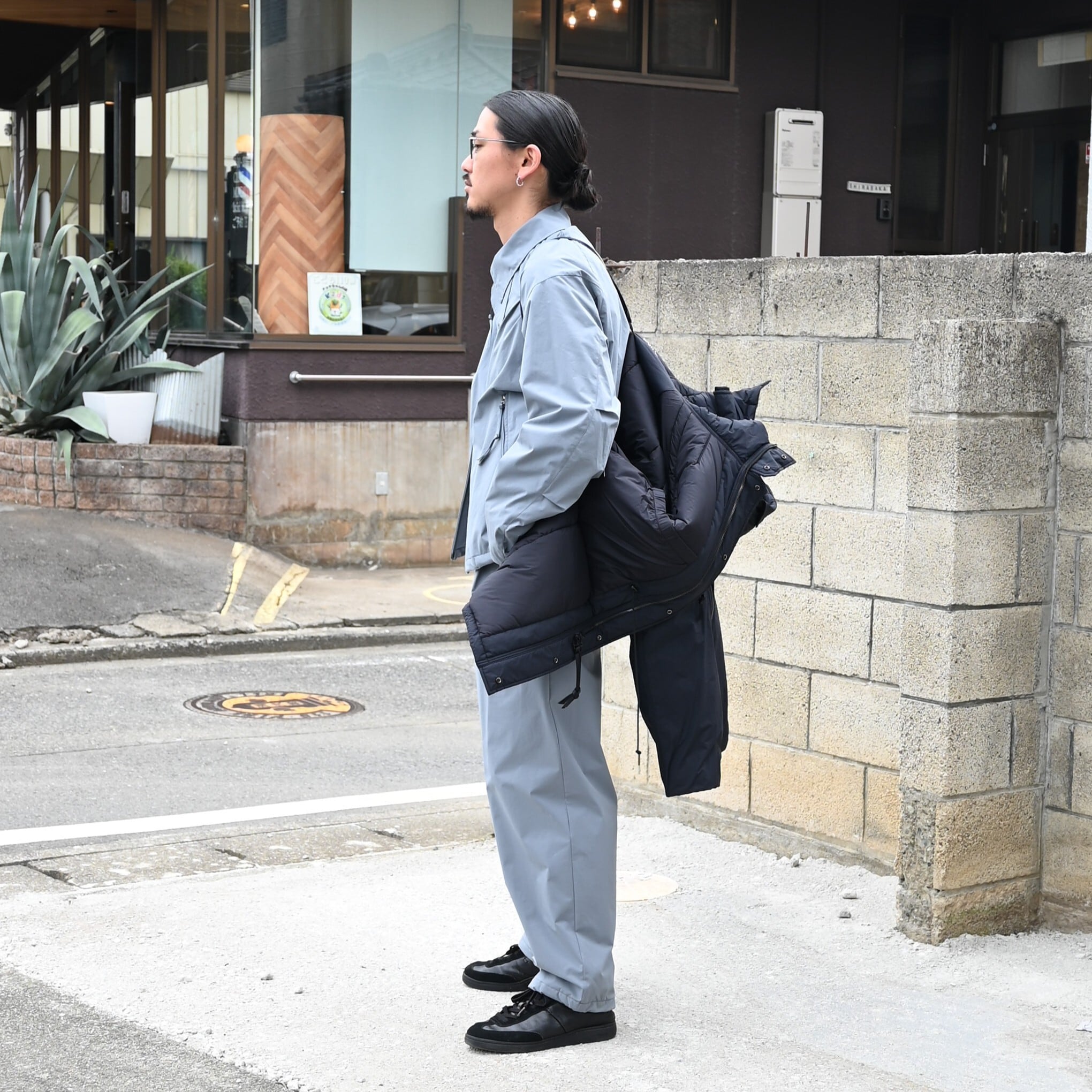 product twelve(プロジェクトトゥエルブ)のPrimaloft Puffer Coatをメイン着用。インナーには同ブランドのCity Active Warm Jacket、 City Active Warm Pantsセットアップグレイカラーを着用。マッドな水色のため、大人っぽさも残した雰囲気で色物ですが着用しやすいです。