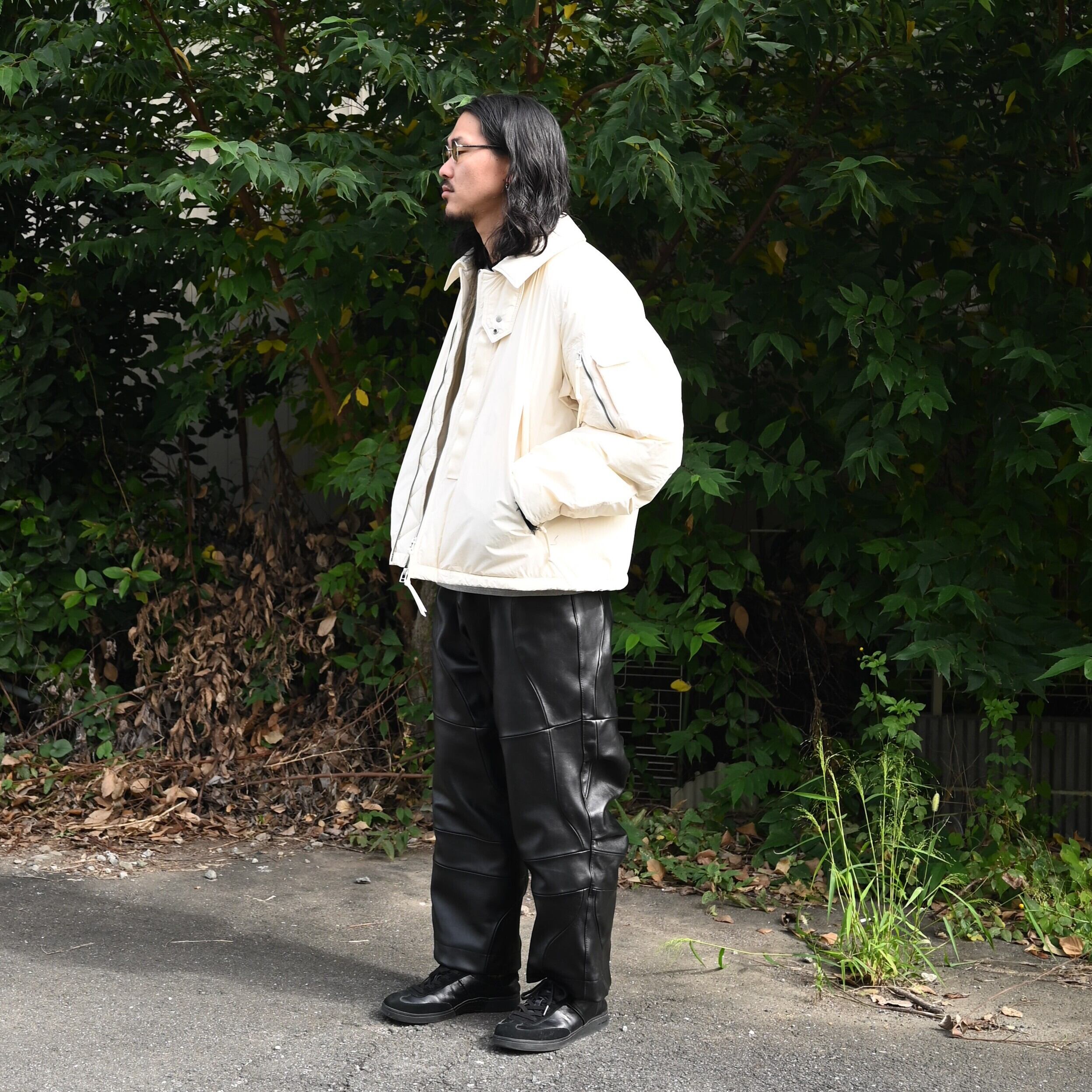 product twelve(プロダクトトゥエルブ)の新作ダウンにLEH(レー)のレザーパンツ相性良さそうと思って合わせてみたら、いい感じに◯