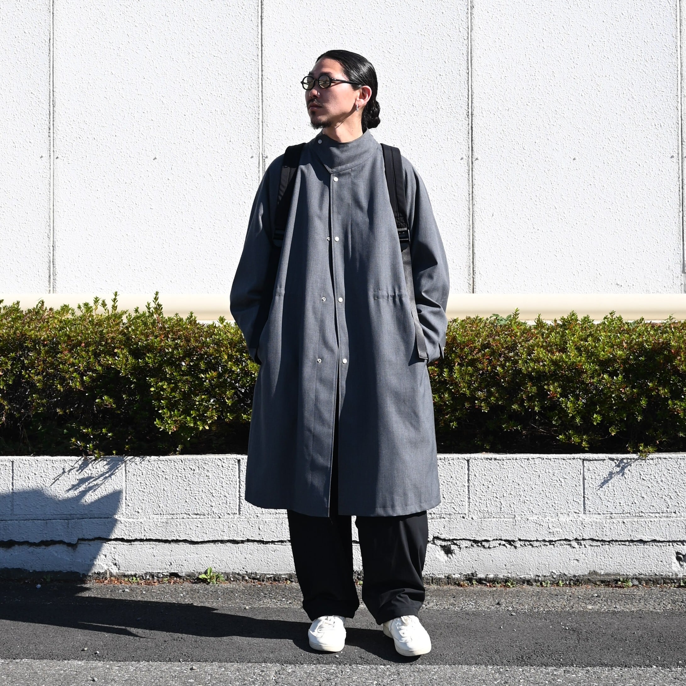 product twelve(プロダクトトゥウェルブ)のCity Active Warm Jacket、City Active Warm Pantsをセットアップ着用。T/W Rain Coatを合わせたシティースタイル。UNTRACE / 218(ナップバッグ)はシティースタイルと相性抜群です。