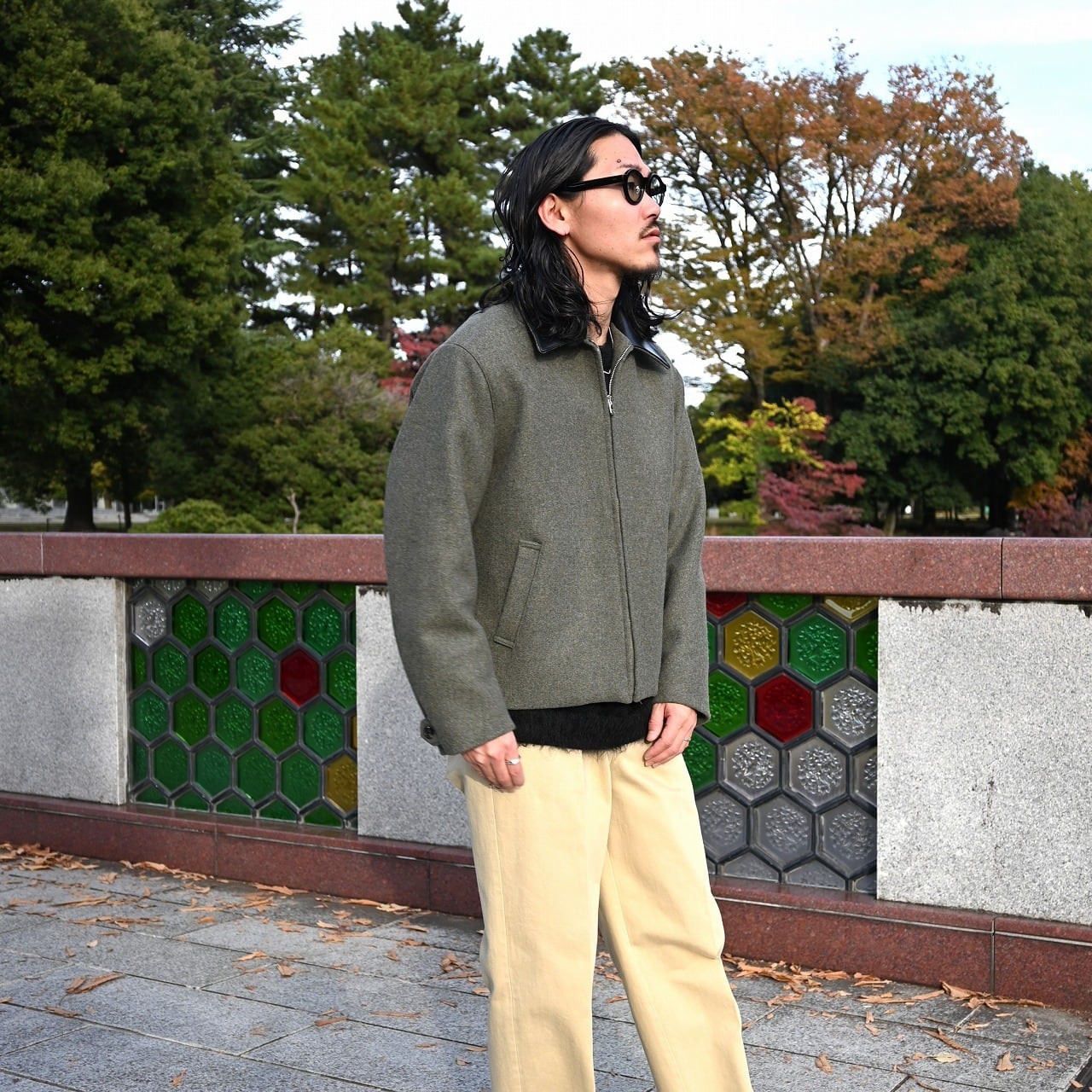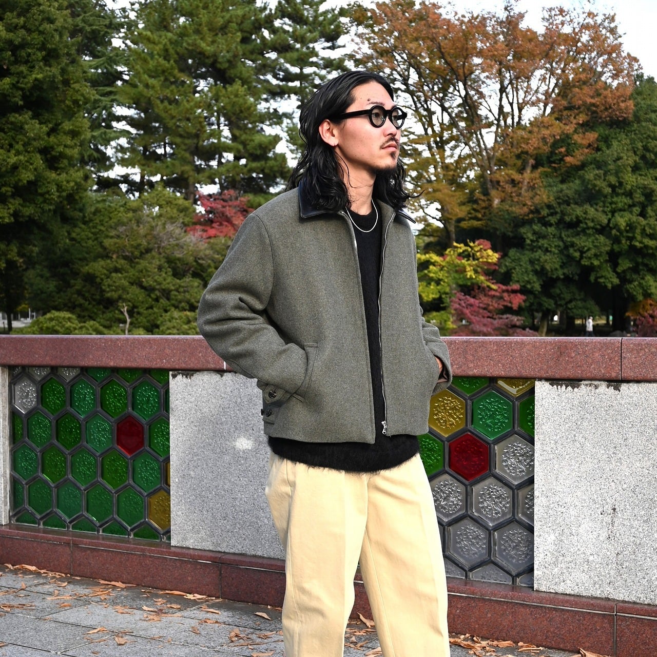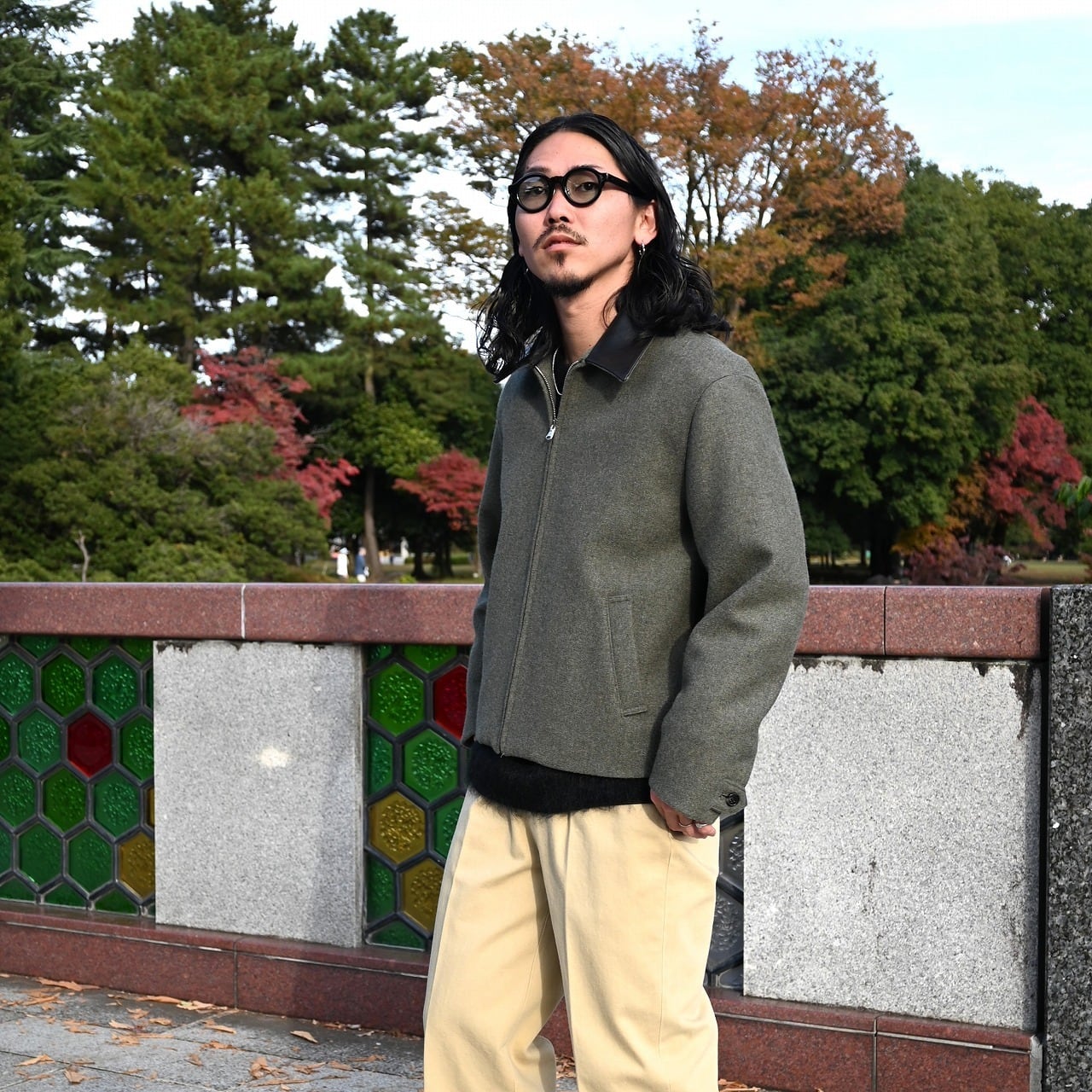 Styled around INTERIM’s new Harrington jacket, crafted from British-made melange wool felt sourced from the LVMH deadstock collection. I’m wearing a size 4, which provides a just-right fit for my height. For those who prefer a more relaxed look, even someone shorter than me can wear it comfortably.
