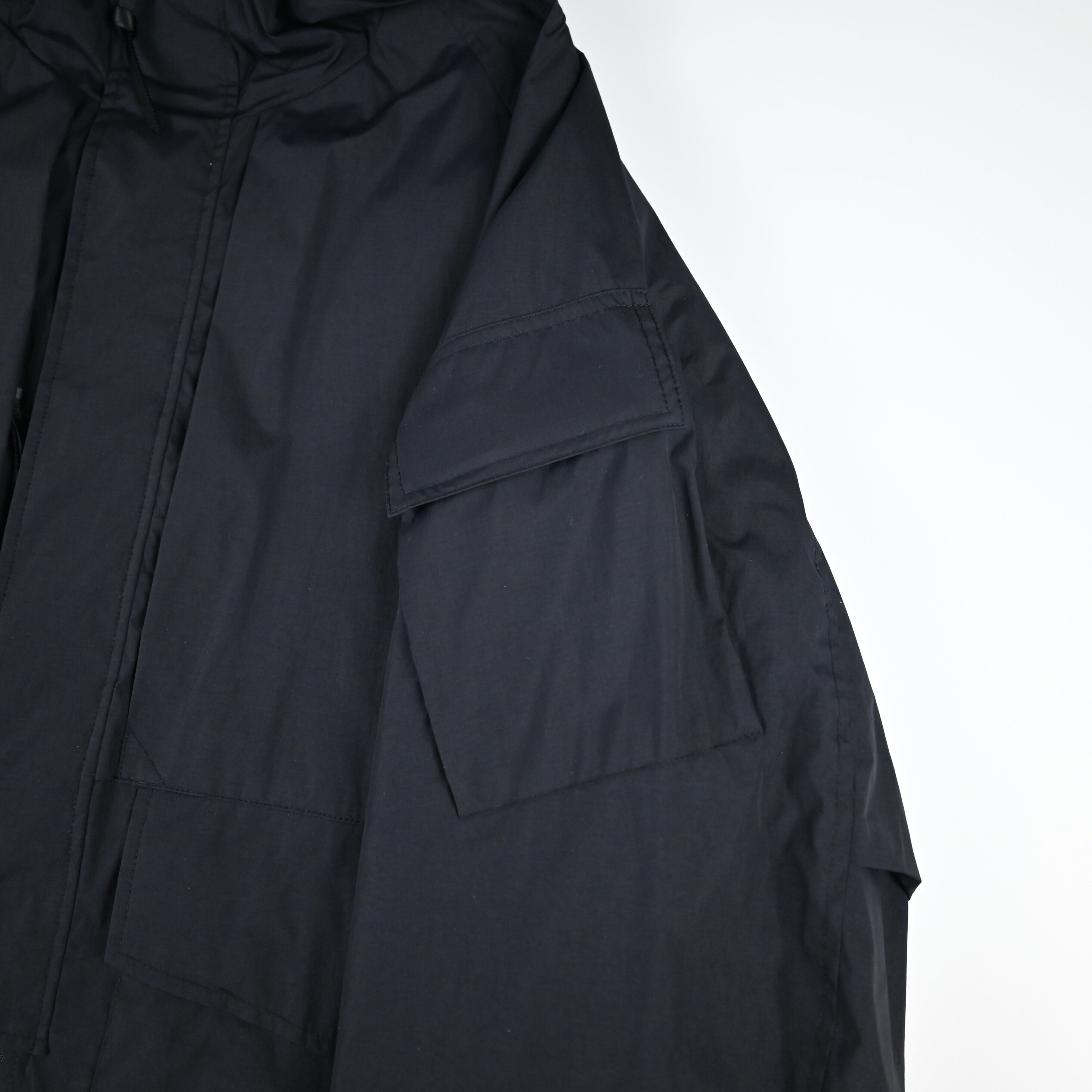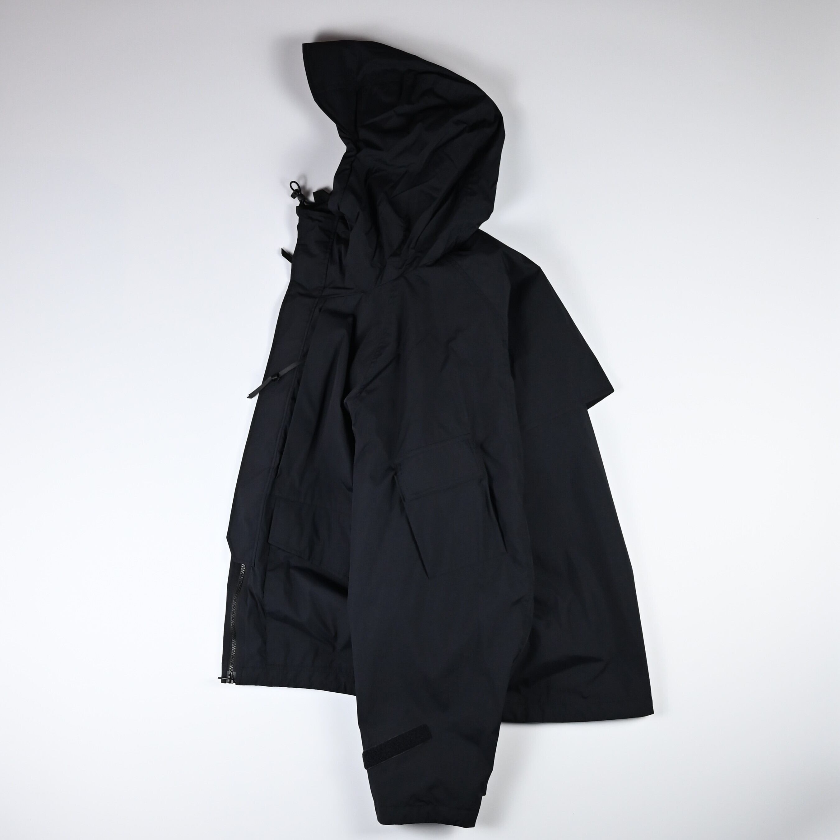 • The hem drawcord and adjustable sleeve tabs allow for functional silhouette changes.