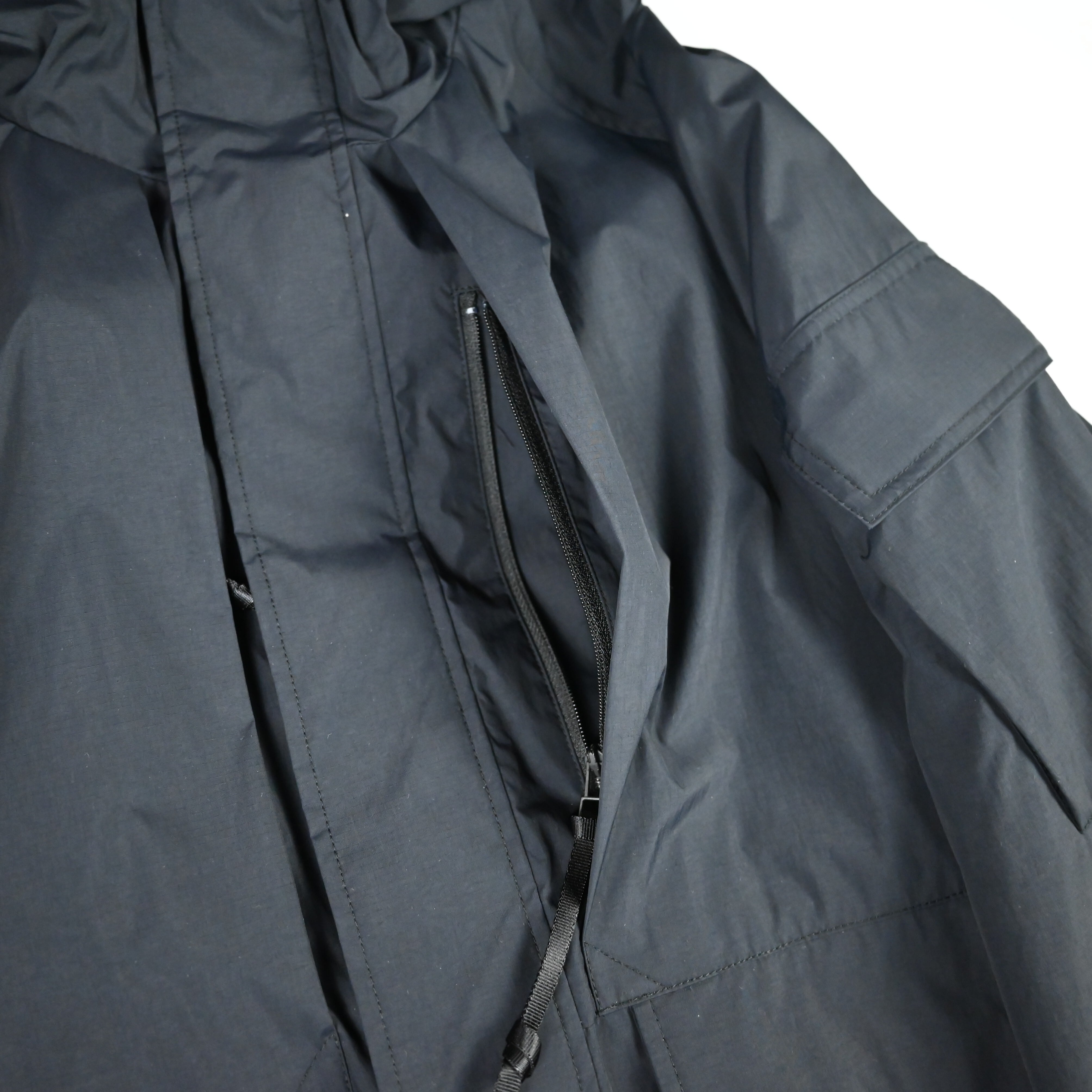 ・脇下にはファスナーで開閉できるベンチレーションを配置することで、暖かさを保ちながら湿気だけを逃し、着心地の良さを実現。裾口のスピンドル、袖タブにより、機能的なシルエット変化が可能
