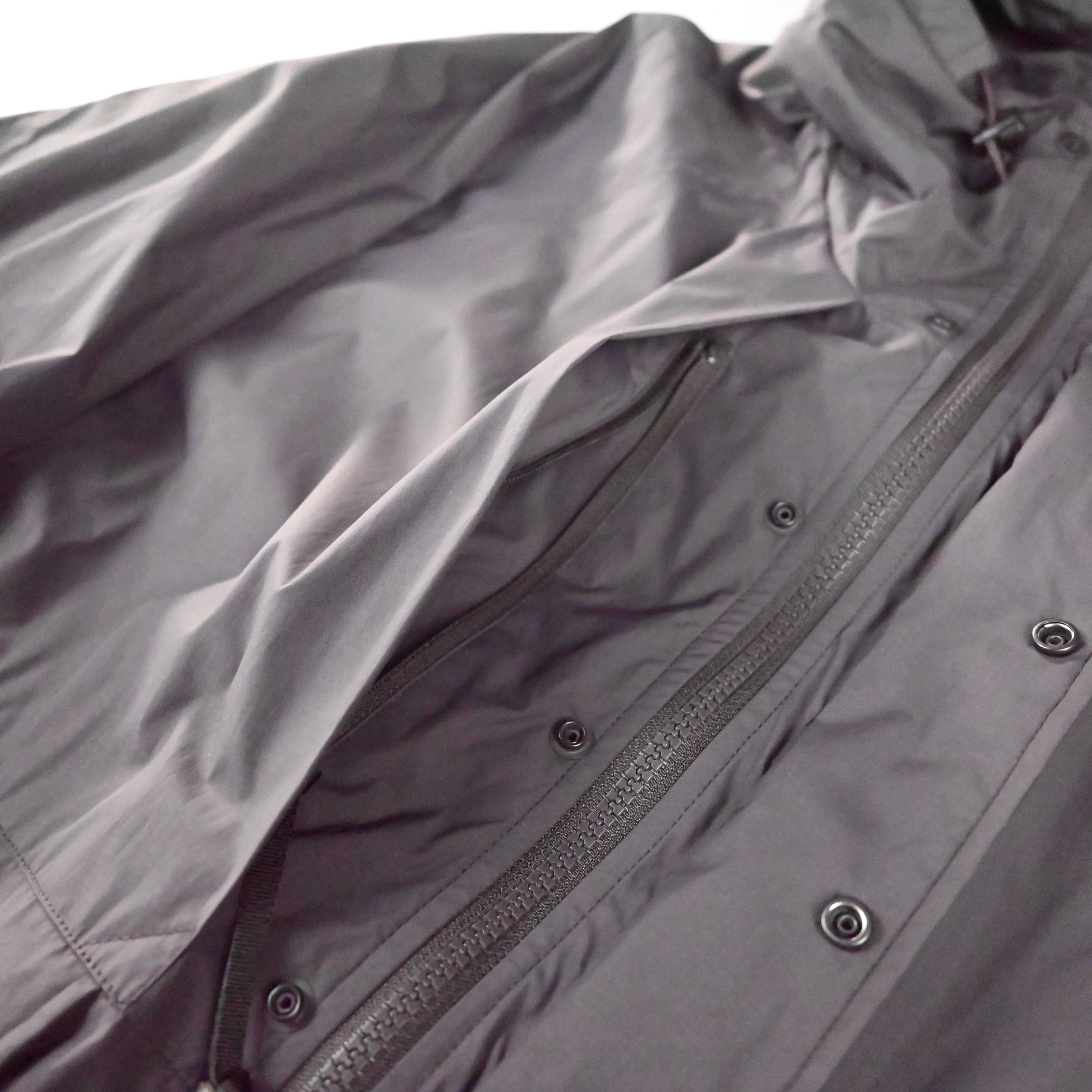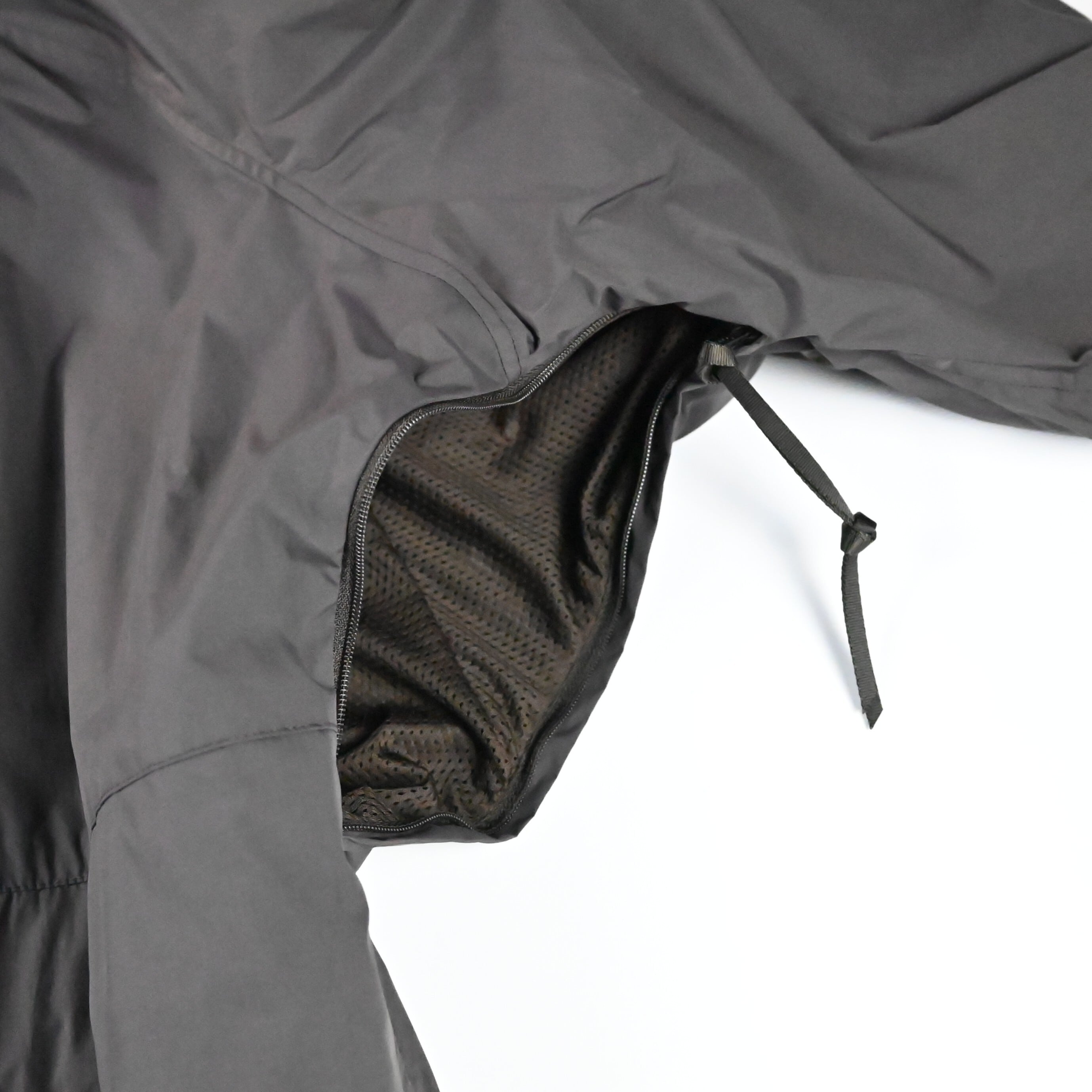 ・脇下にはファスナーで開閉できるベンチレーションを配置することで、暖かさを保ちながら湿気だけを逃し、着心地の良さを実現。裾口のスピンドル、袖タブにより、機能的なシルエット変化が可能