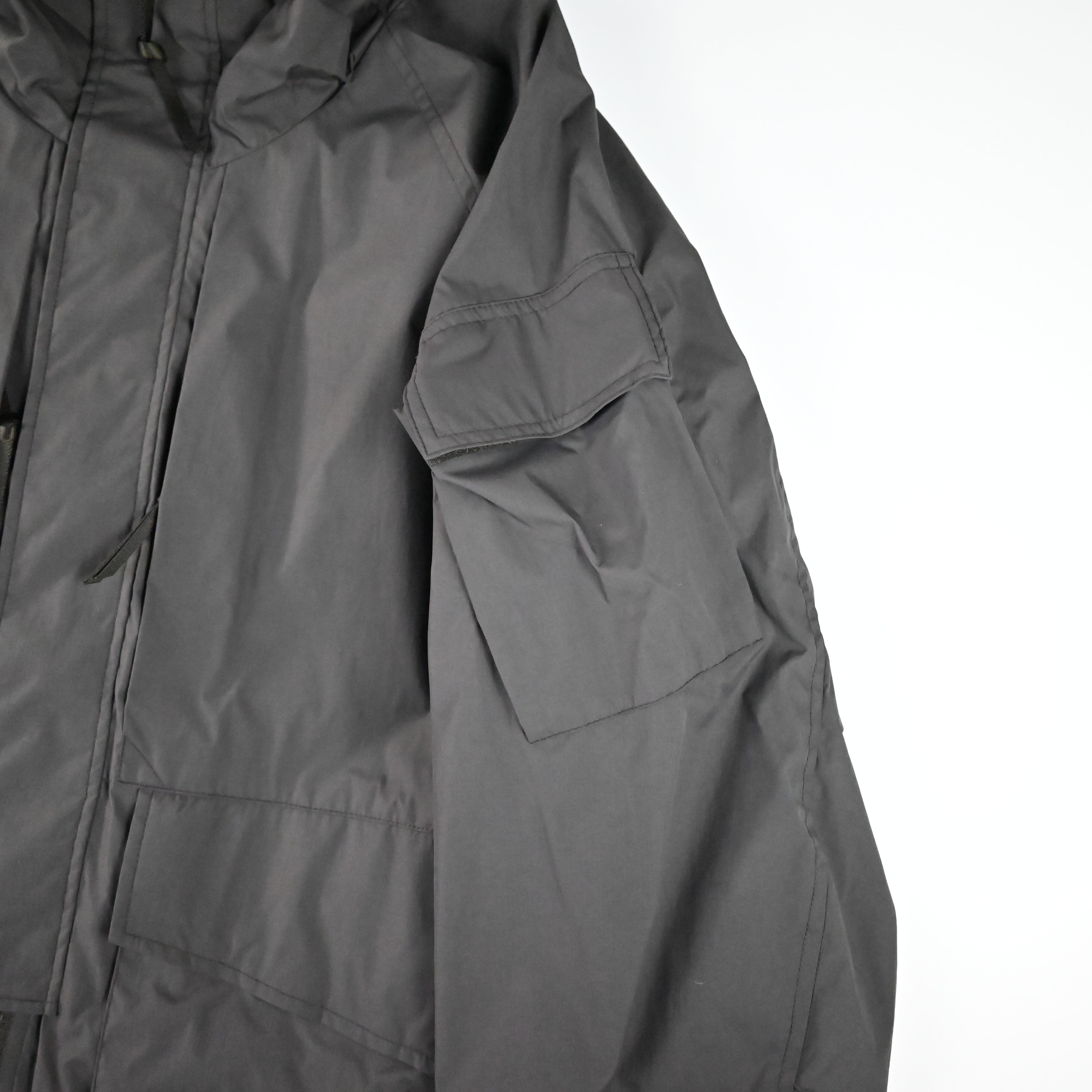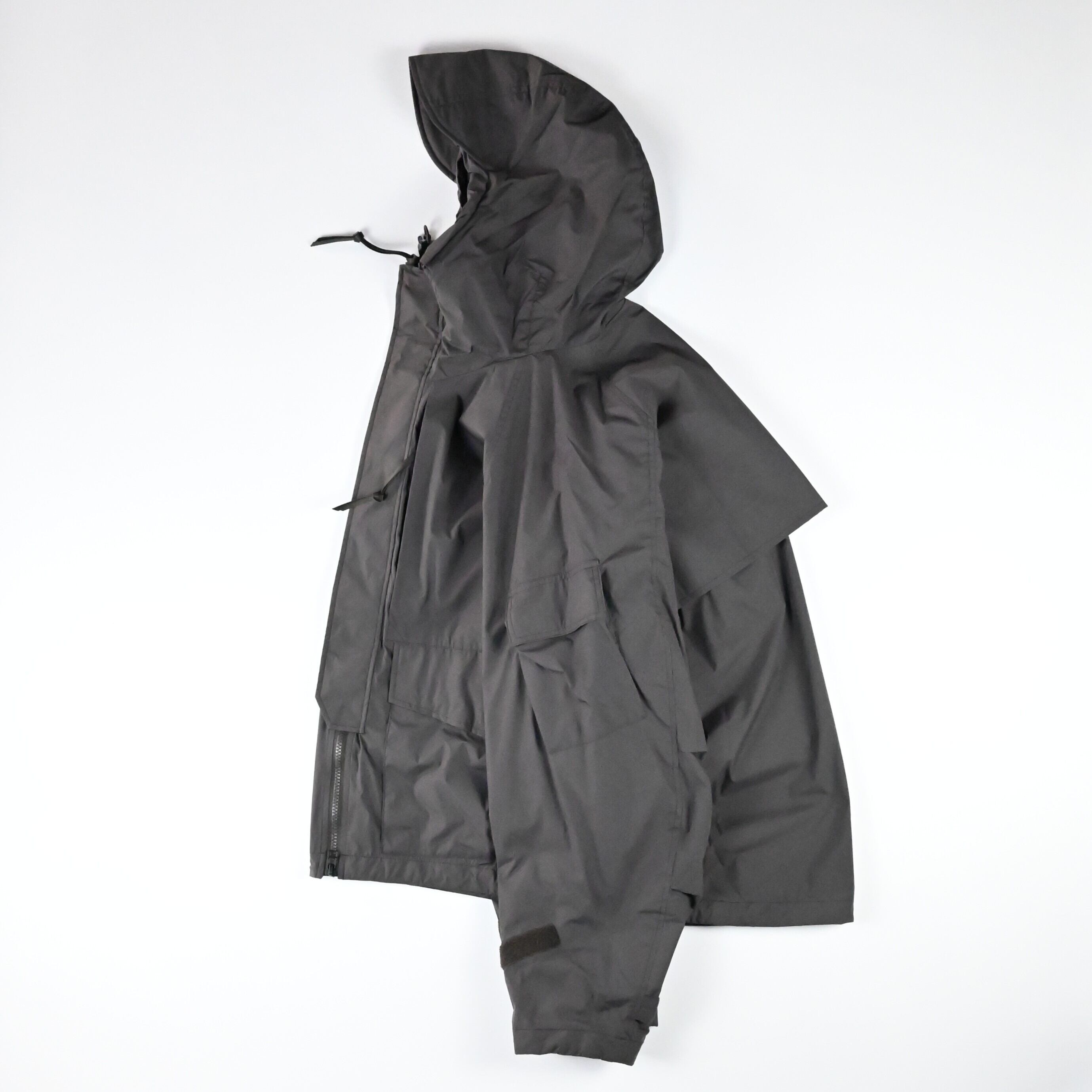 • The hem drawcord and adjustable sleeve tabs allow for functional silhouette changes.