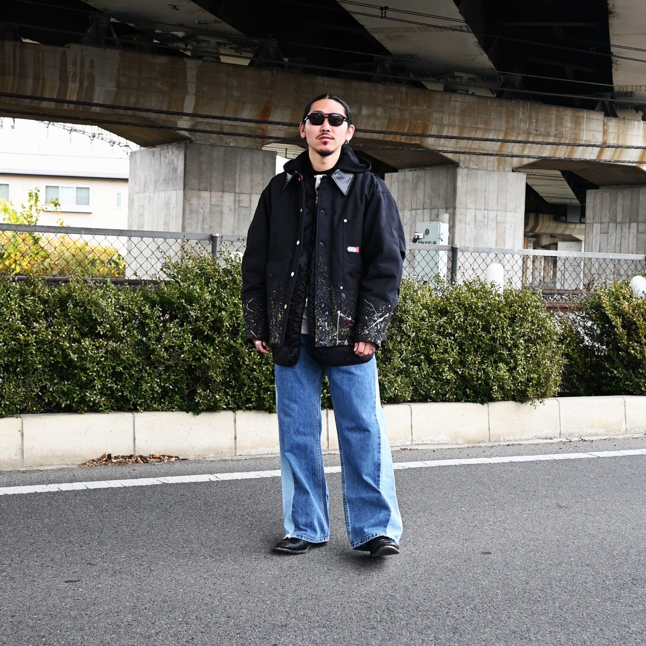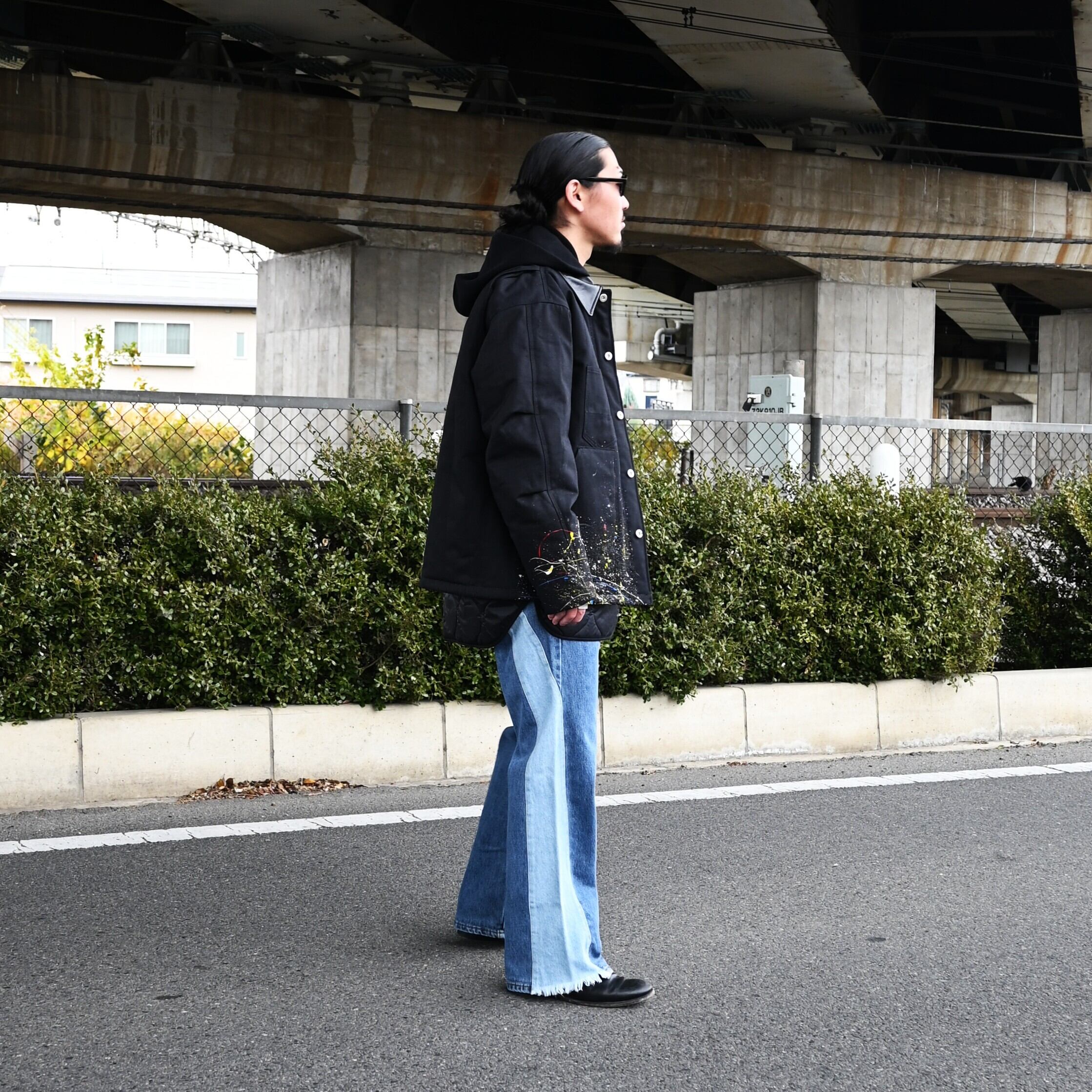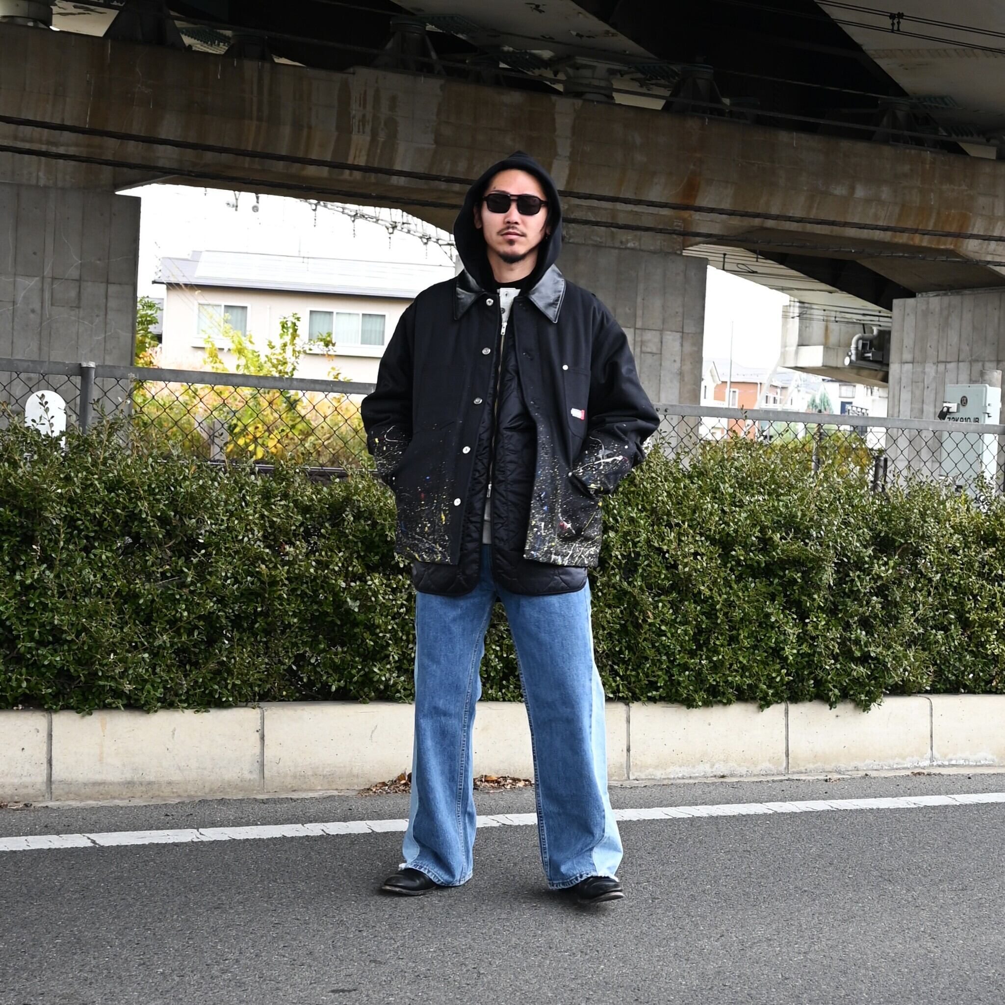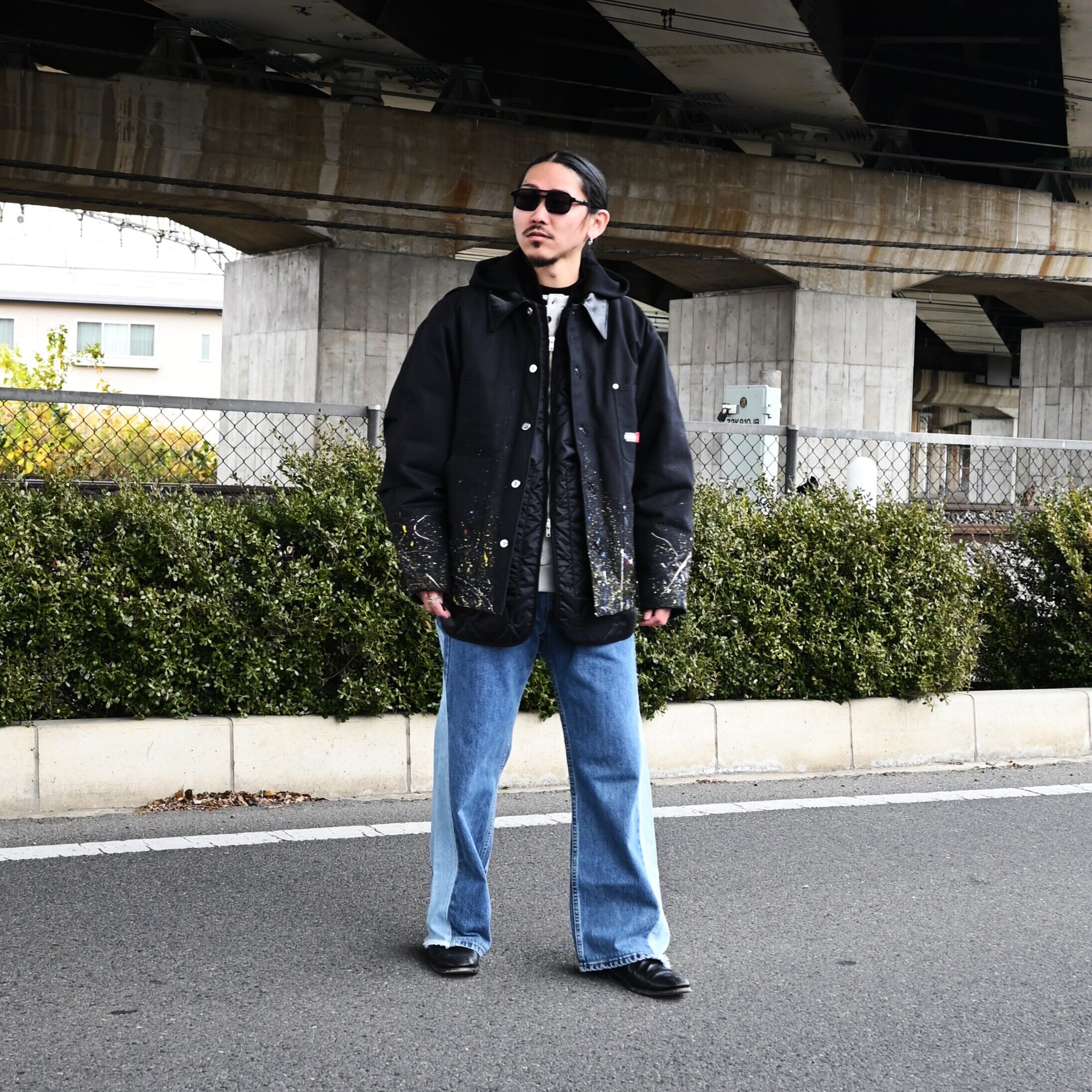 "Introducing the 'Quilting Docking Coverall Blouson,' a one-of-a-kind piece due to the paint processing from LEH.