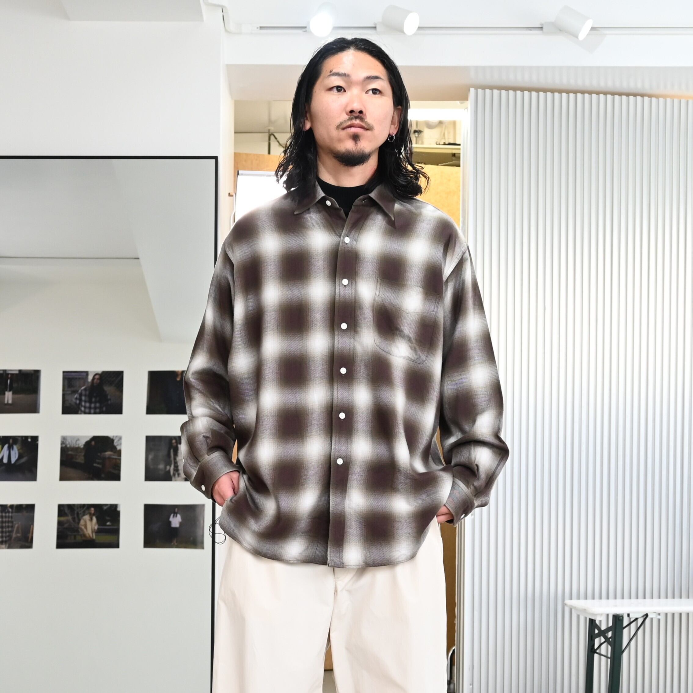 コットンリヨセル混紡のブランド初展開となるオンブレチェックシャツ