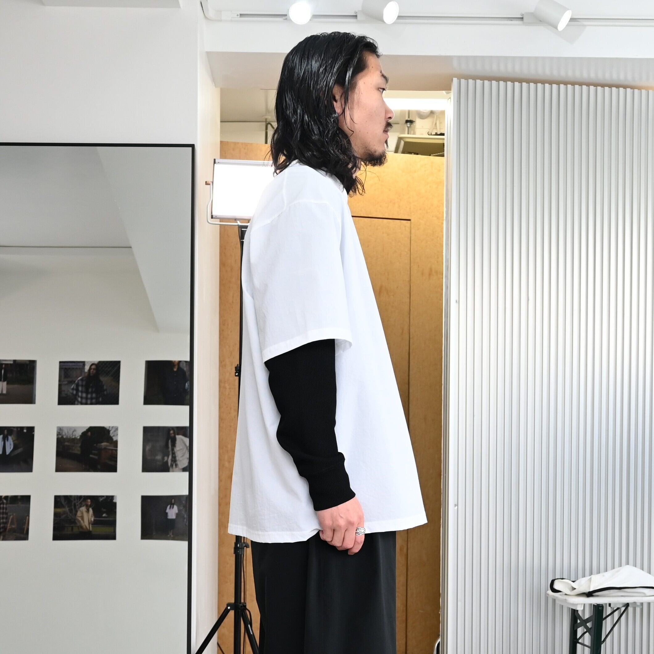 ・シルエットは肩に程よく落ちるバランスで、一枚でも、同素材のジャケットのインナーとしても最適