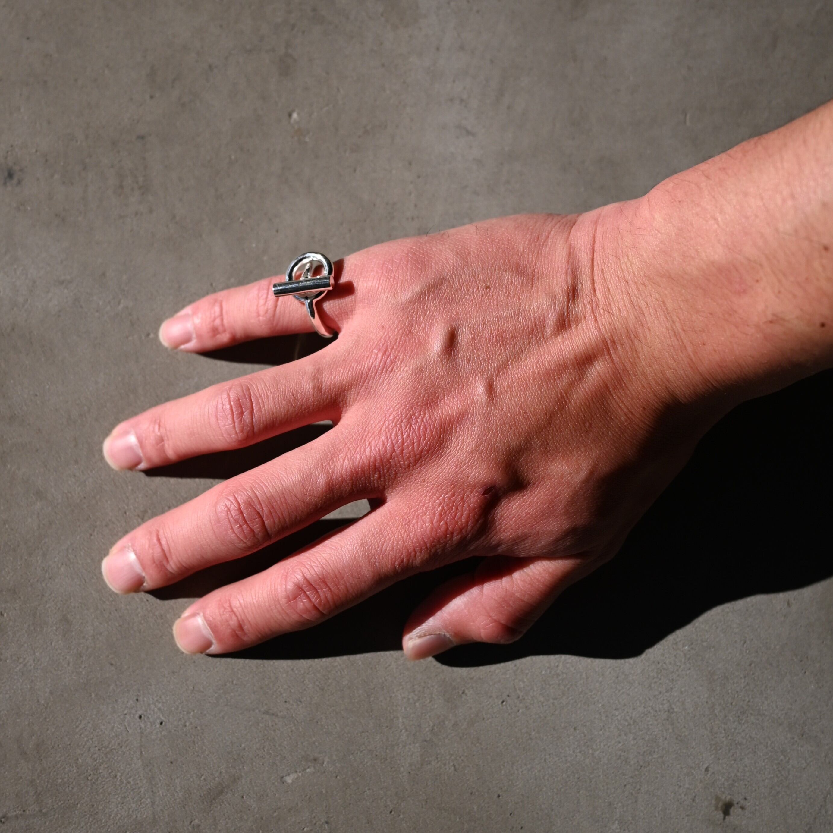 ・Tバー型のブレスレットをリングへ落とし込んだデザイン