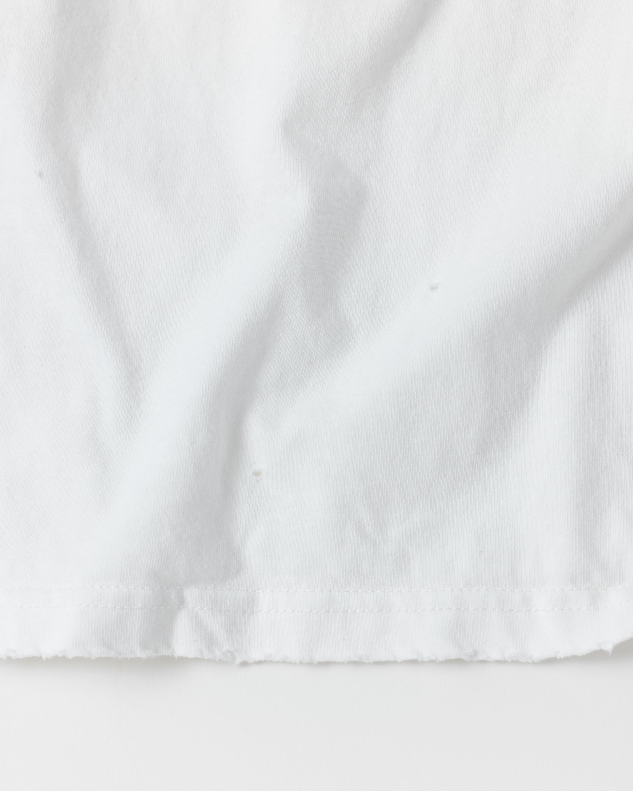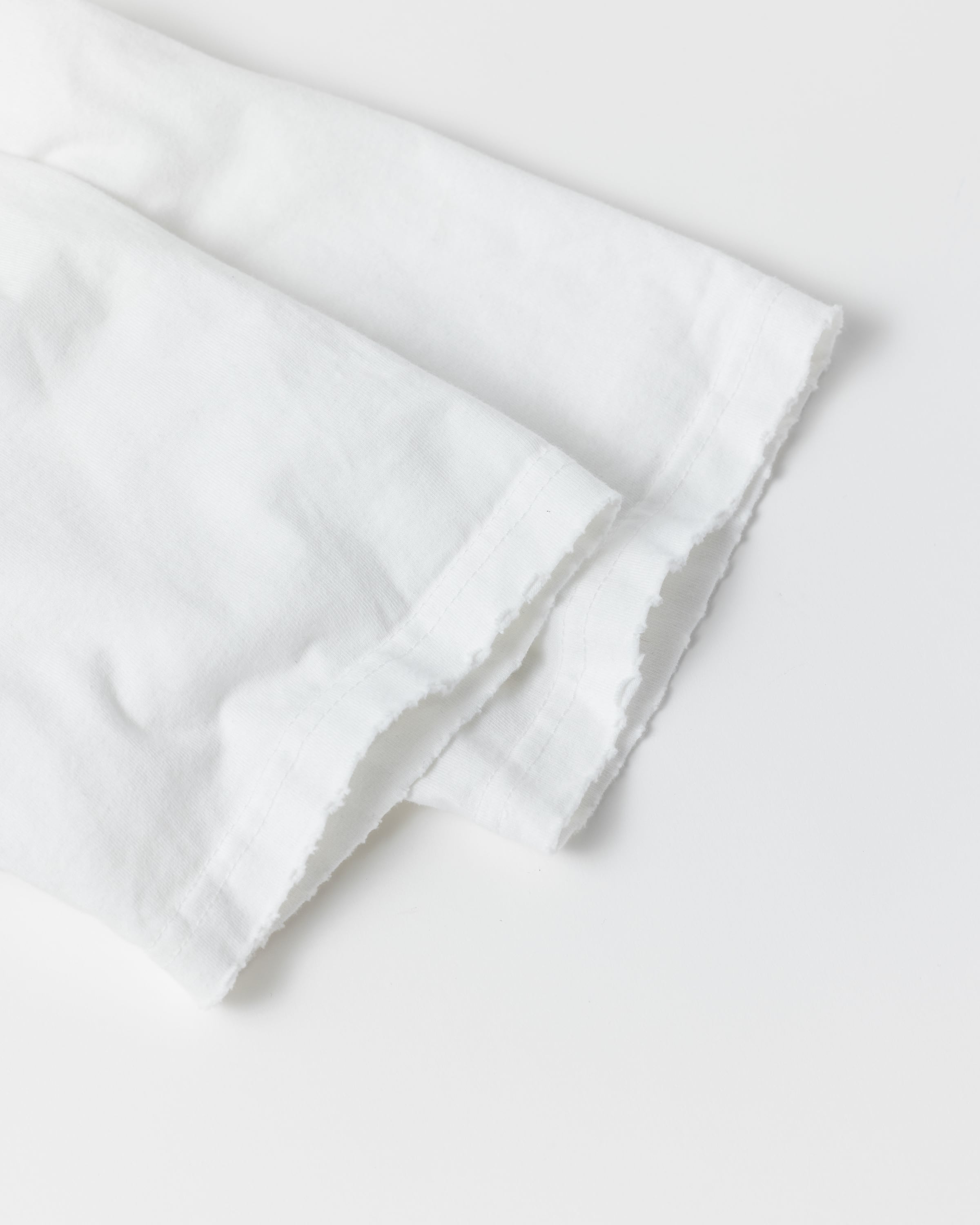 ・ワンポイント刺繍を施したミニマルなTシャツに、さらに手作業による加工を加えた一着