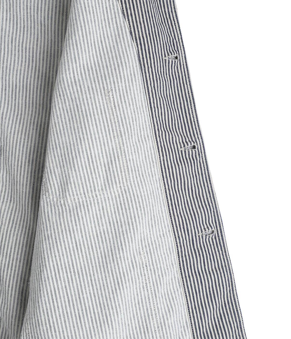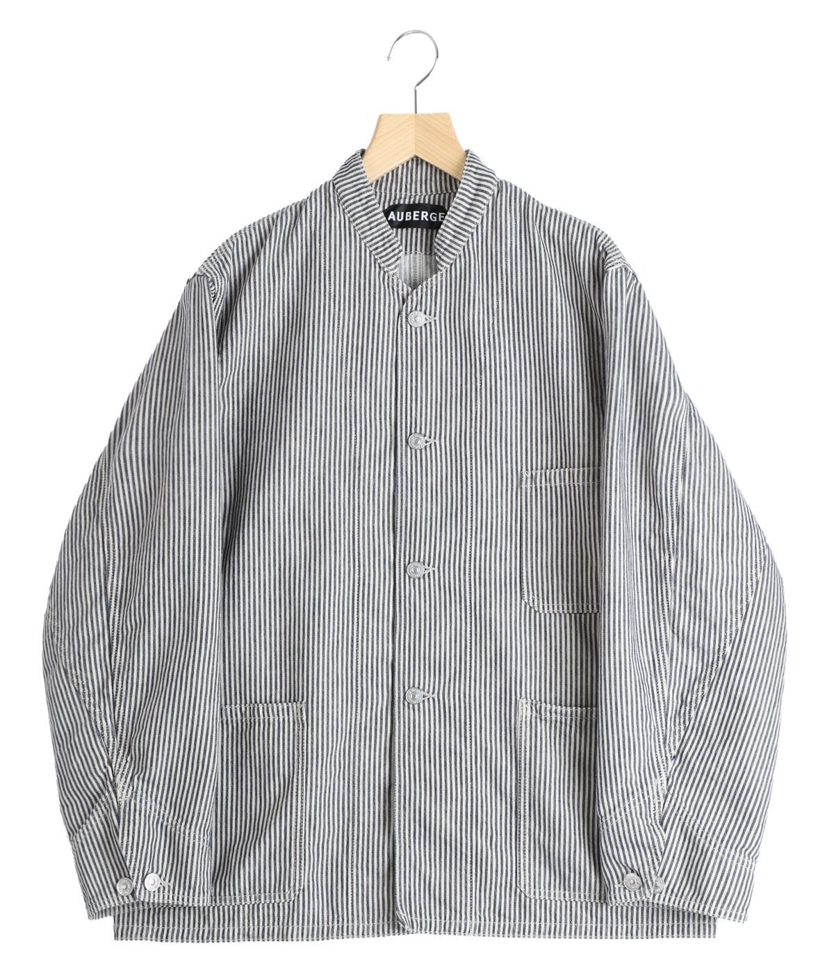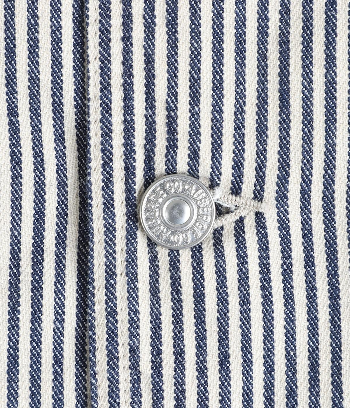 ヘリンボン組織のヒッコリーストライプ、着込むとヴィンテージになる生地を狙ったスタンドカラーカバーオール