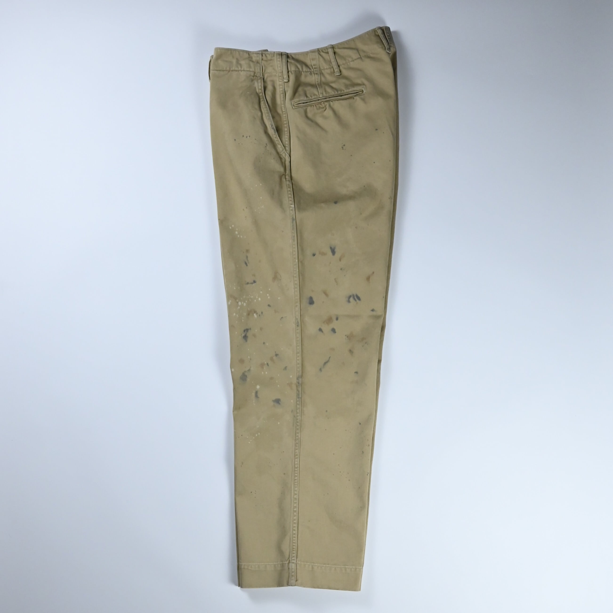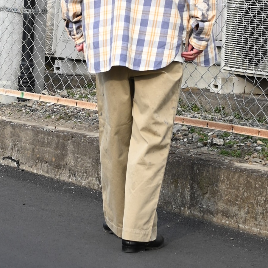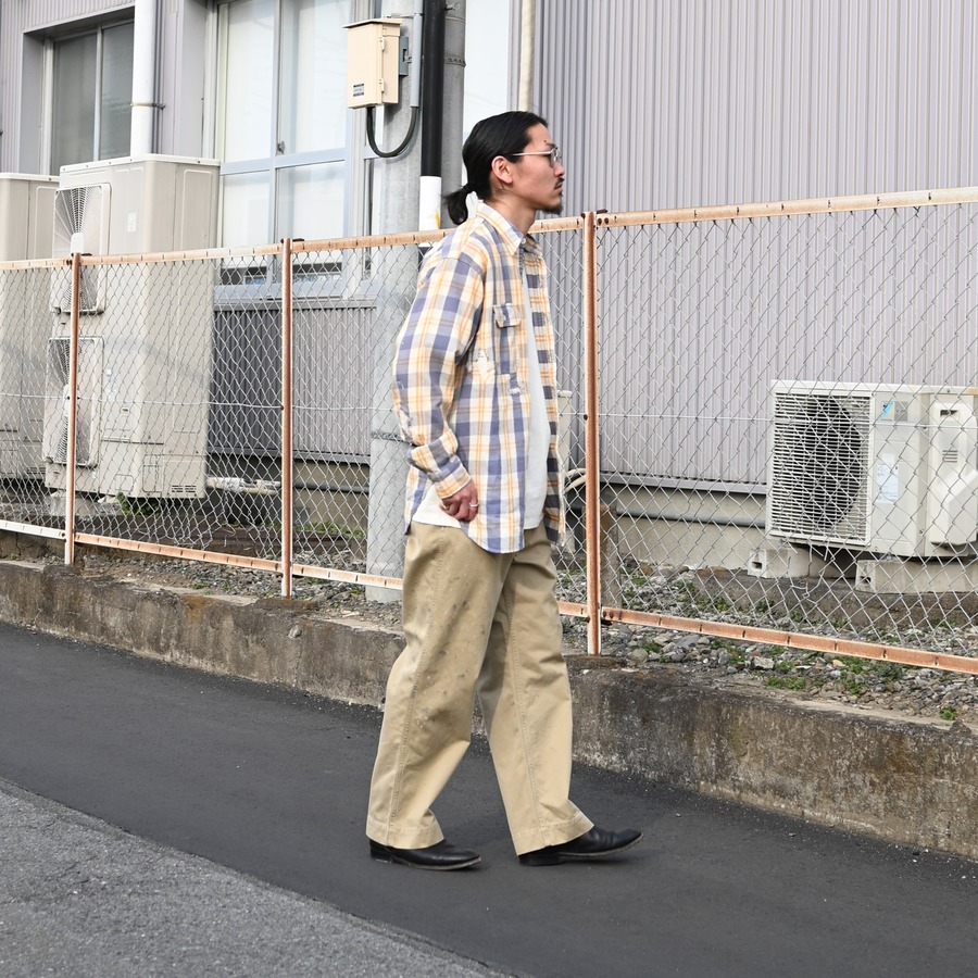 ・1941年モデルのKHAKI TROUSERSをベースに、BOW WOWで評価の高い水染みや汚れ染みの加工を施し、リアルな経年変化の空気感を加えている