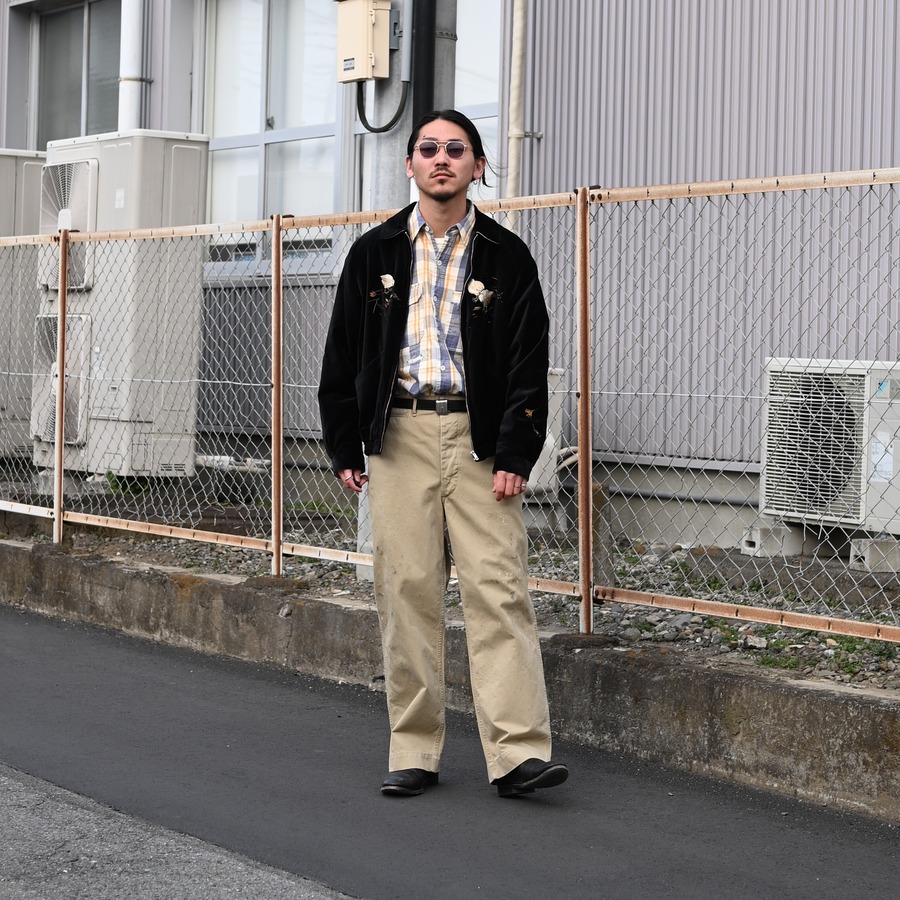Made from cotton twill fabric inspired by military trousers from around the 1940s, faithfully preserving the atmosphere of the era