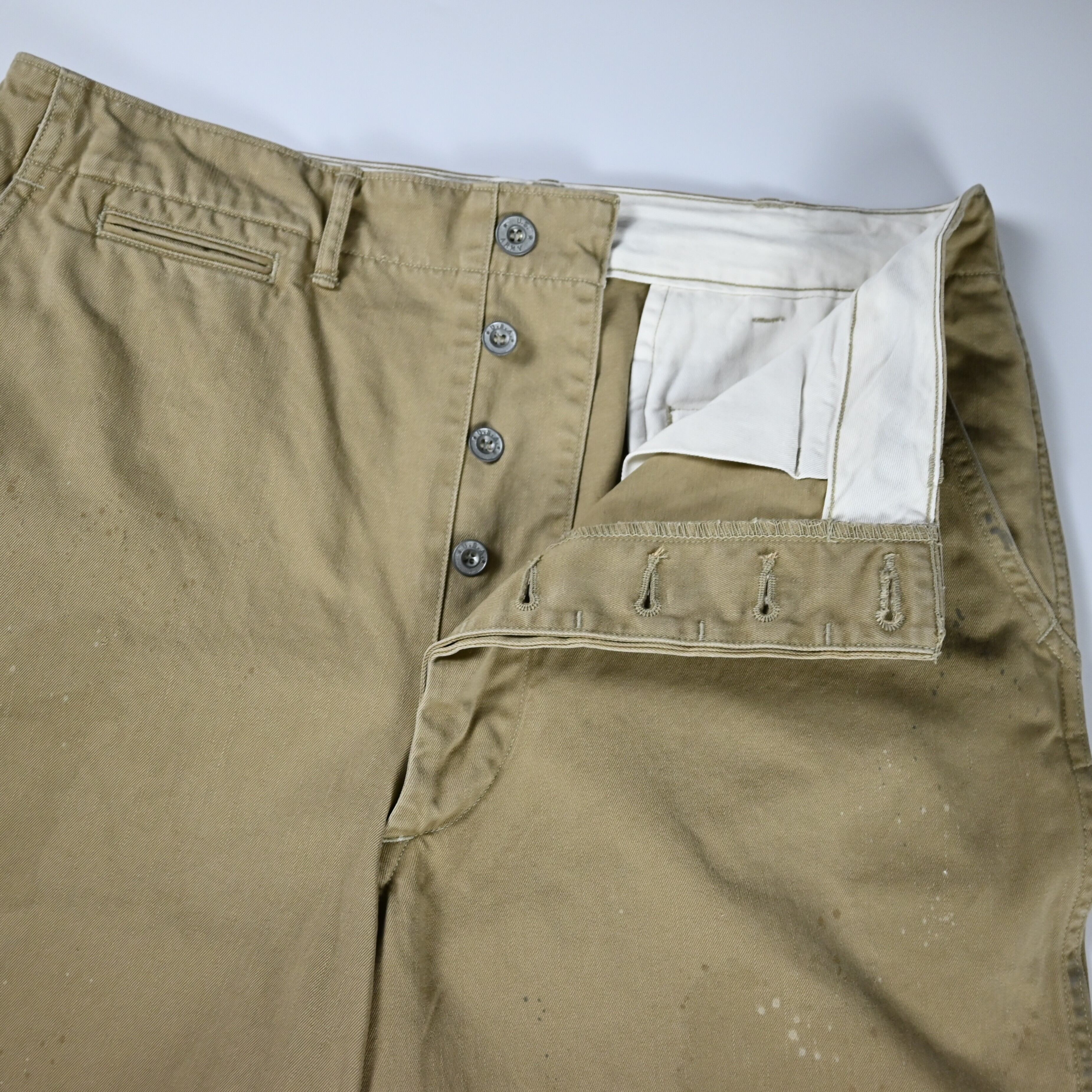 1941年モデルをベースに経年変化加工を加えたカーキトラウザーズ