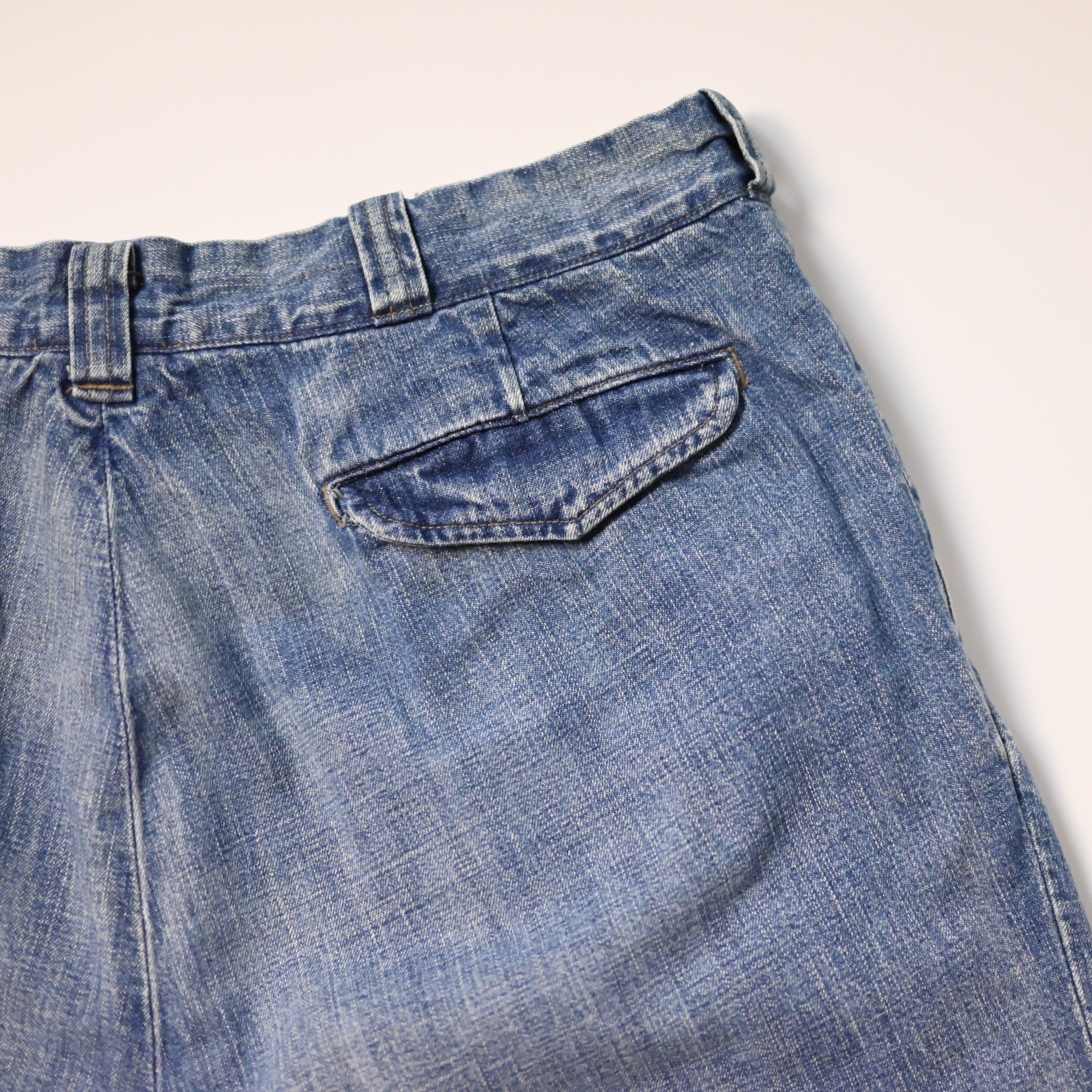 ・1960年代のUS ARMYツータックショーツの文脈を踏まえ、デニム素材に置き換えることで、ミリタリー由来の無骨さとワークウェアの空気感を重ねたバランスに仕上げている