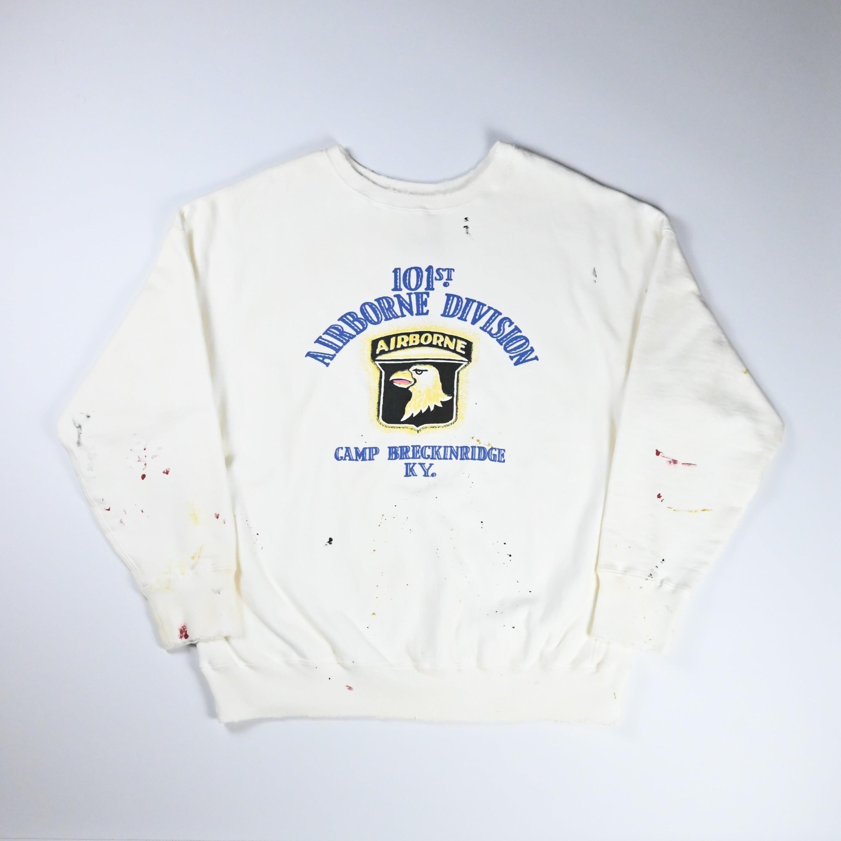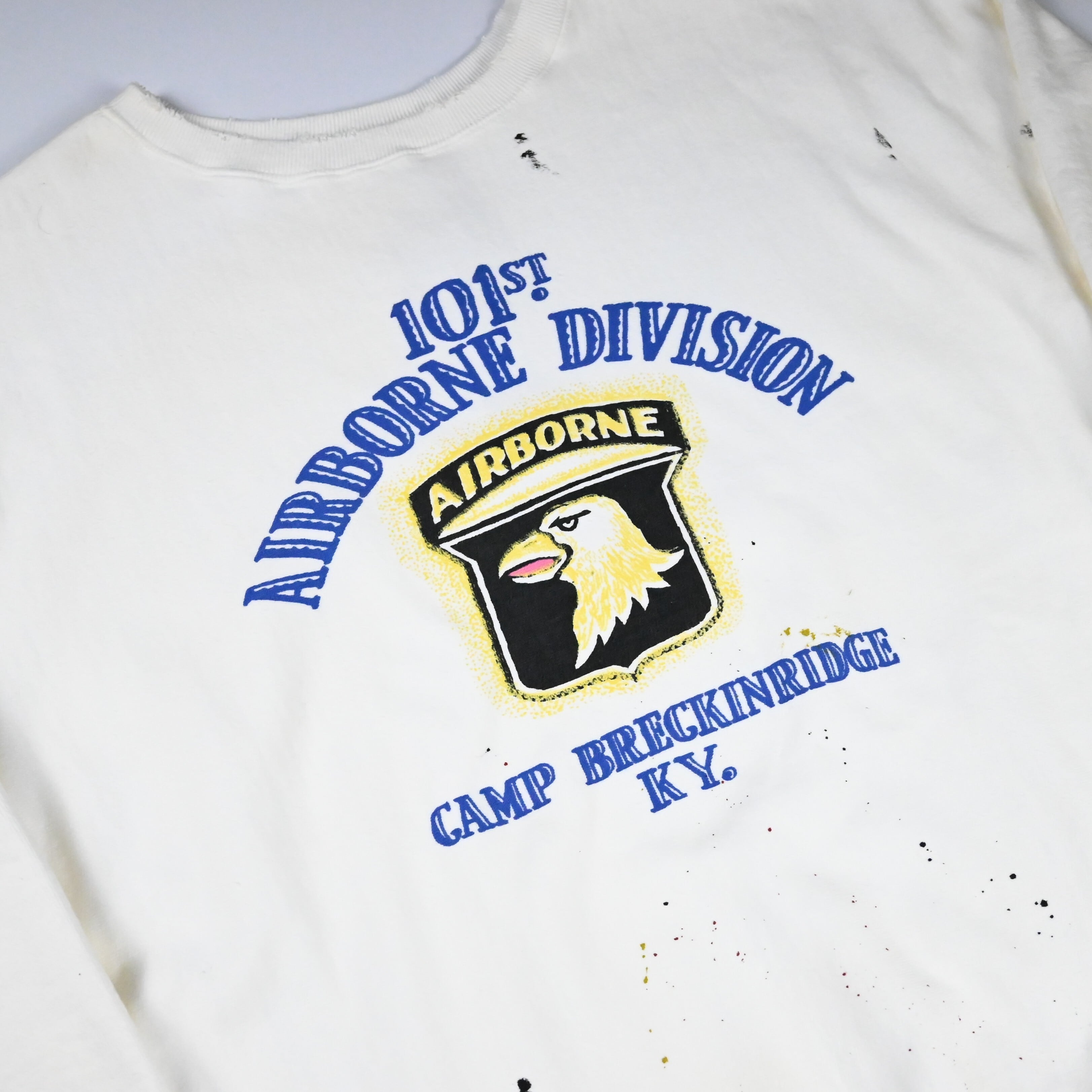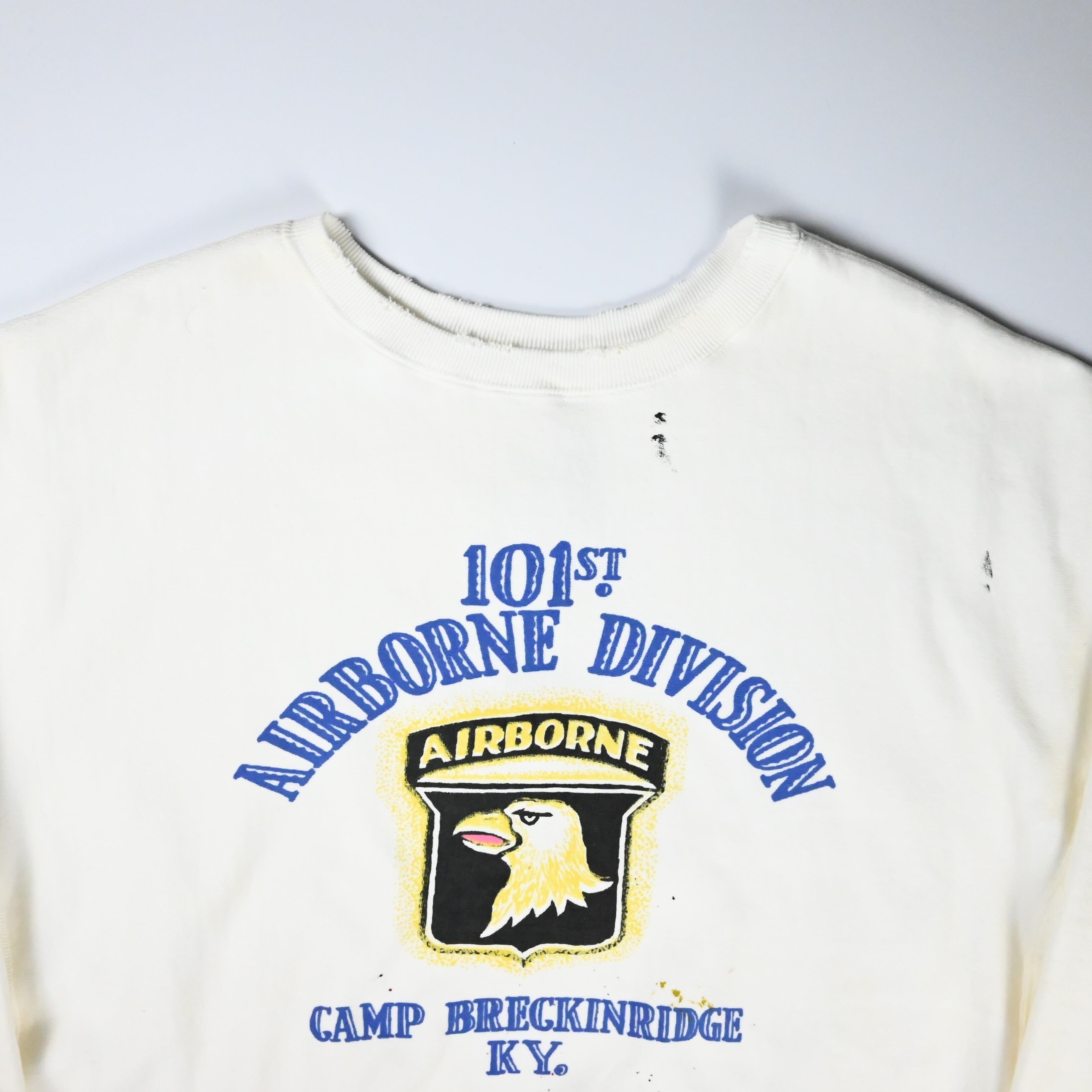 101ST AIRBORNE DIV.の部隊プリントを主役にしたヴィンテージ加工スウェット