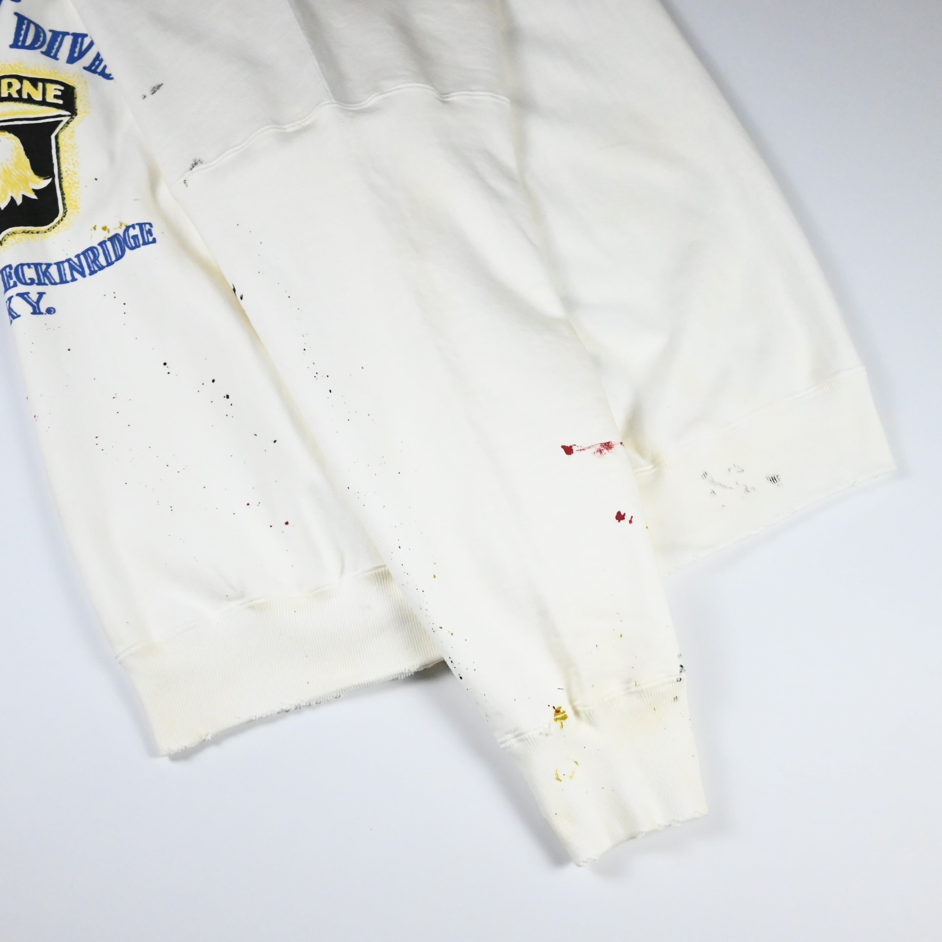 ・101ST AIRBORNE DIV.の部隊プリントを主役に、実際に部隊で着用され、使い込まれてきたスウェットをイメージしたデザイン
