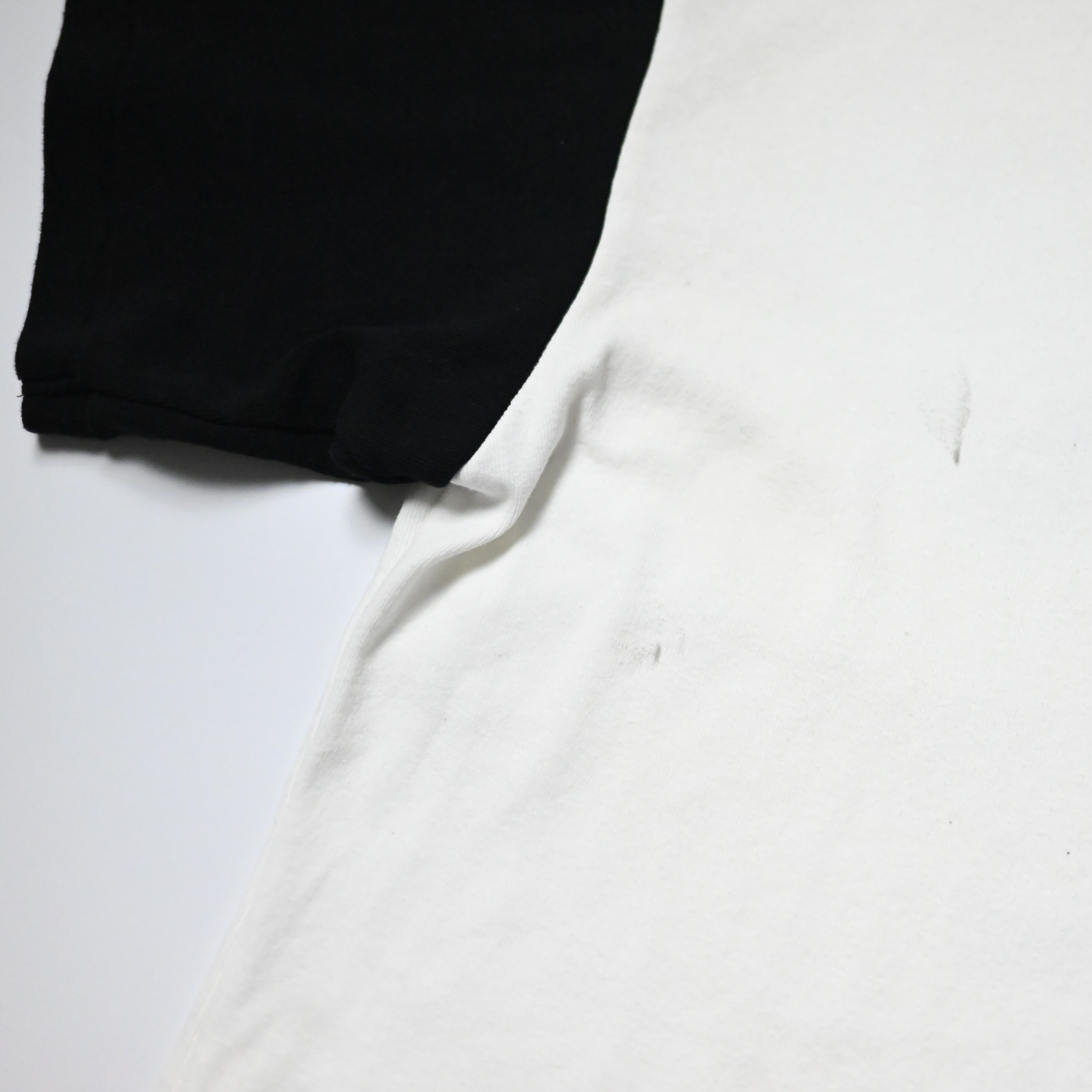 ・アンダーウェア由来のフライスボディに載せることで、無骨なミリタリーモチーフと日常着としての軽さが共存するバランスに