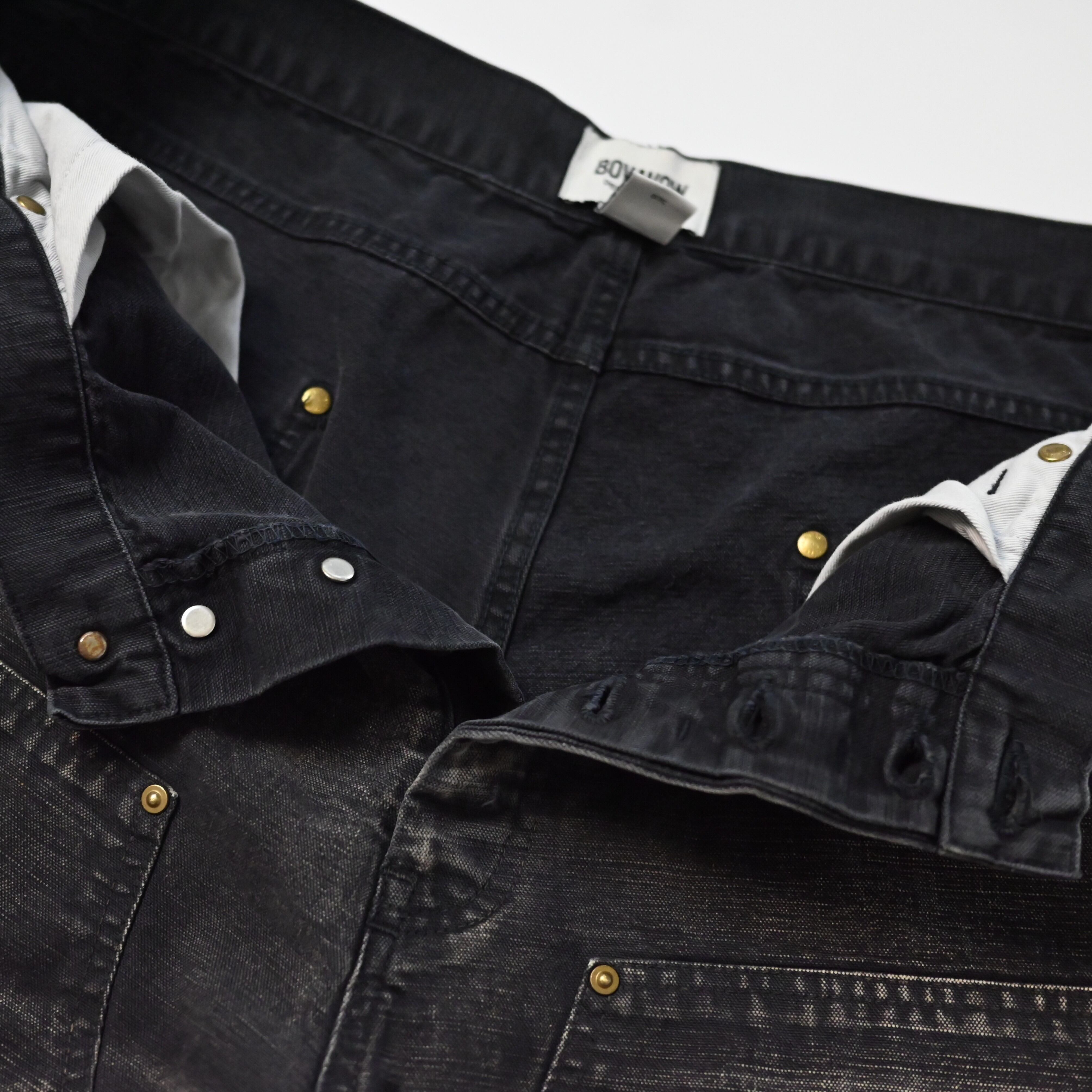 The fabric features realistic fading and wear marks, allowing you to enjoy the look of naturally aged workwear while still being brand new.