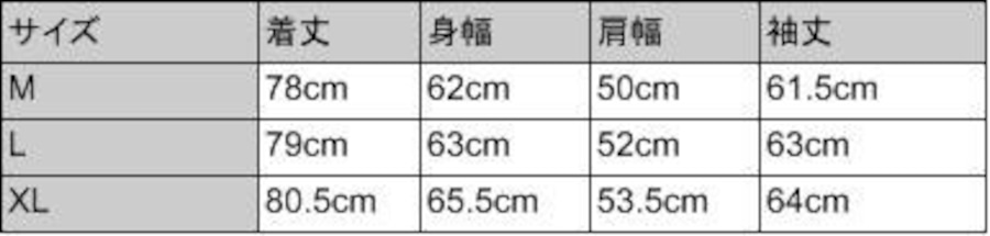サイズXL:着丈80.5cm身幅65.5cm肩幅53.5cm 袖丈64cm