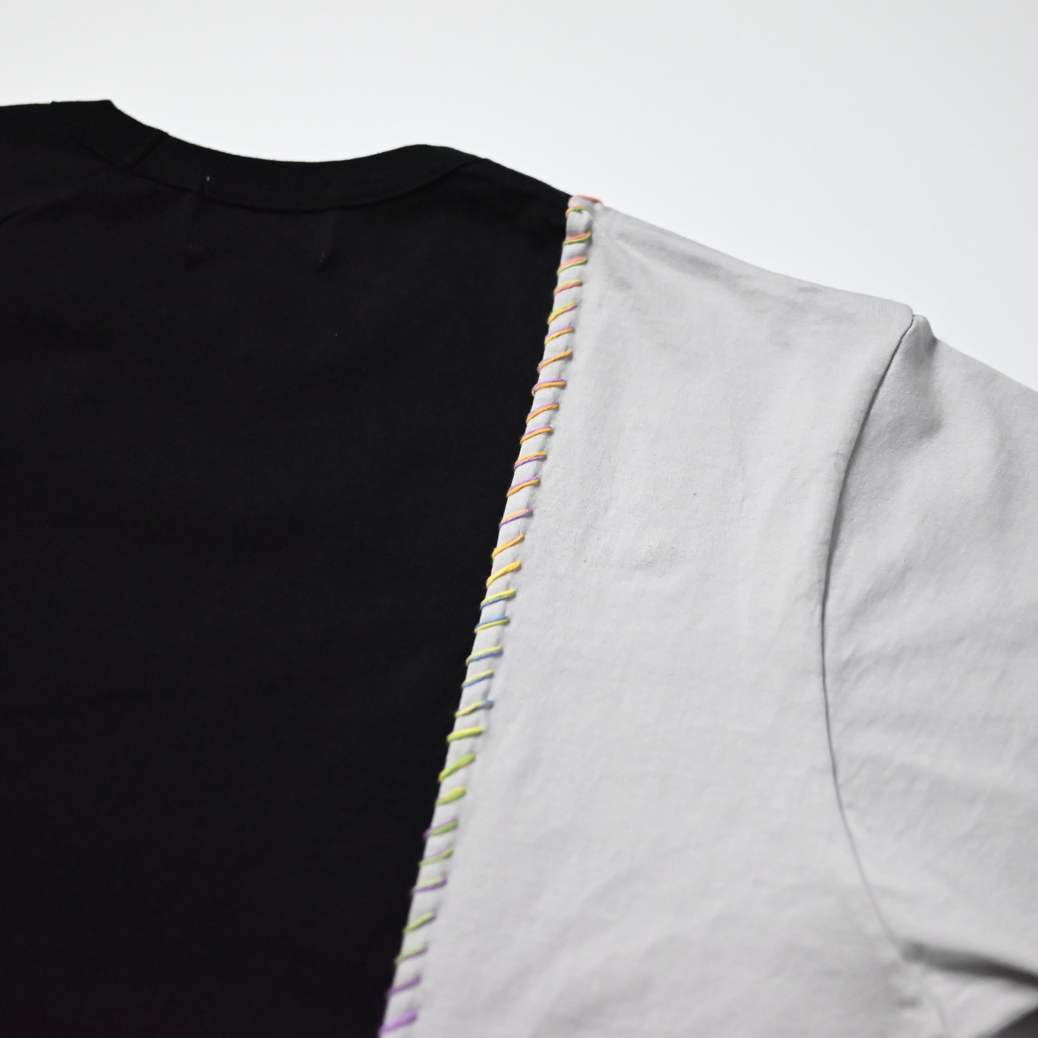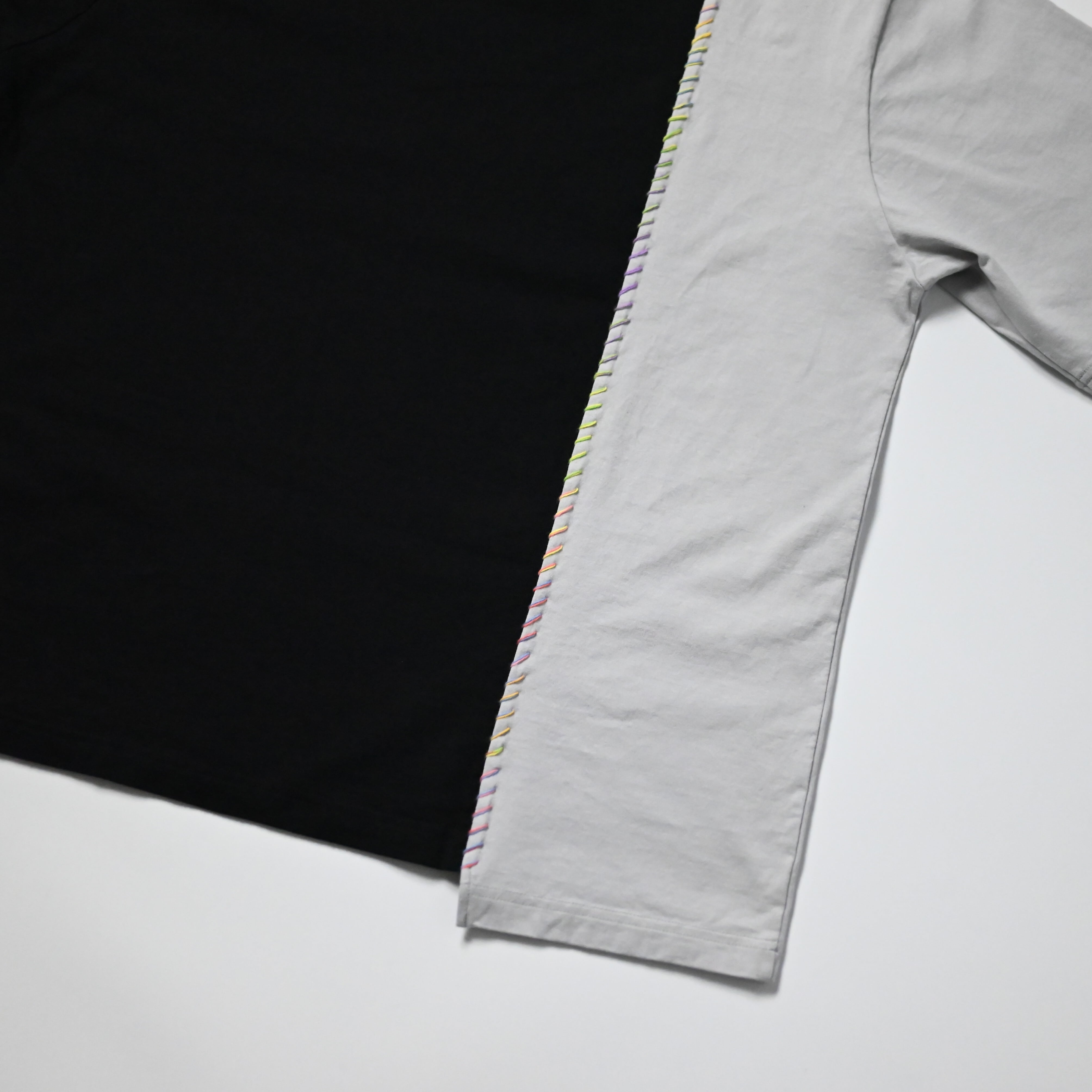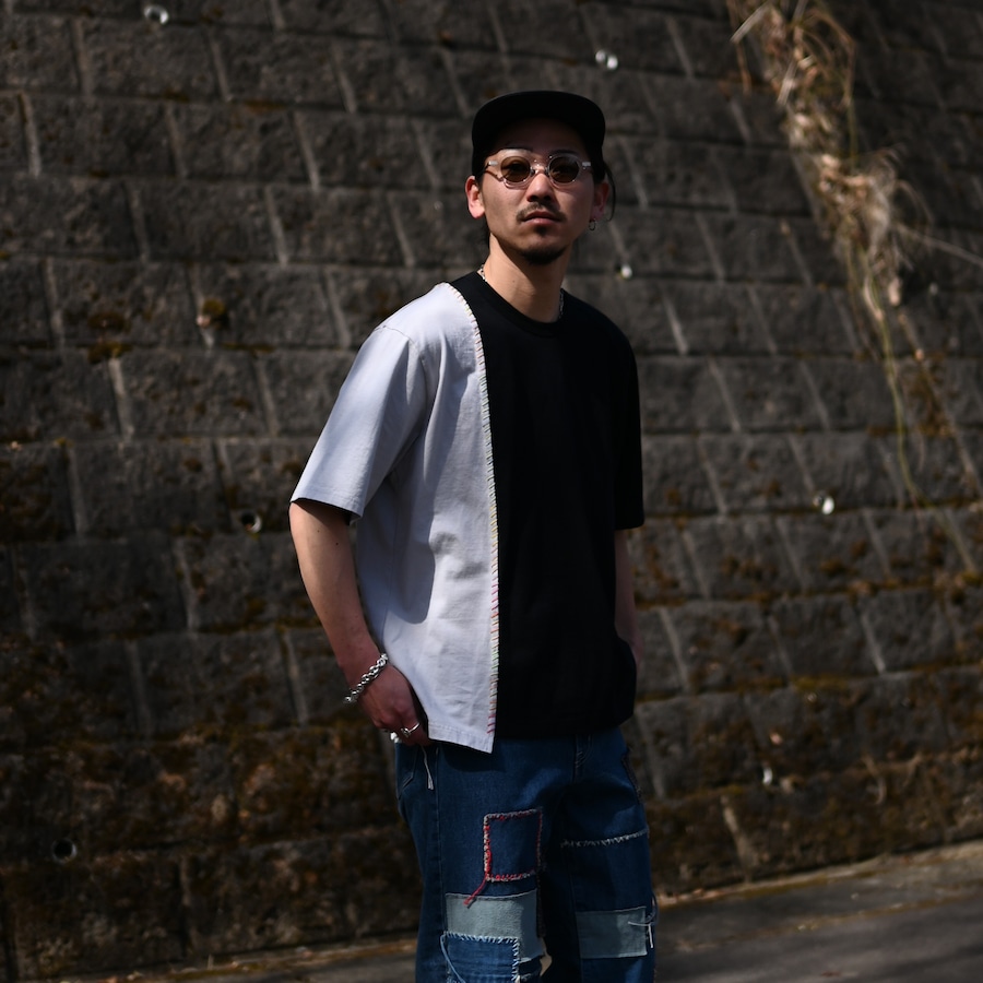 サシコギャルズにより打たれた「段染め糸」の刺子が目を惹く別注ドッキングTシャツ