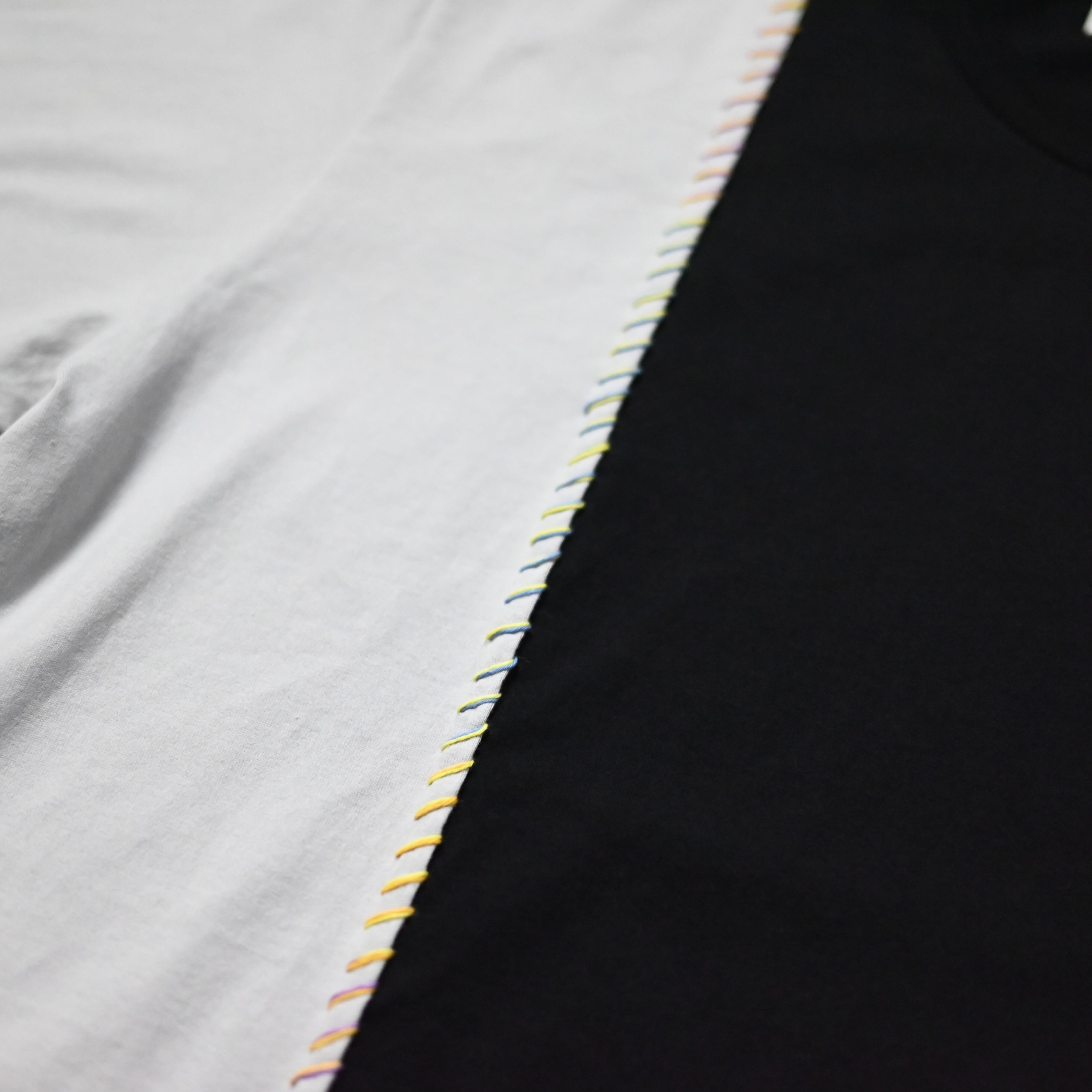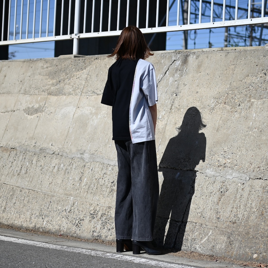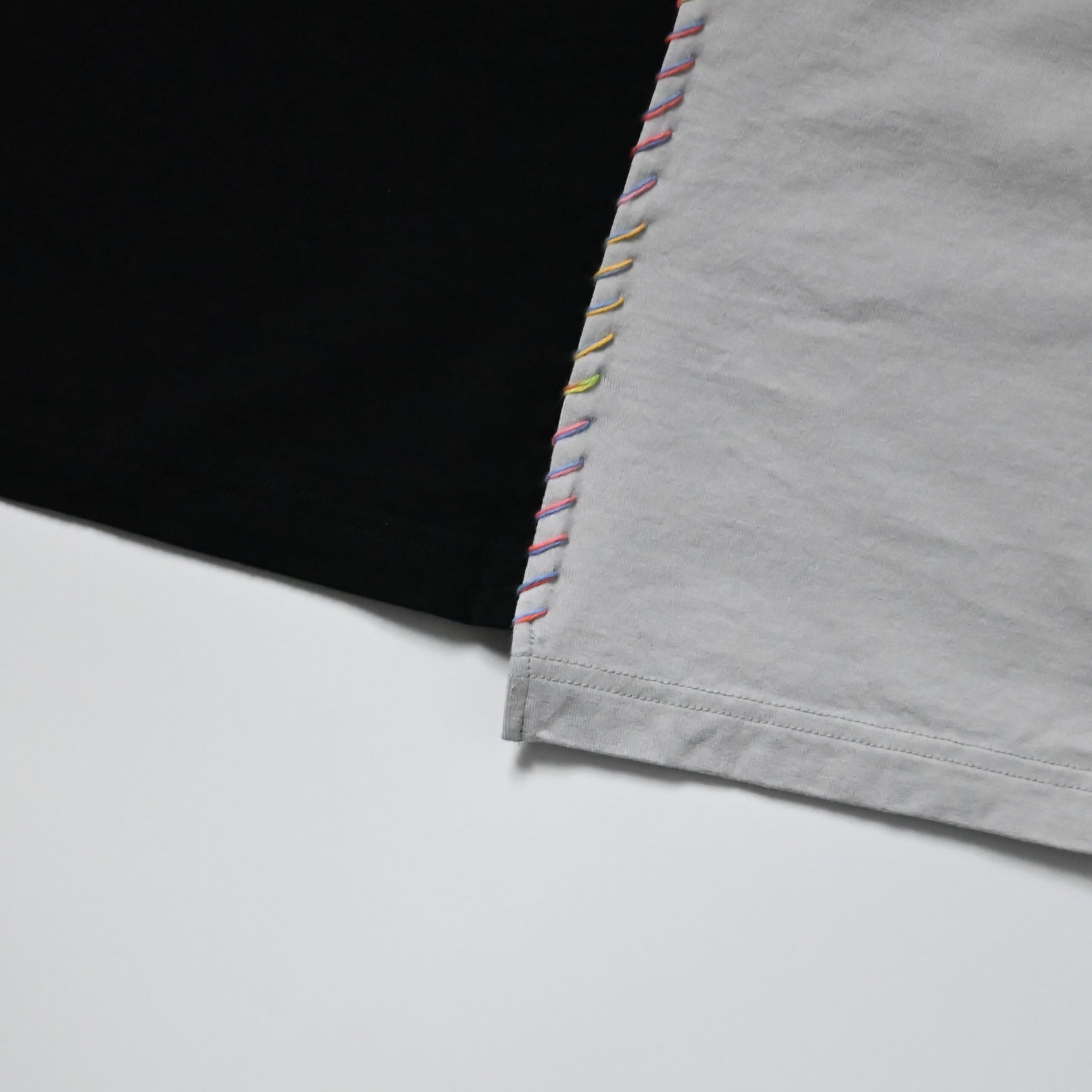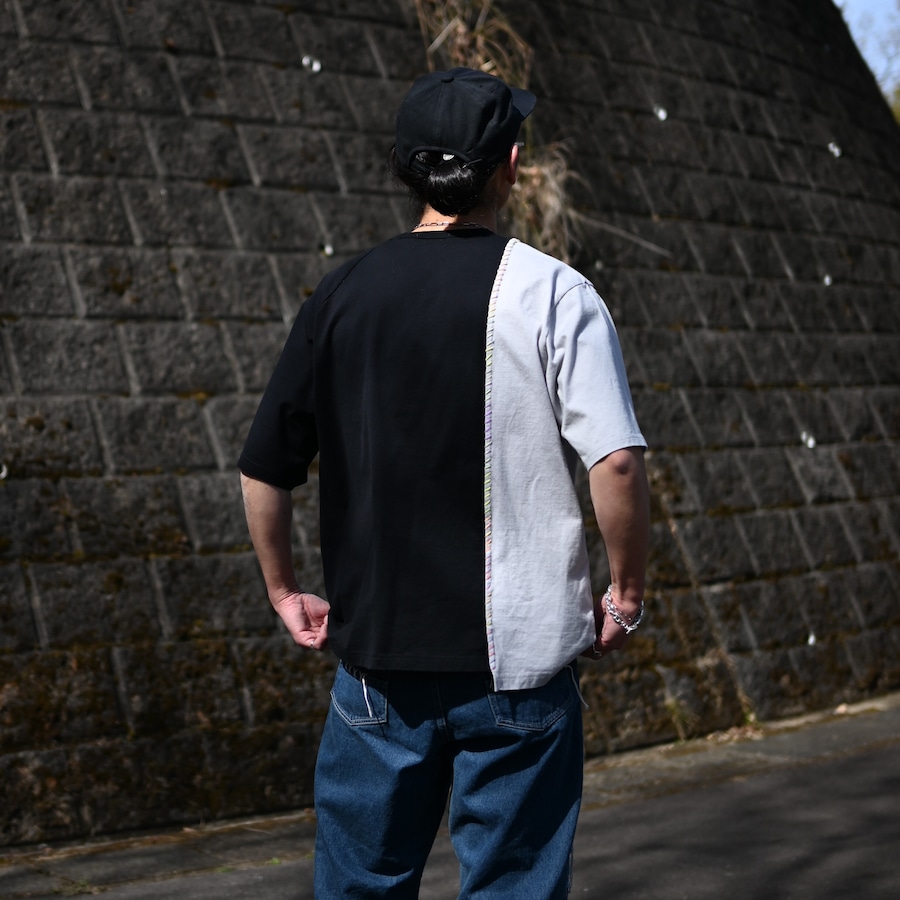 サシコギャルズにより打たれた「段染め糸」の刺子が目を惹く別注ドッキングTシャツ