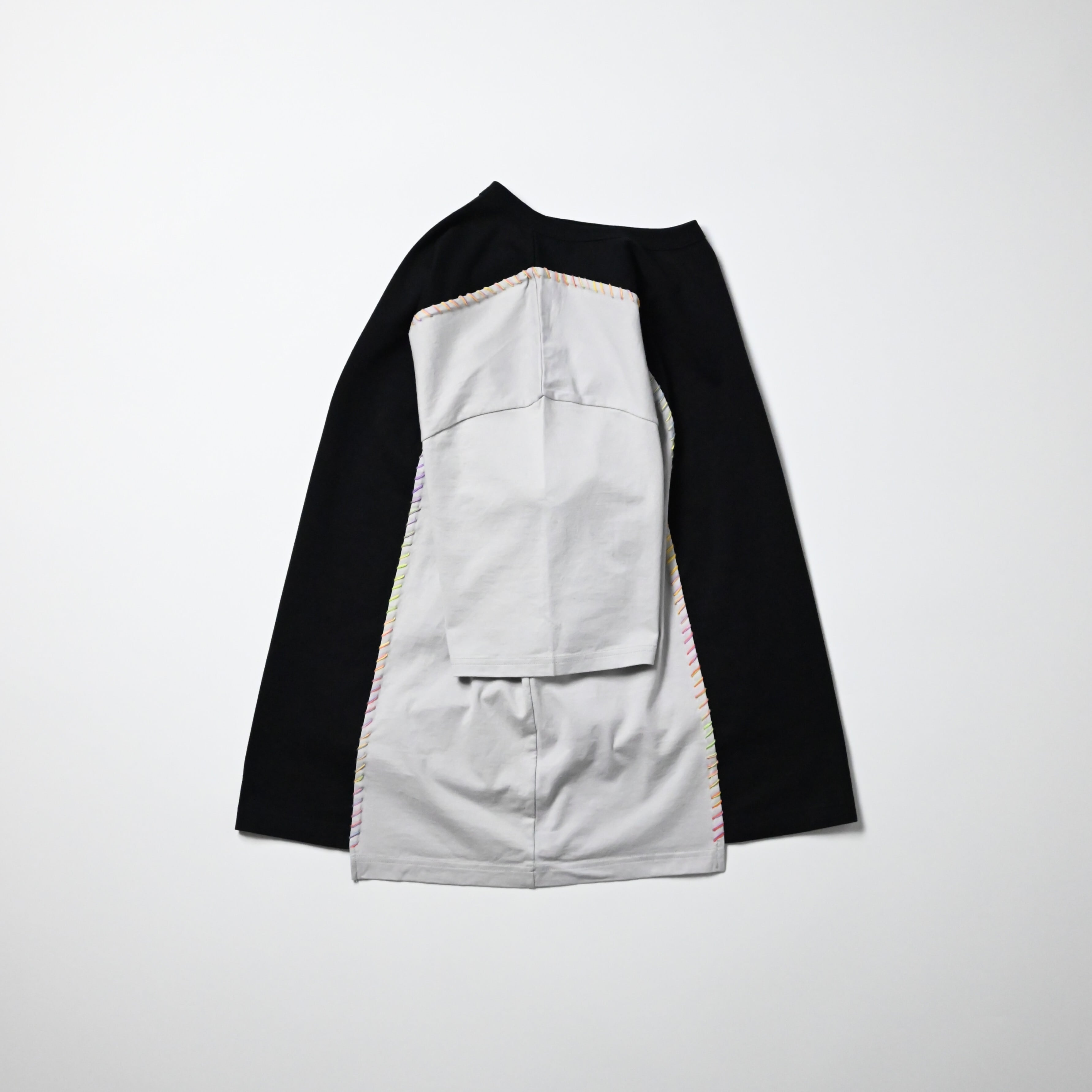・ただ切り替えるだけではなく、左にはラグラン袖、右はシャツ袖と袖の仕様も切り替えたユニークなデザイン