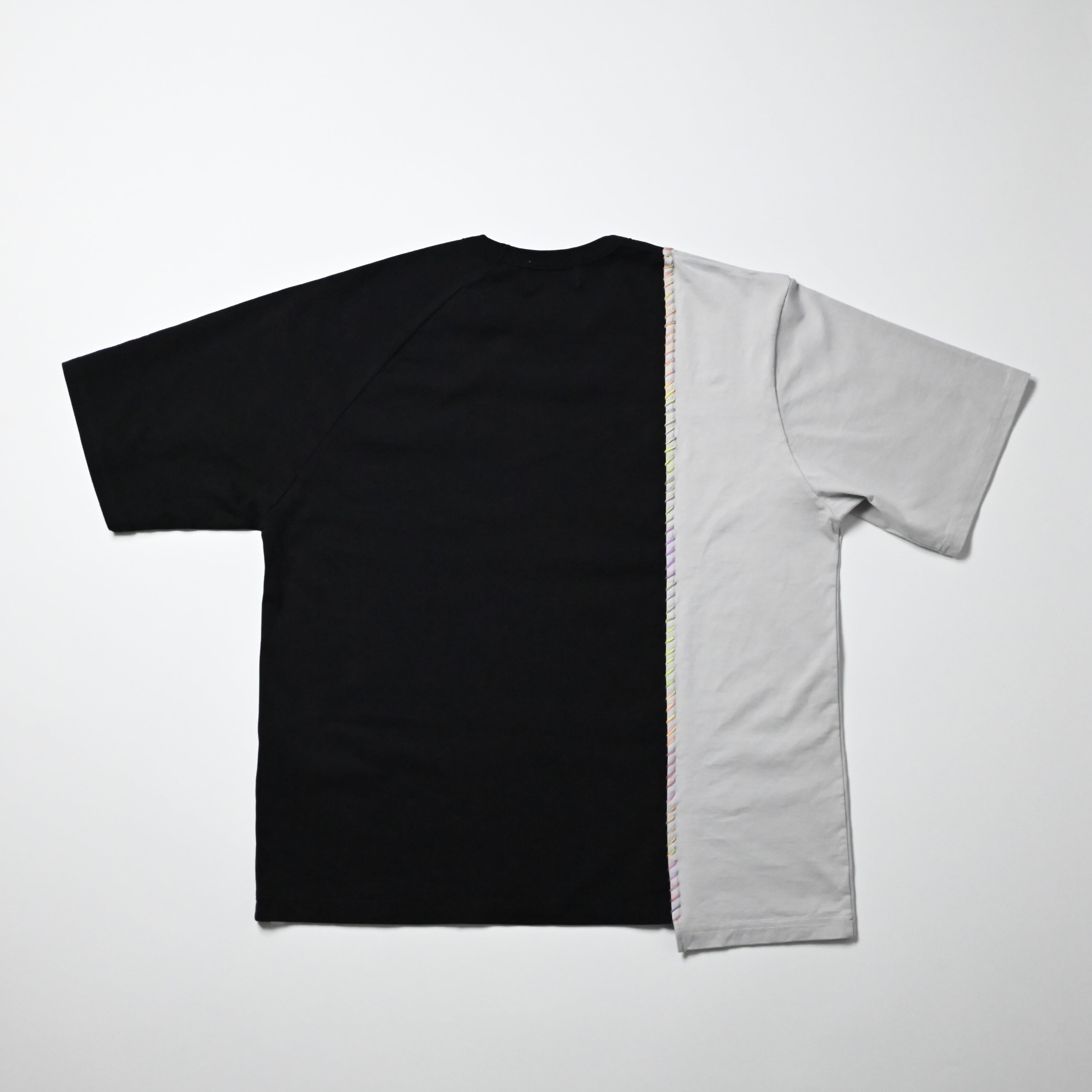 While the overall look is simple, the gradient-dyed thread becomes striking upon closer inspection, elevating the piece into a T-shirt that stands strong even on its own.