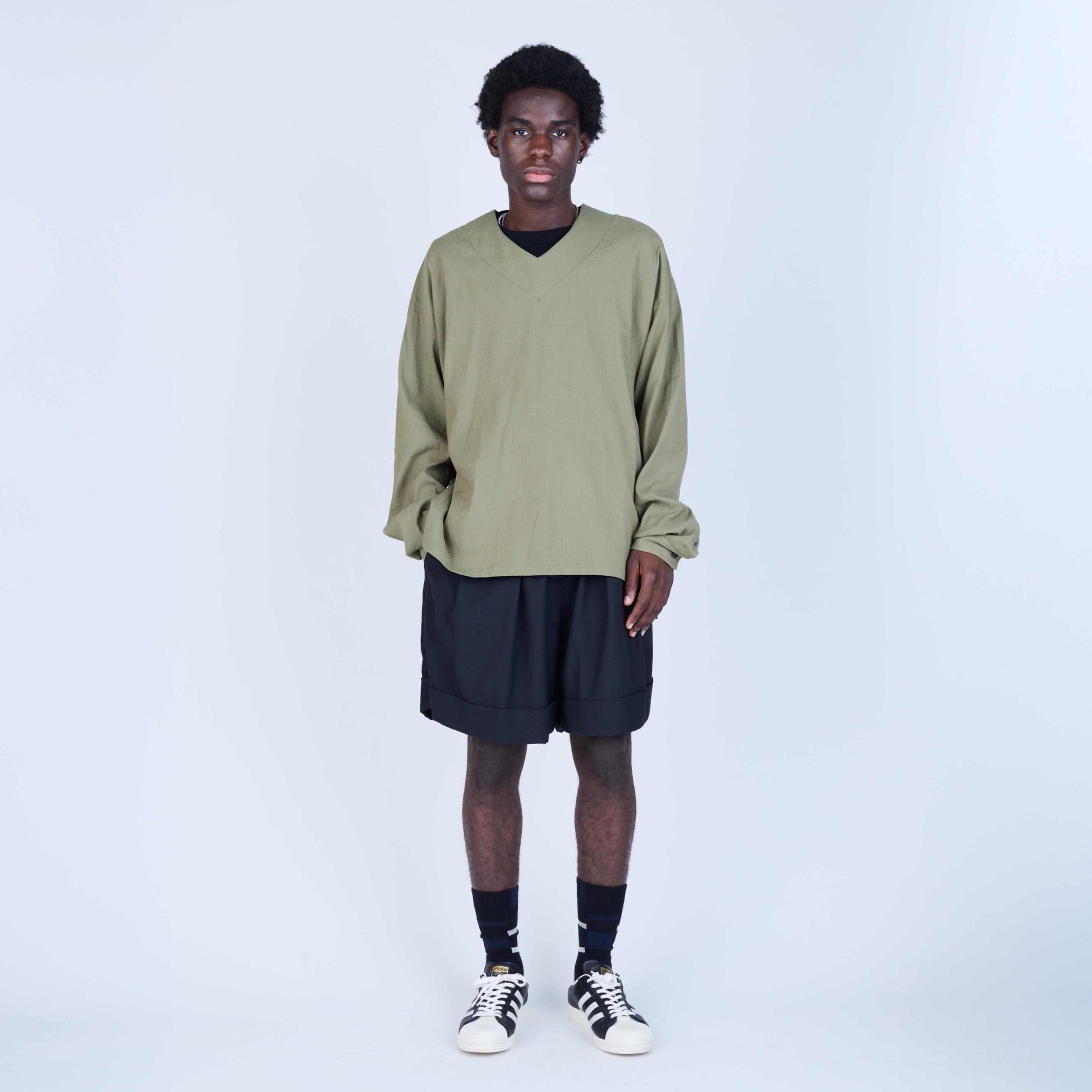 UNTRACE’s signature cuffs shorts, defined by bold volume through the thigh and a carefully balanced inseam that creates a striking silhouette.