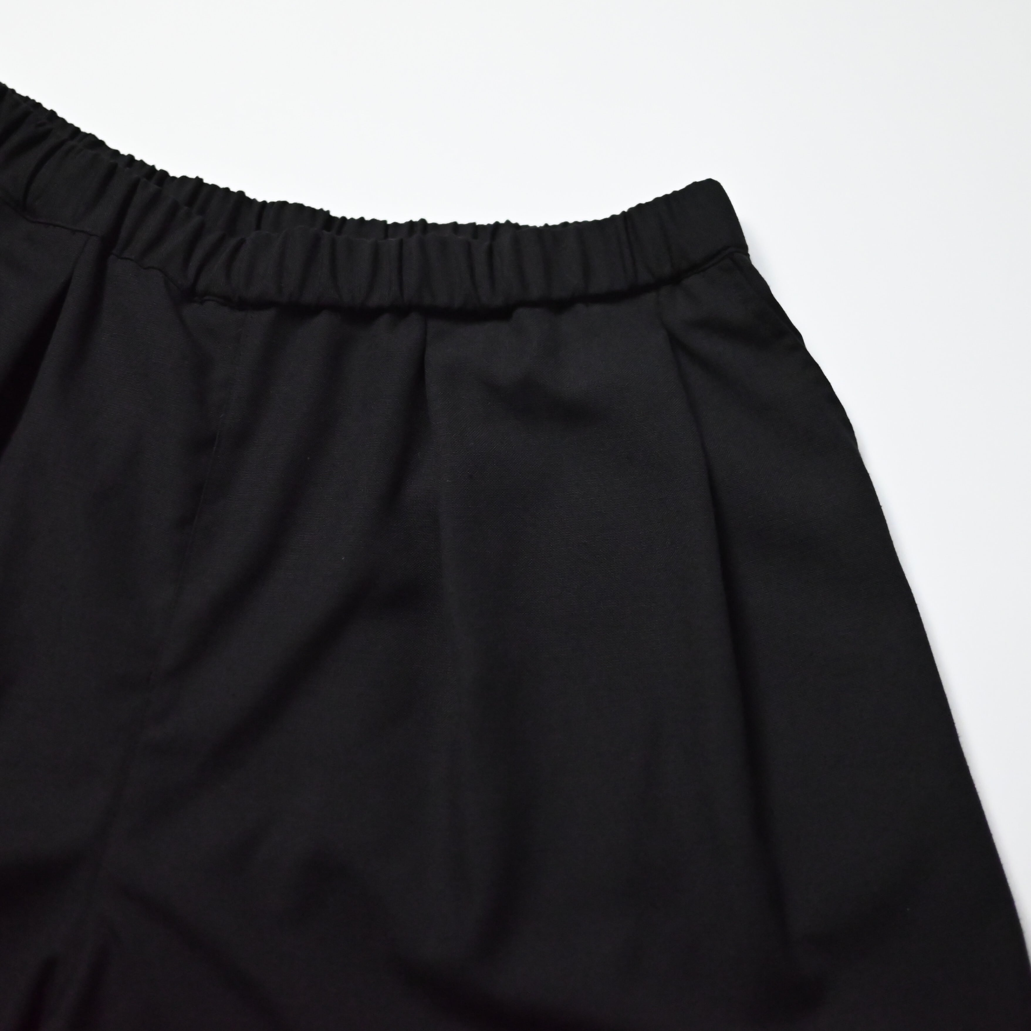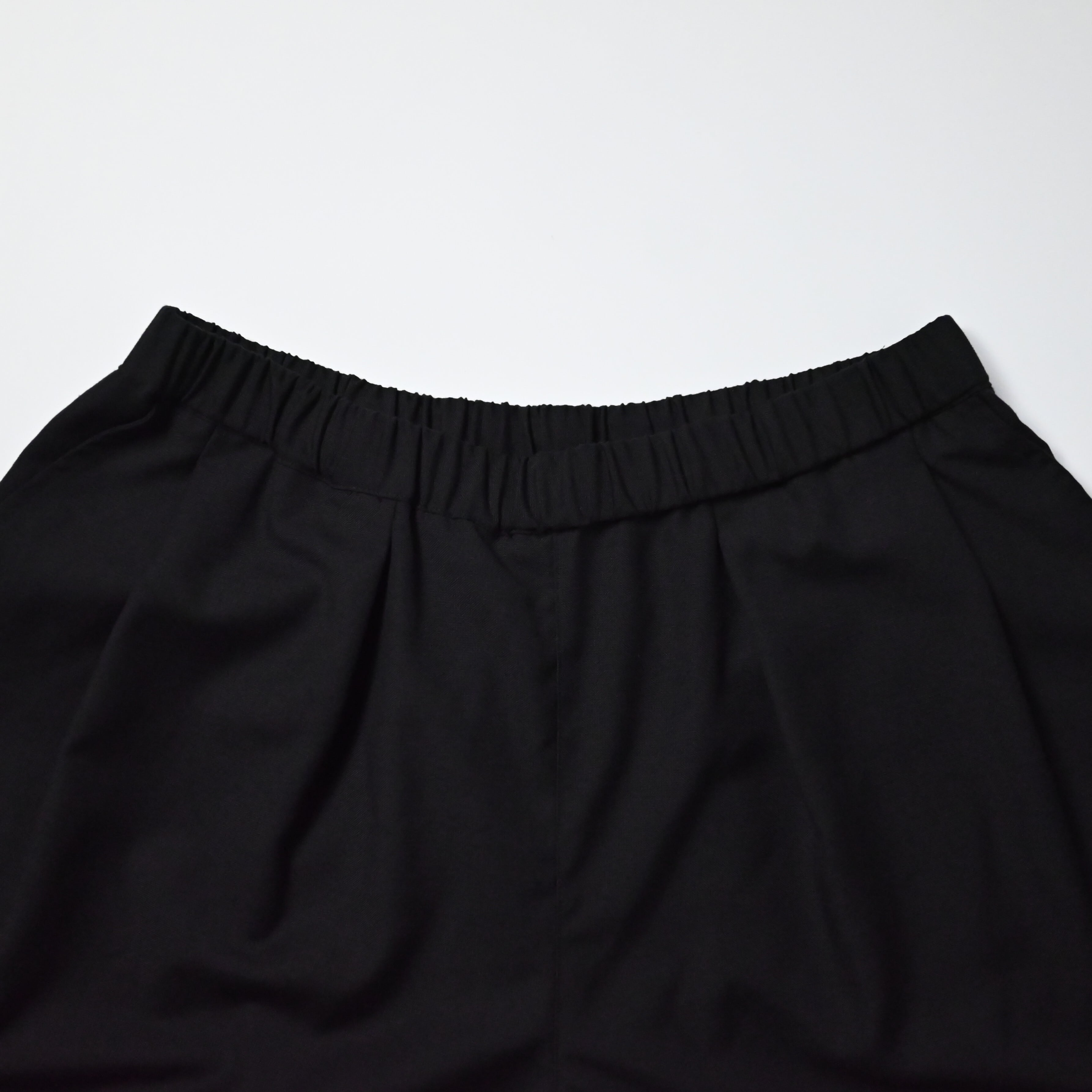 ・バスケットショーツから着想を得たボリュームシルエットに、スラックスを思わせる裾の仕立て、そしてフロントに施した深めのタックが特徴
