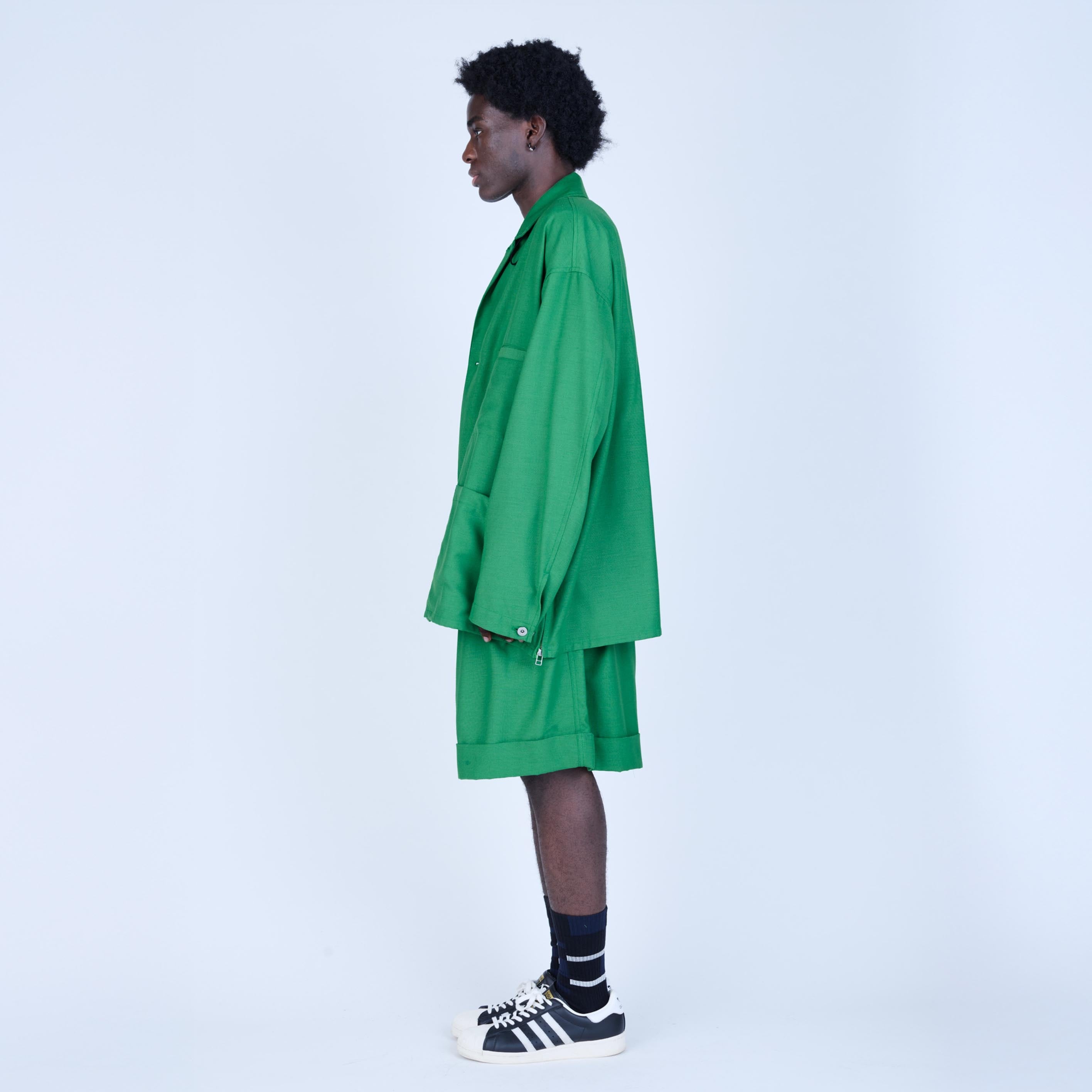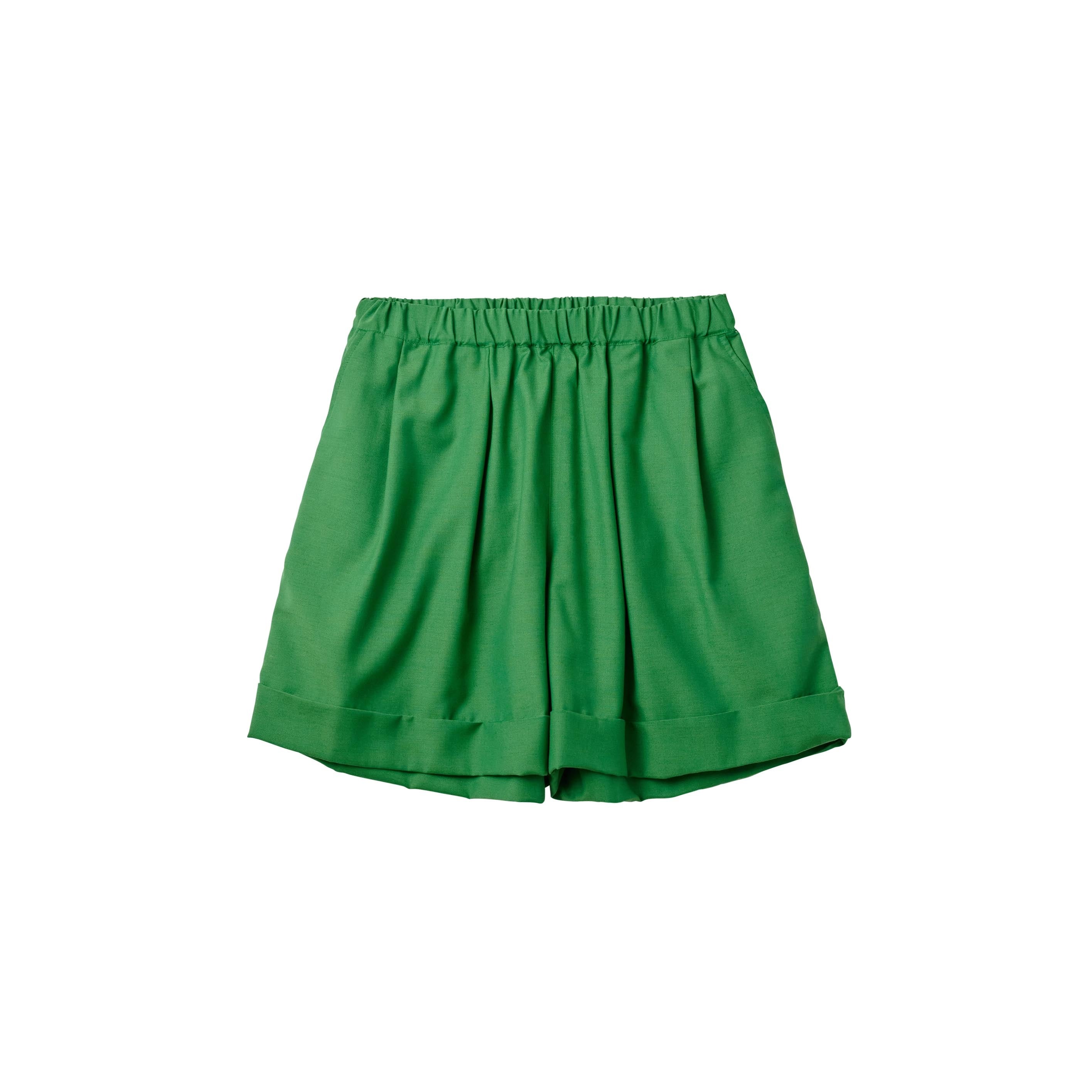 ・バスケットショーツから着想を得たボリュームシルエットに、スラックスを思わせる裾の仕立て、そしてフロントに施した深めのタックが特徴