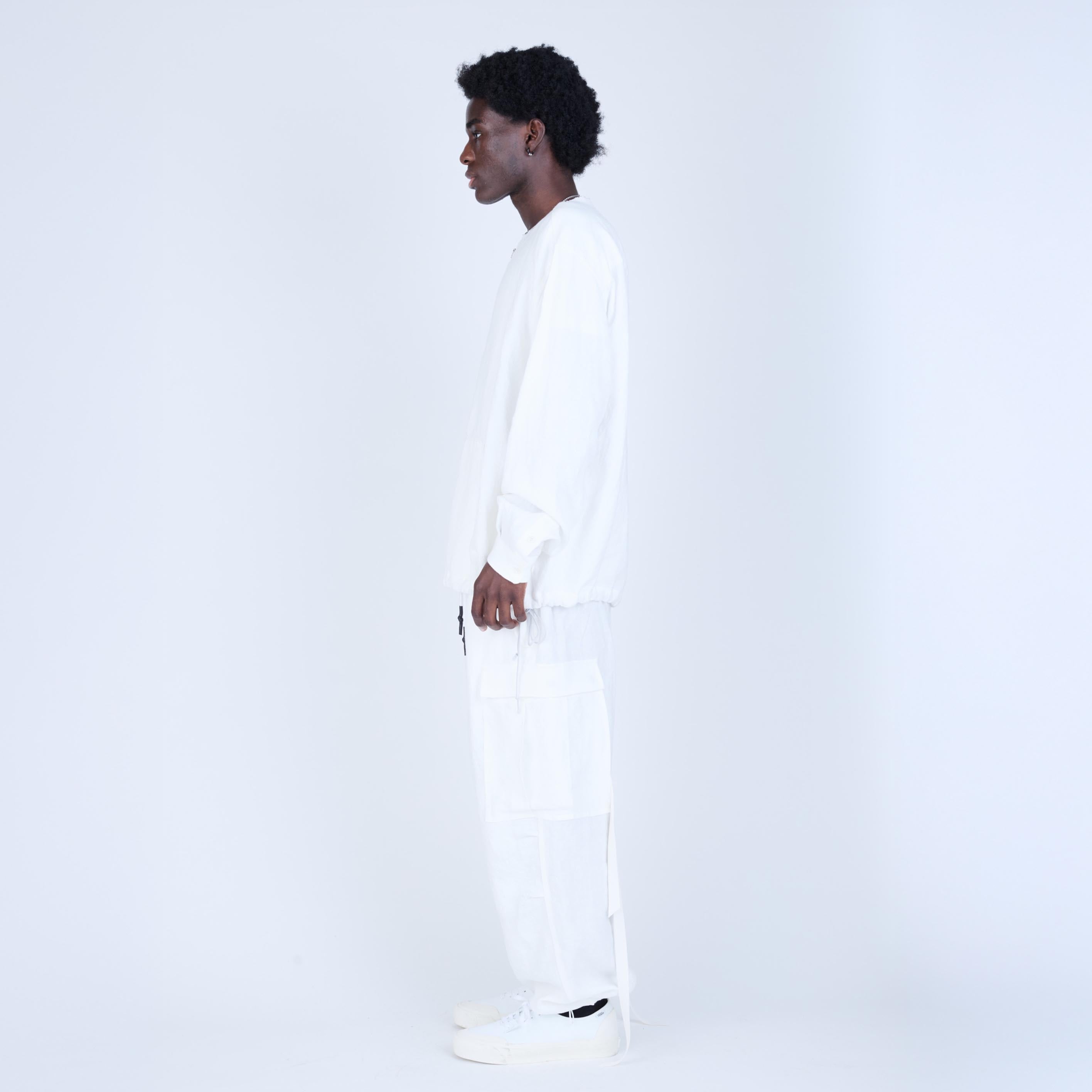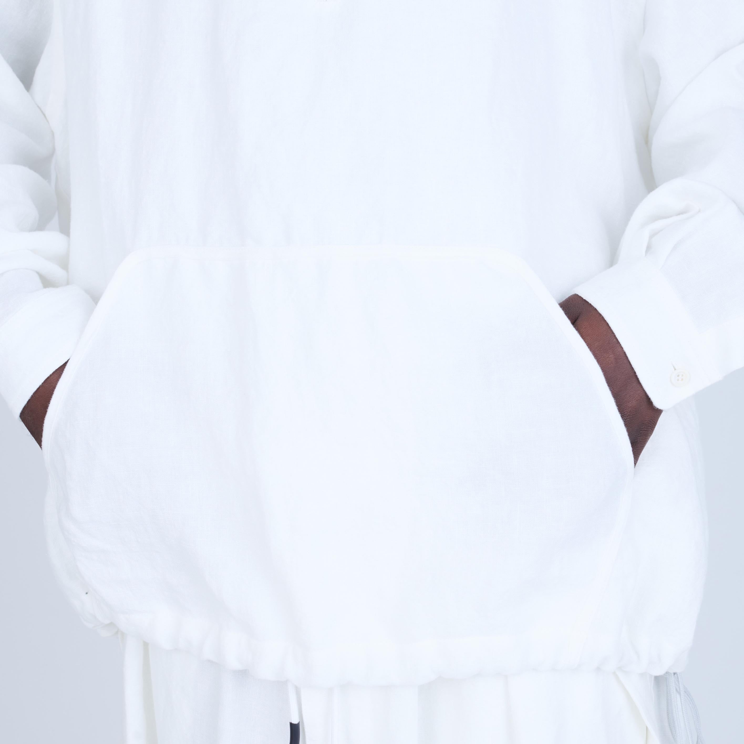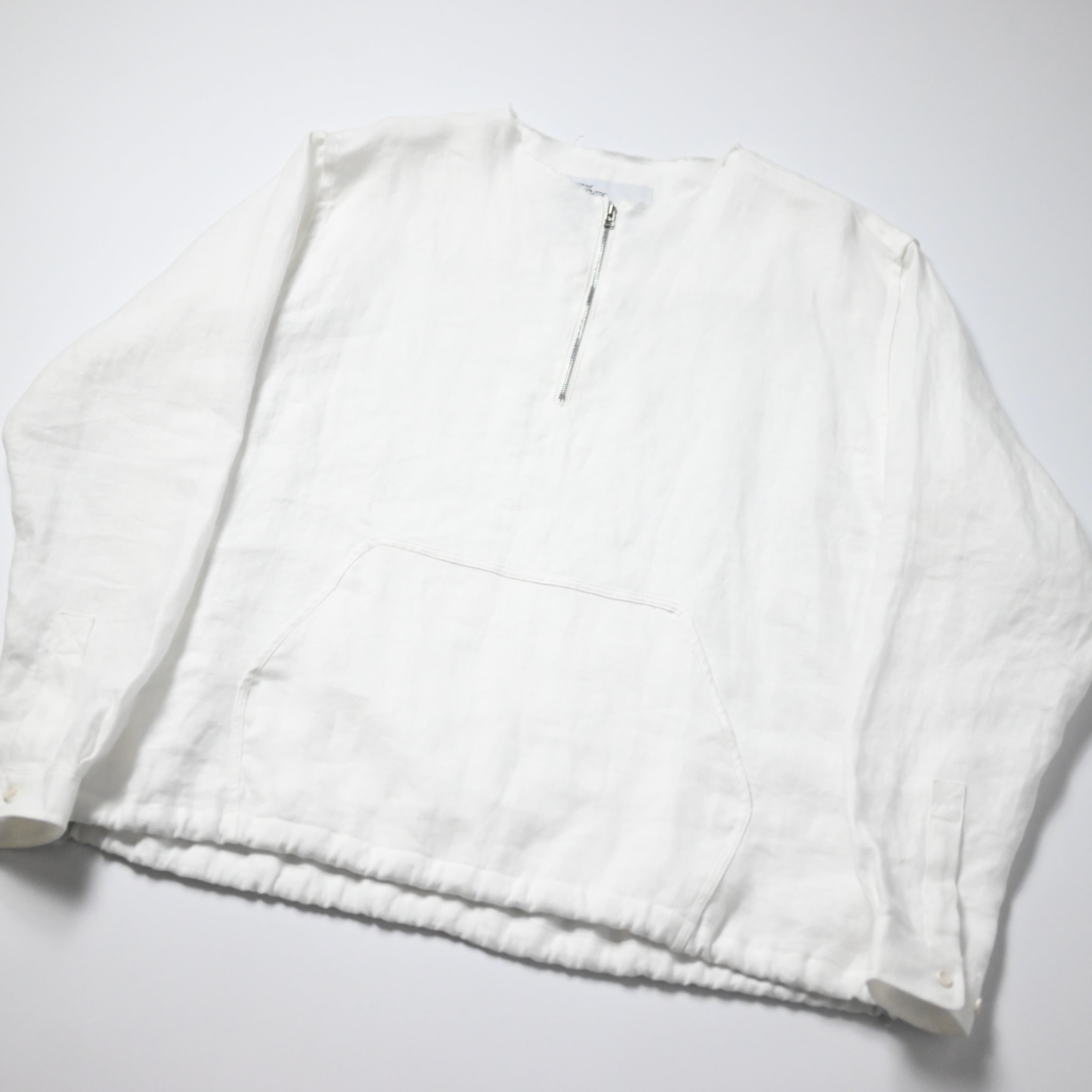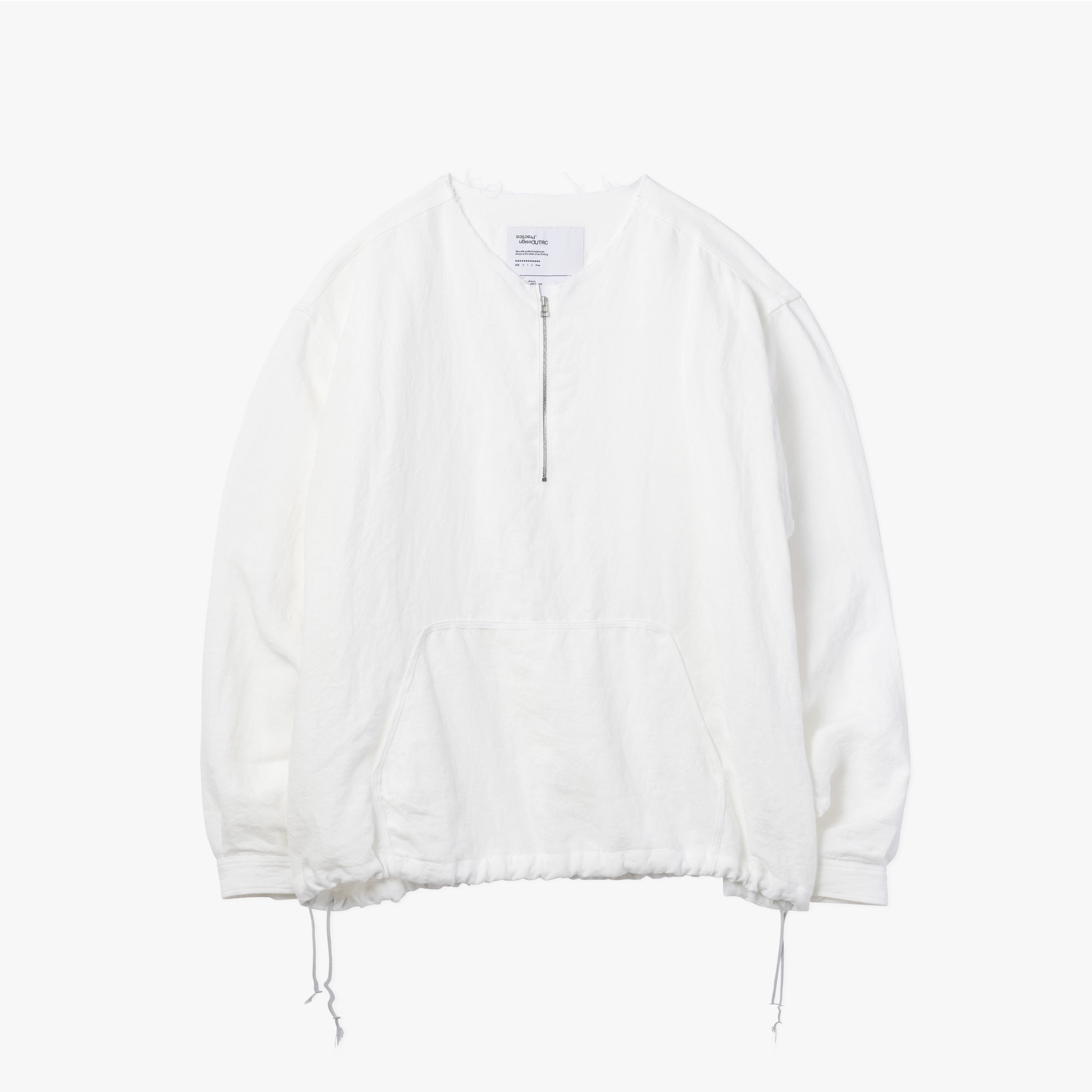 ドロップショルダーとボックスシルエットで構成した、新作のハーフジッププルオーバーシャツ