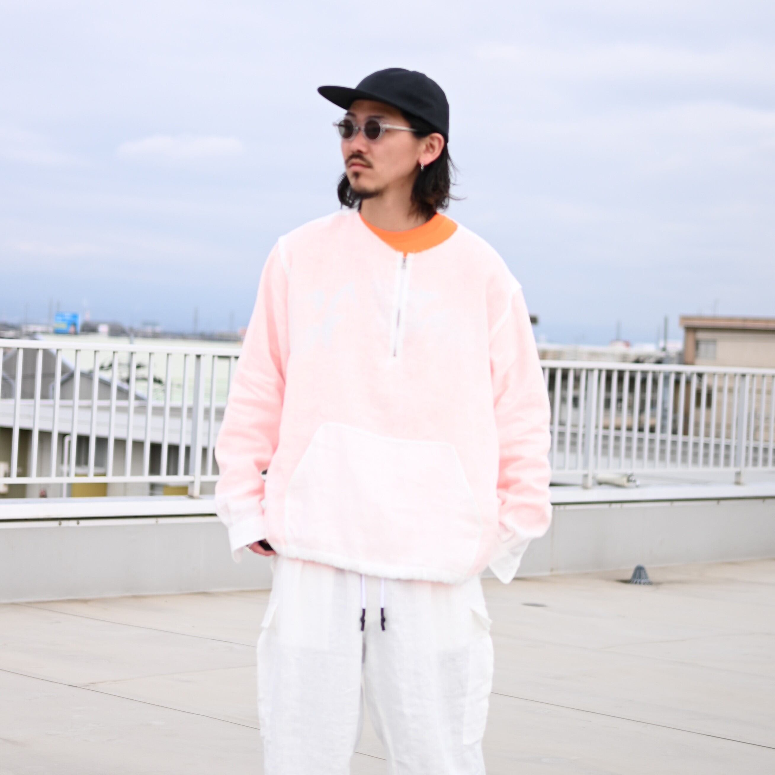 ・ハーフジップやカンガルーポケットなど、ヴィンテージのスポーツウェアを彷彿とさせるディテールをベースにしつつ、 素材の風合いや全体のサイズバランスを再構築することで、まったく新しいスタイルへと昇華