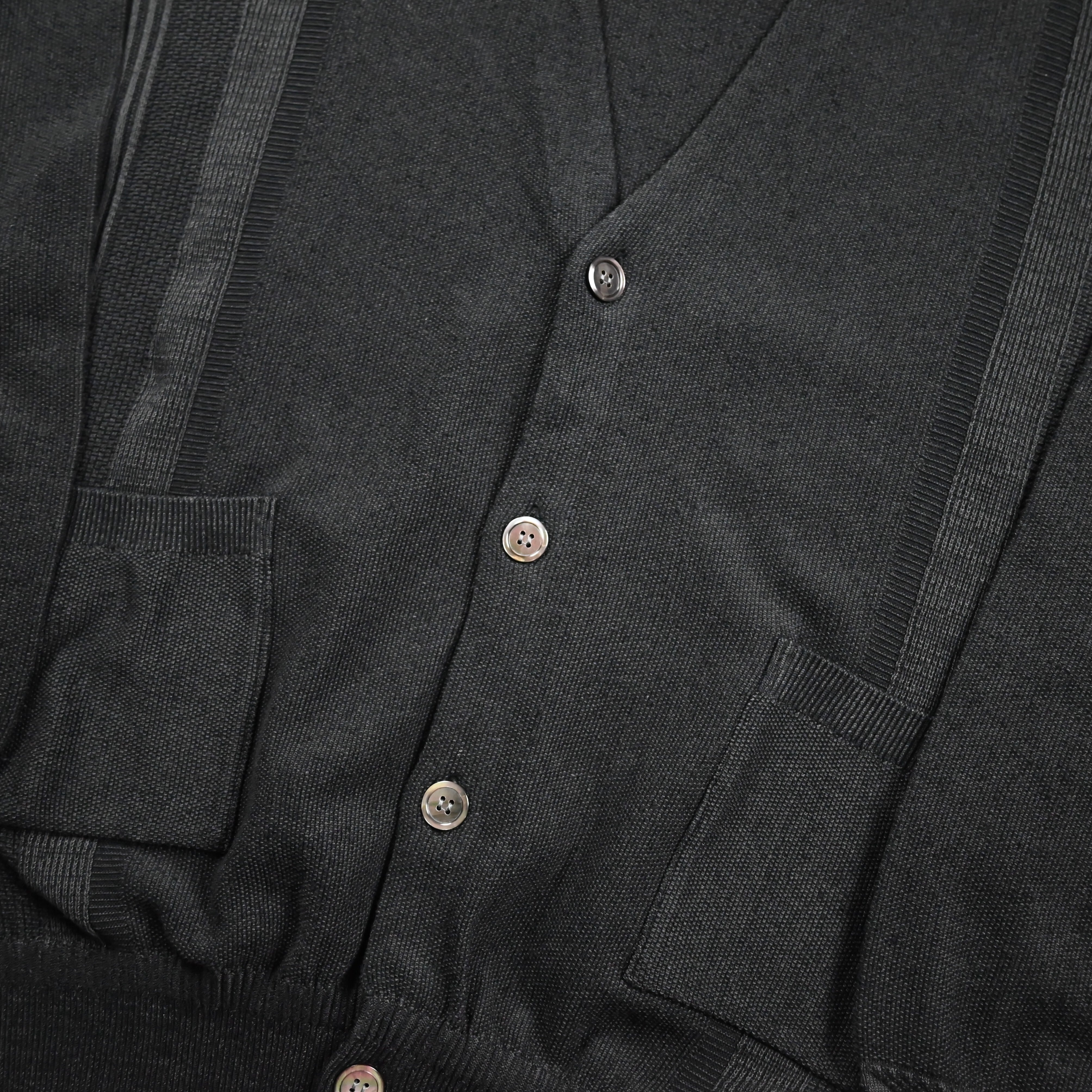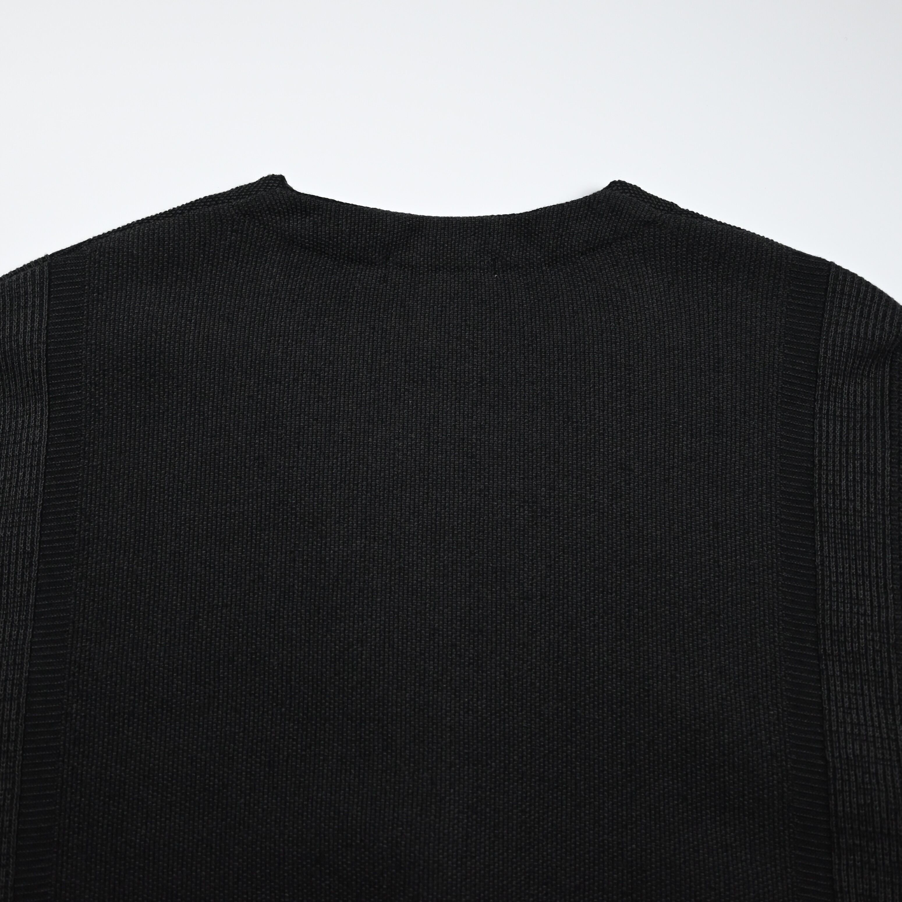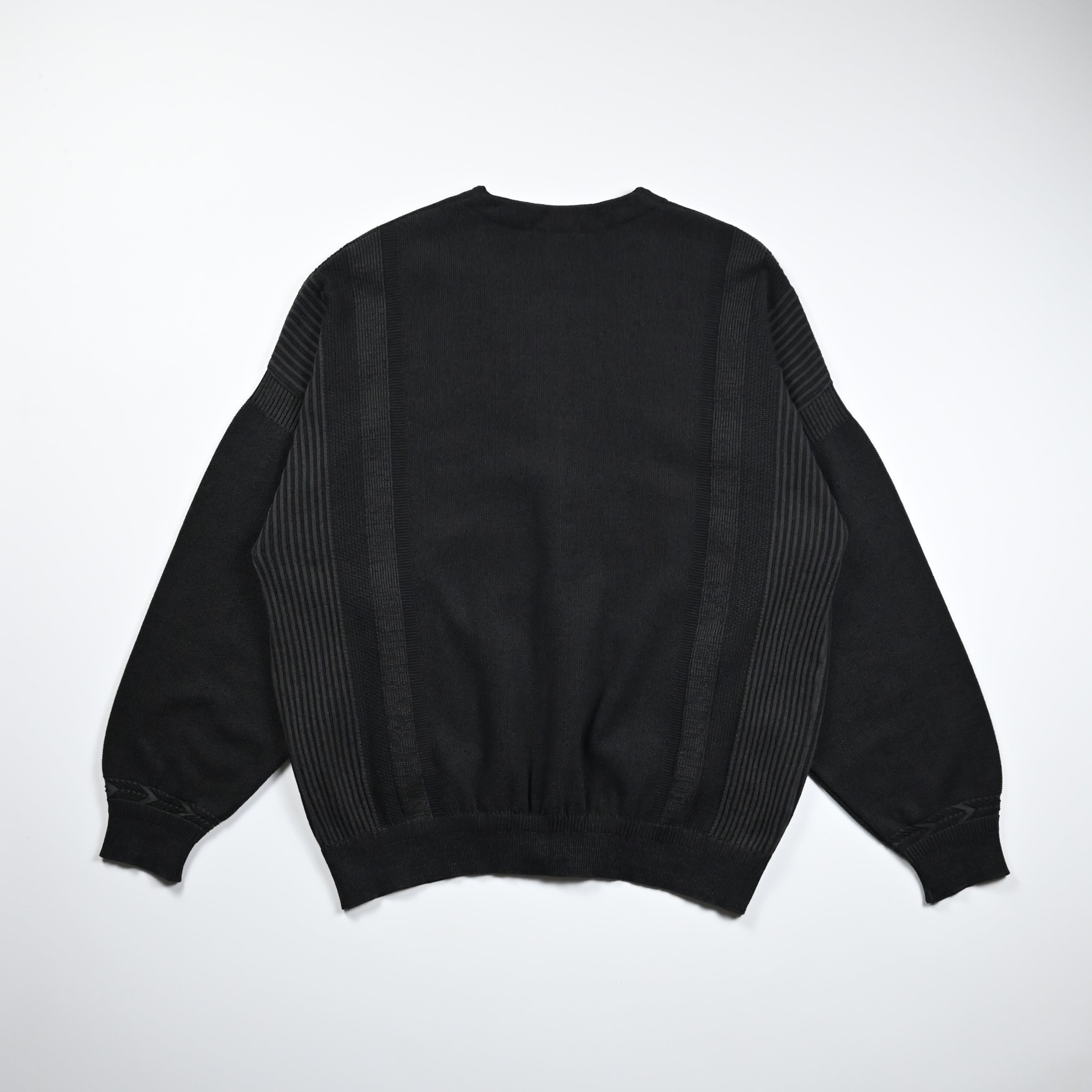 The fine textured piqué knit at the center of the body and sleeves represents cultivated fields