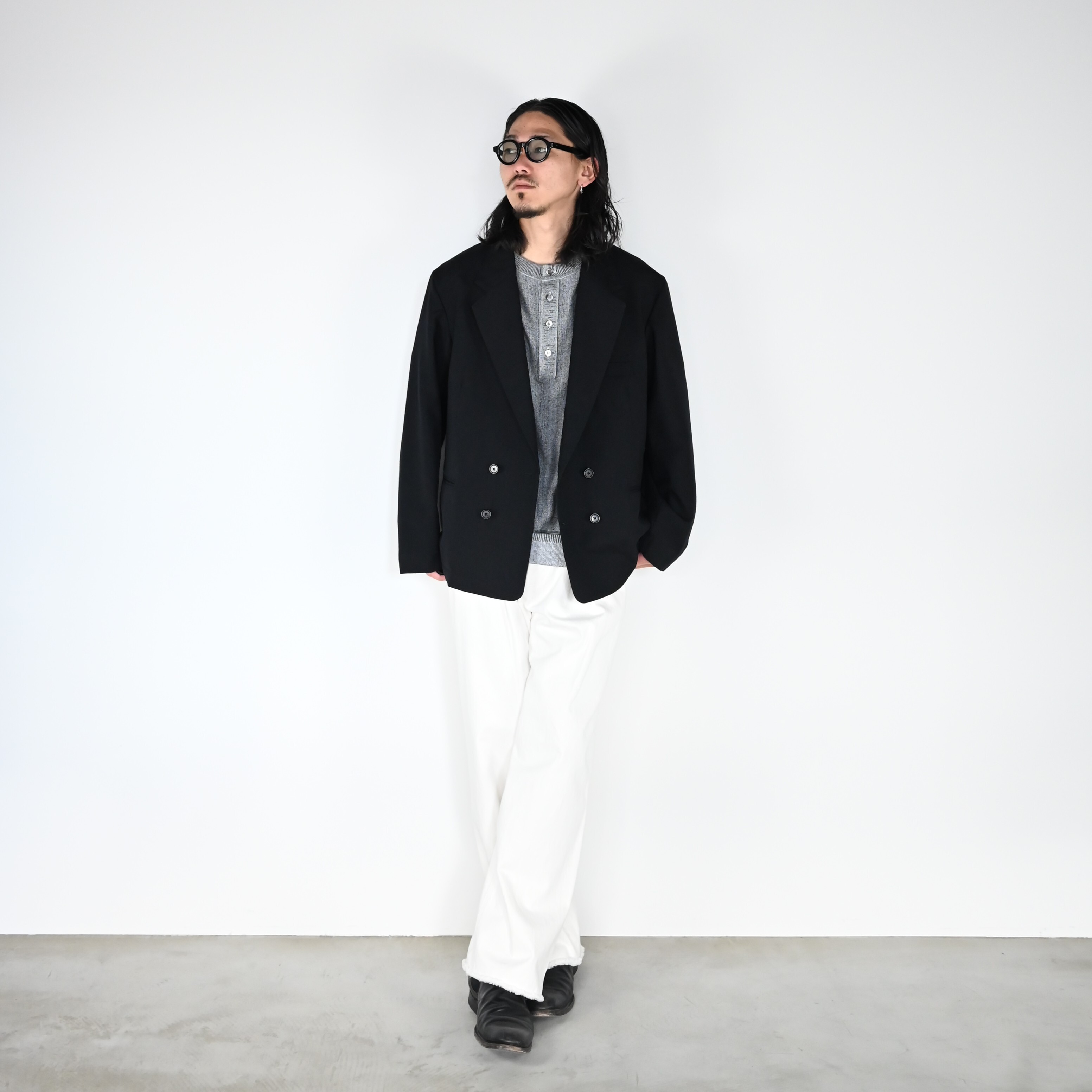 As the hem is cut-off, fraying may progress with washing. Please enjoy this as part of the garment’s character.