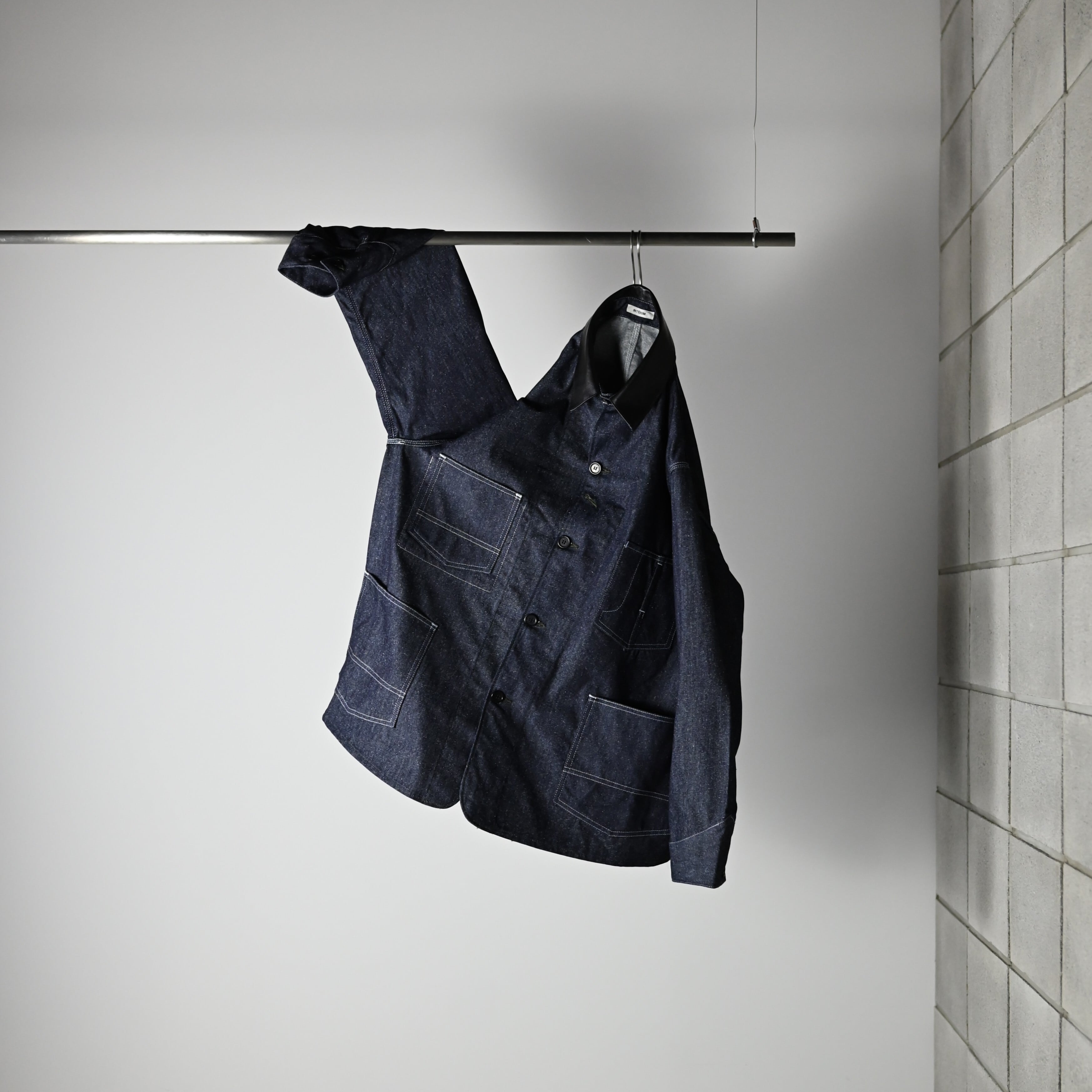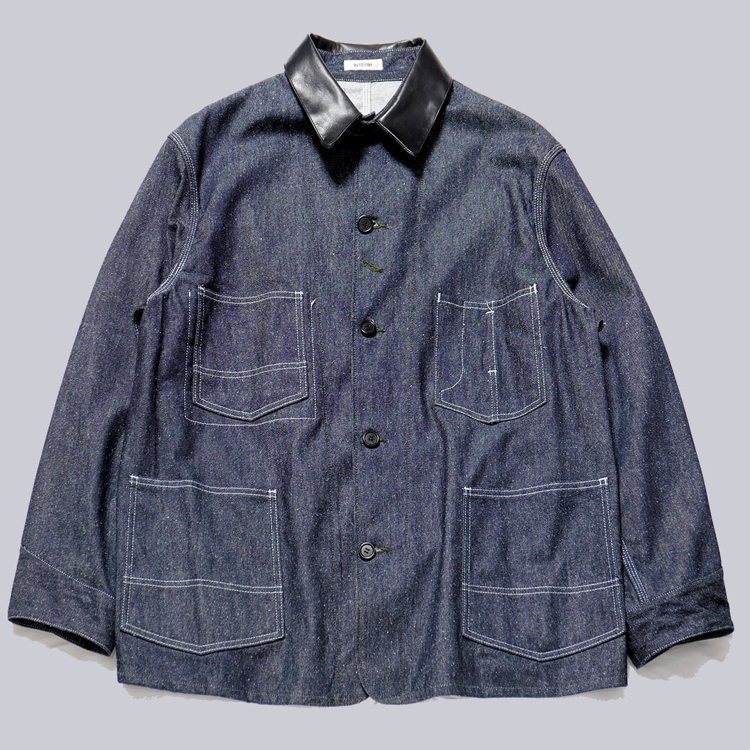INTERIM / GOAT LEATHER COLLAR SILK NOIL DENIM 1st HERCULES COVERALL