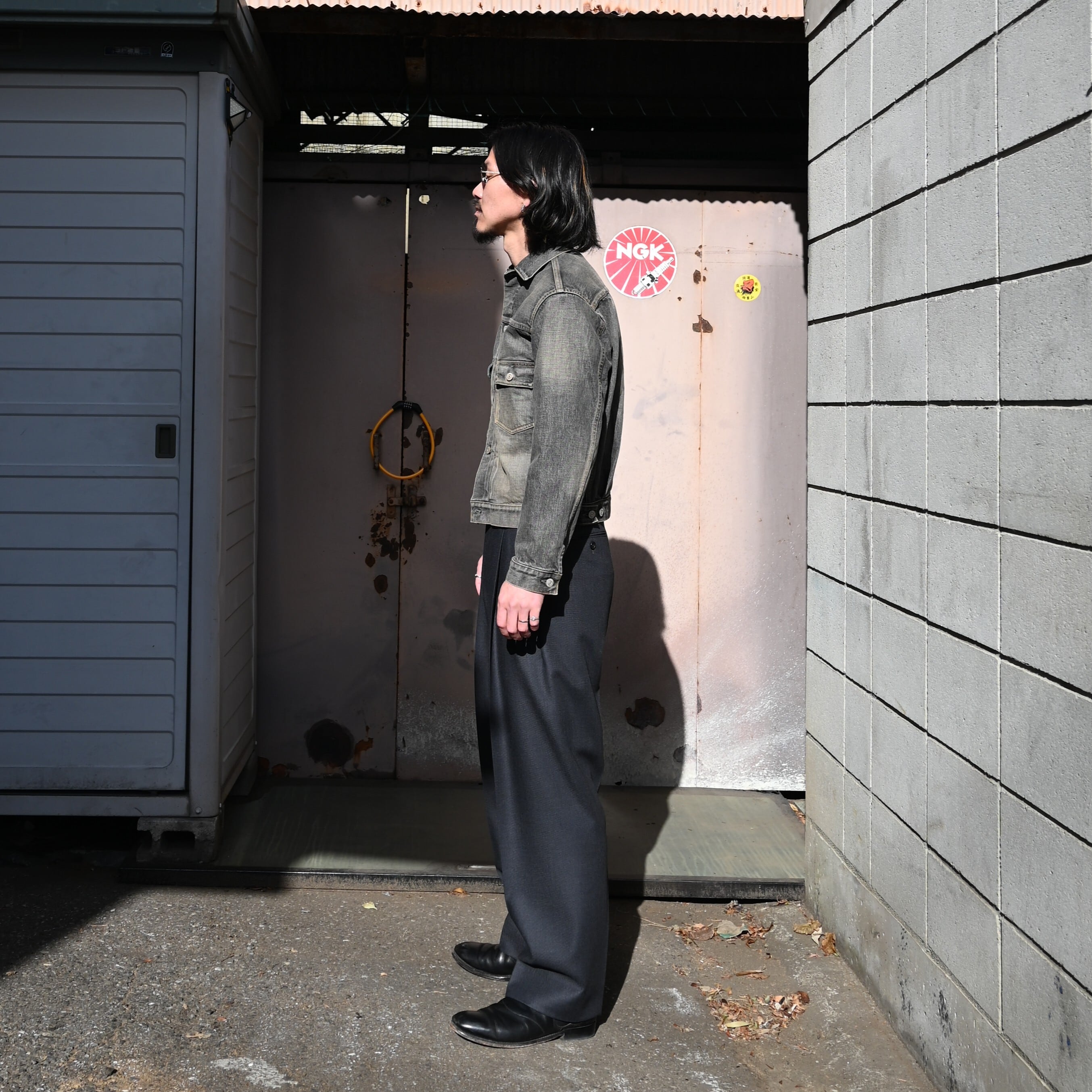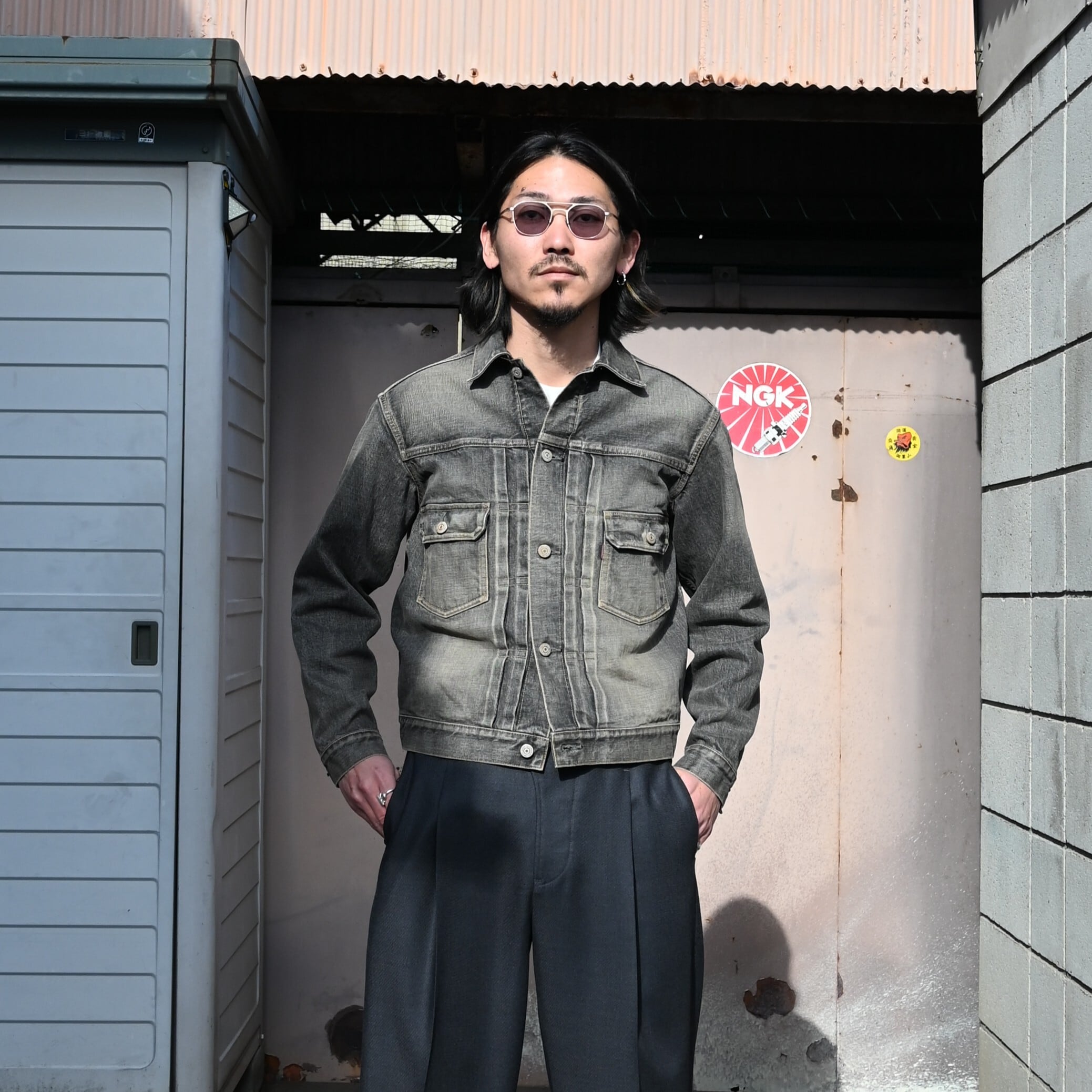 今回はinterim(インテリム)の1950年代、"1st"モデルをマイナーチェンジして作られた"2nd"モデルをモチーフにしたデニムジャケットをインナーに合わせ、アメカジすぎないように山内(ヤマウチ)のヘビーウールツイル・サイドシームレスパンツを合わせてコーディネートいたしました。