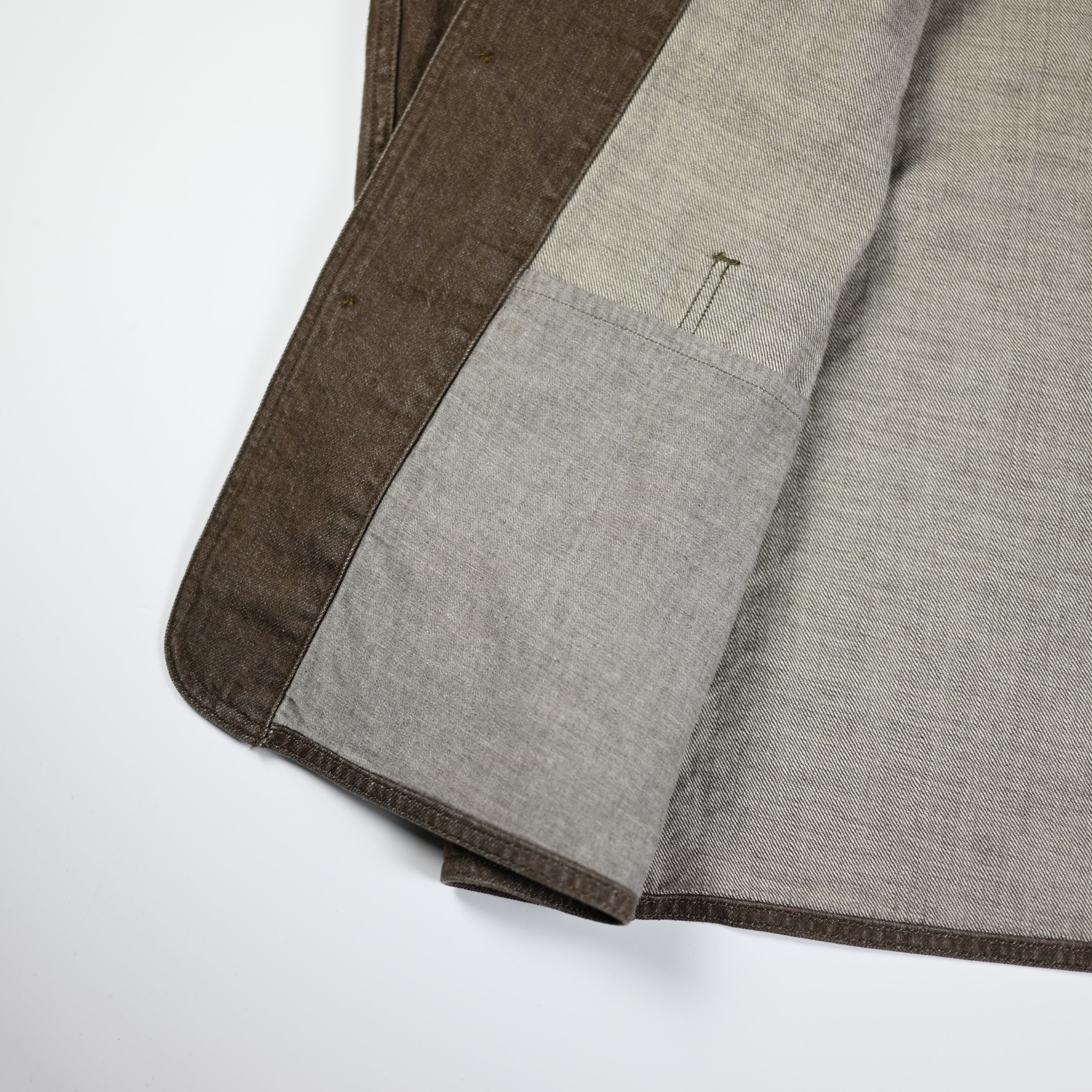 • By applying different dyeing methods to the pre-dyed warp and weft, the result is a dimensional, deep “W black” denim with more depth than a standard solid-dyed fabric.